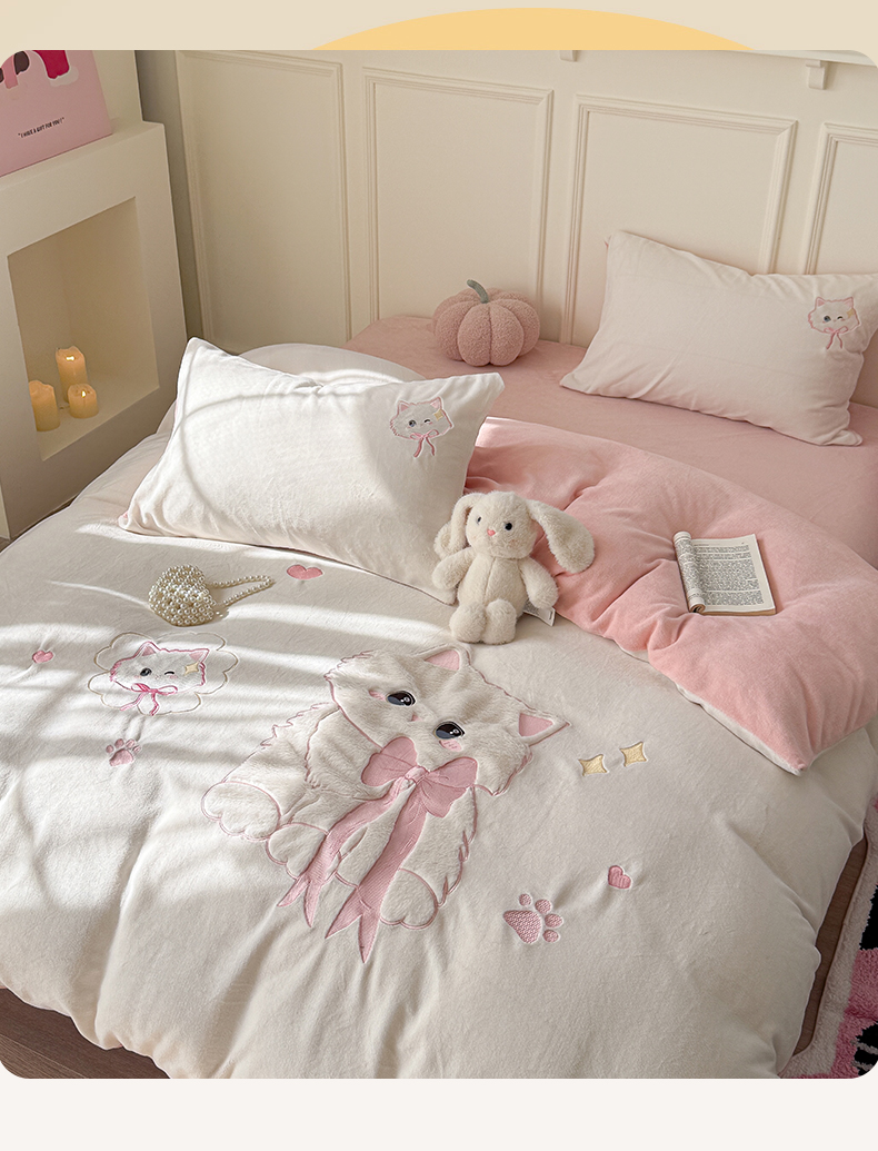 (总)TT.one 塔塔家居 2025新款暖绵绵羊羔绒毛巾绣四件套,粉粉雪世界,黄油面包狗,浪漫花花海,小狗游园会