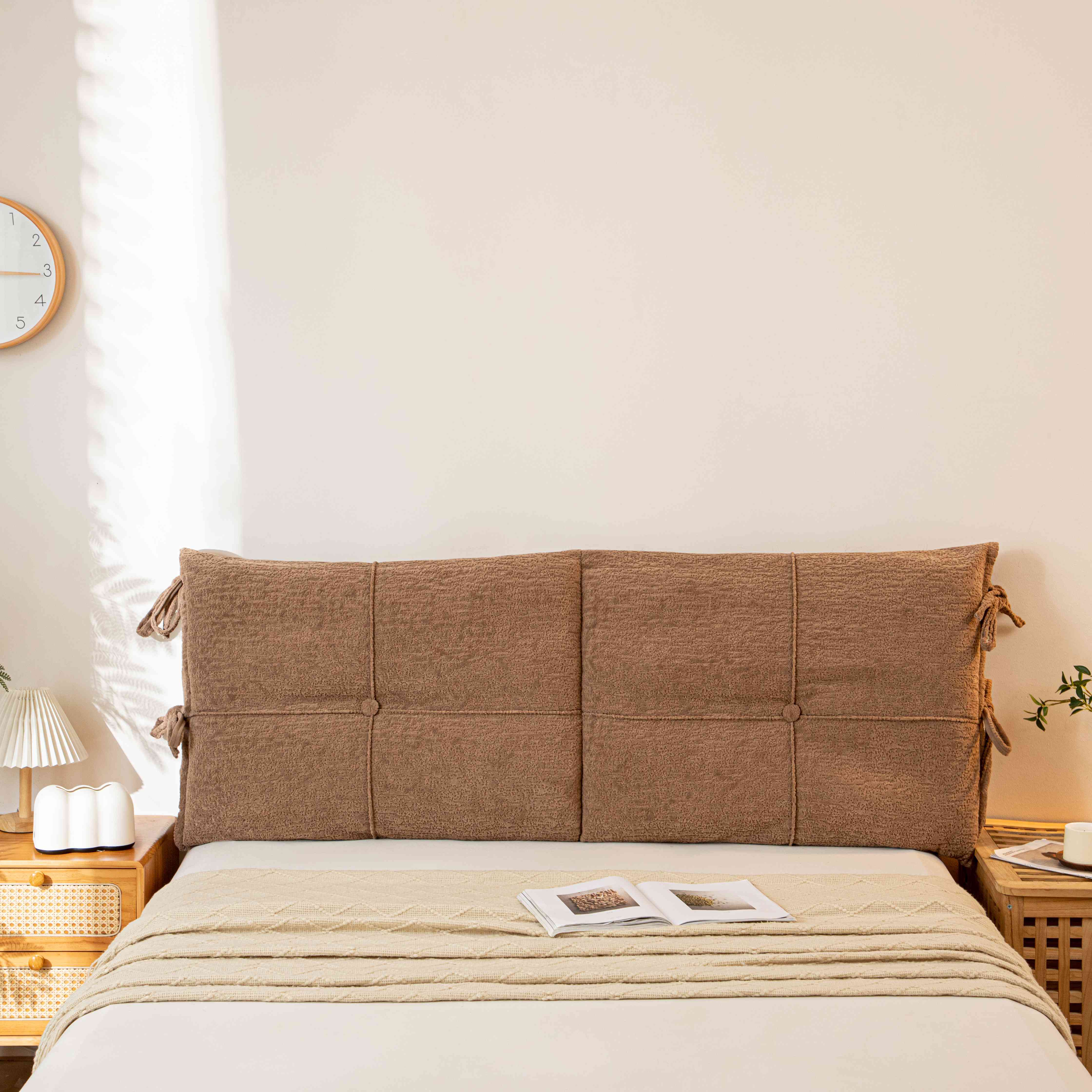 沐沐家纺 2026新款简约可可西里床头靠背 米白