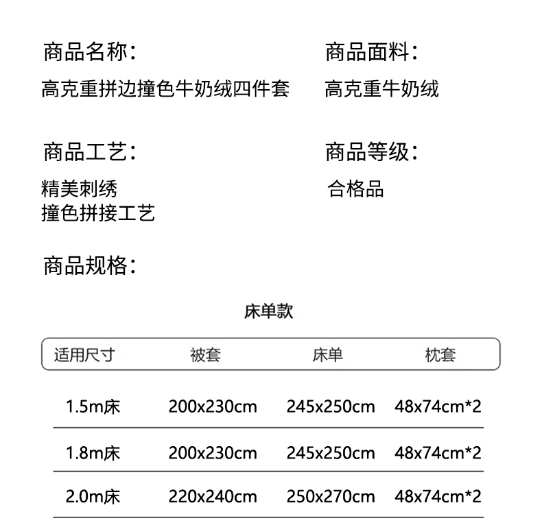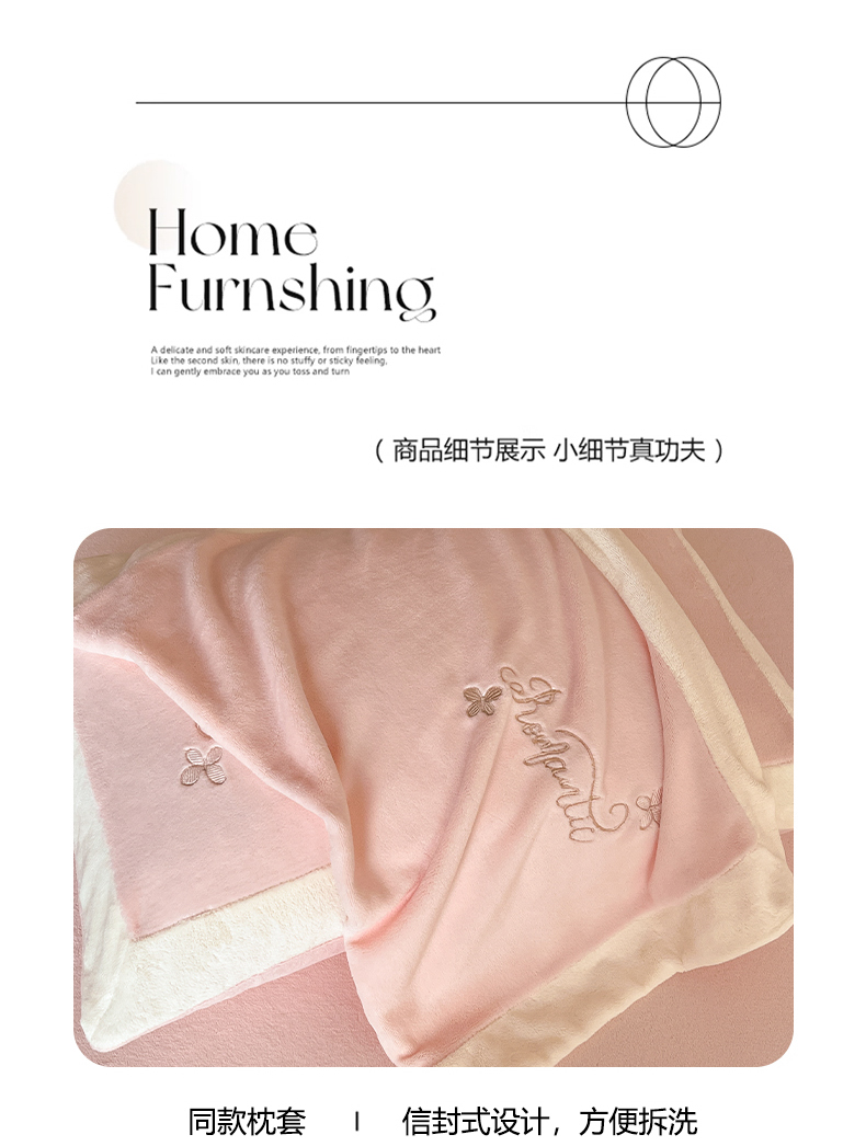 商品名称:子曰 2025新款高克重牛奶绒轻奢刺绣撞色拼接工艺款四件套-安娜 安娜-粉