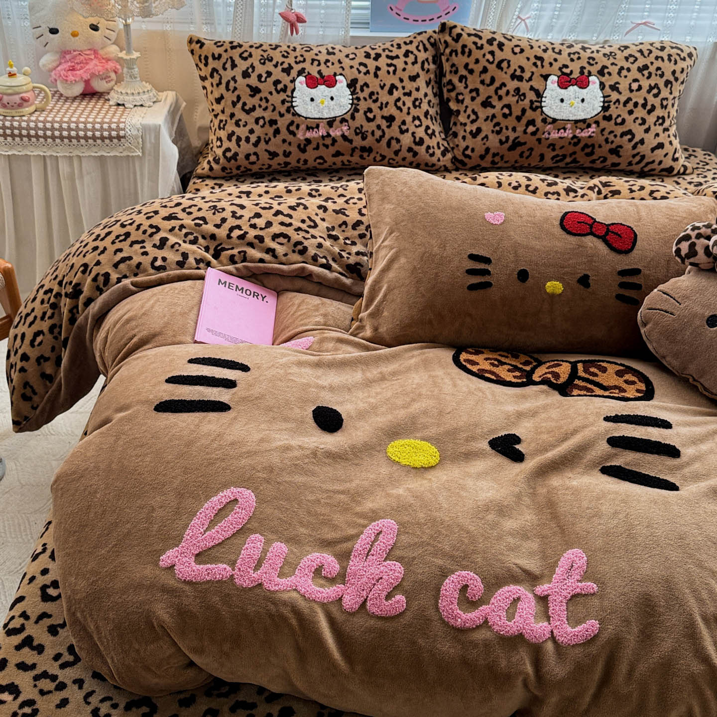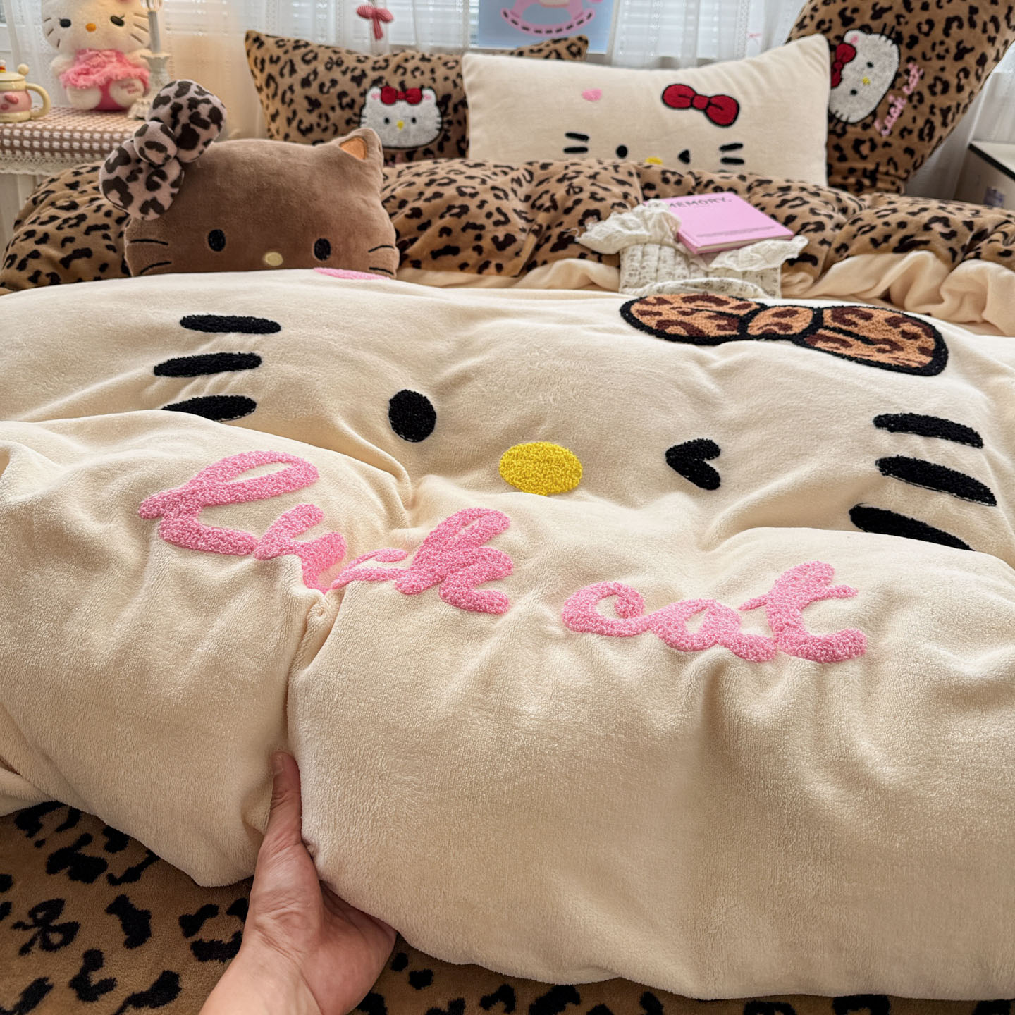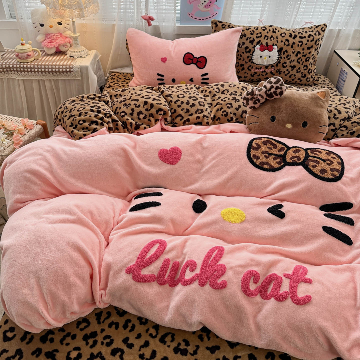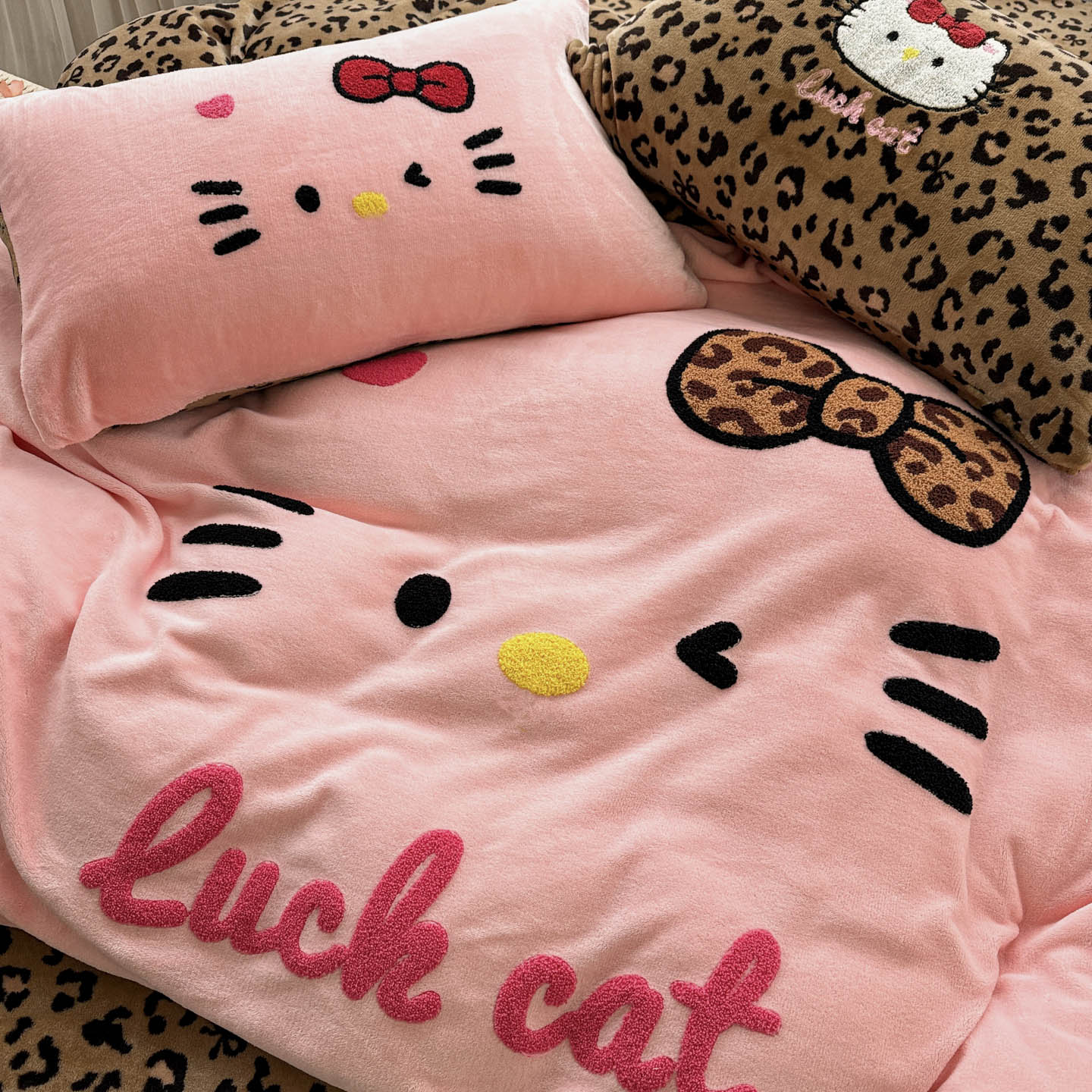 (总)徕米家居 2025新款卡通毛巾绣绣花牛奶绒四件套-豹纹猫咪系列