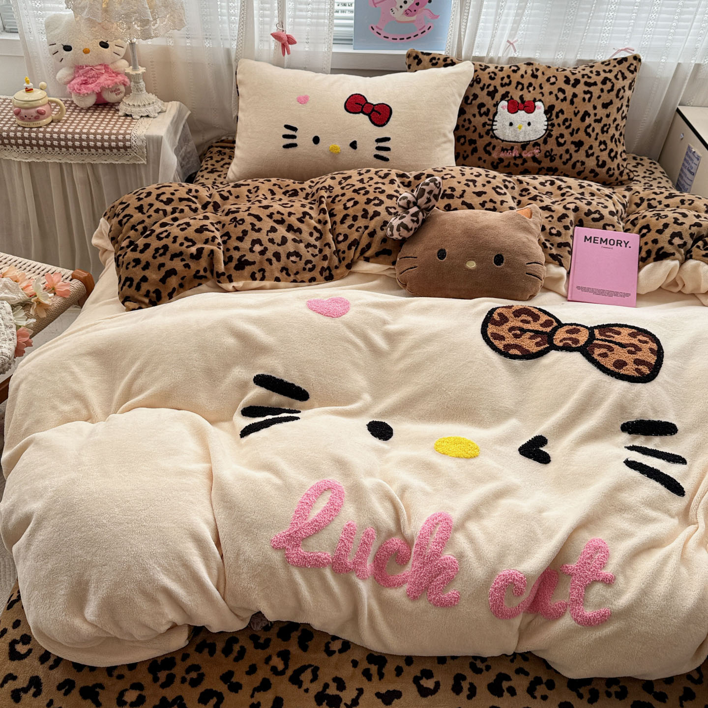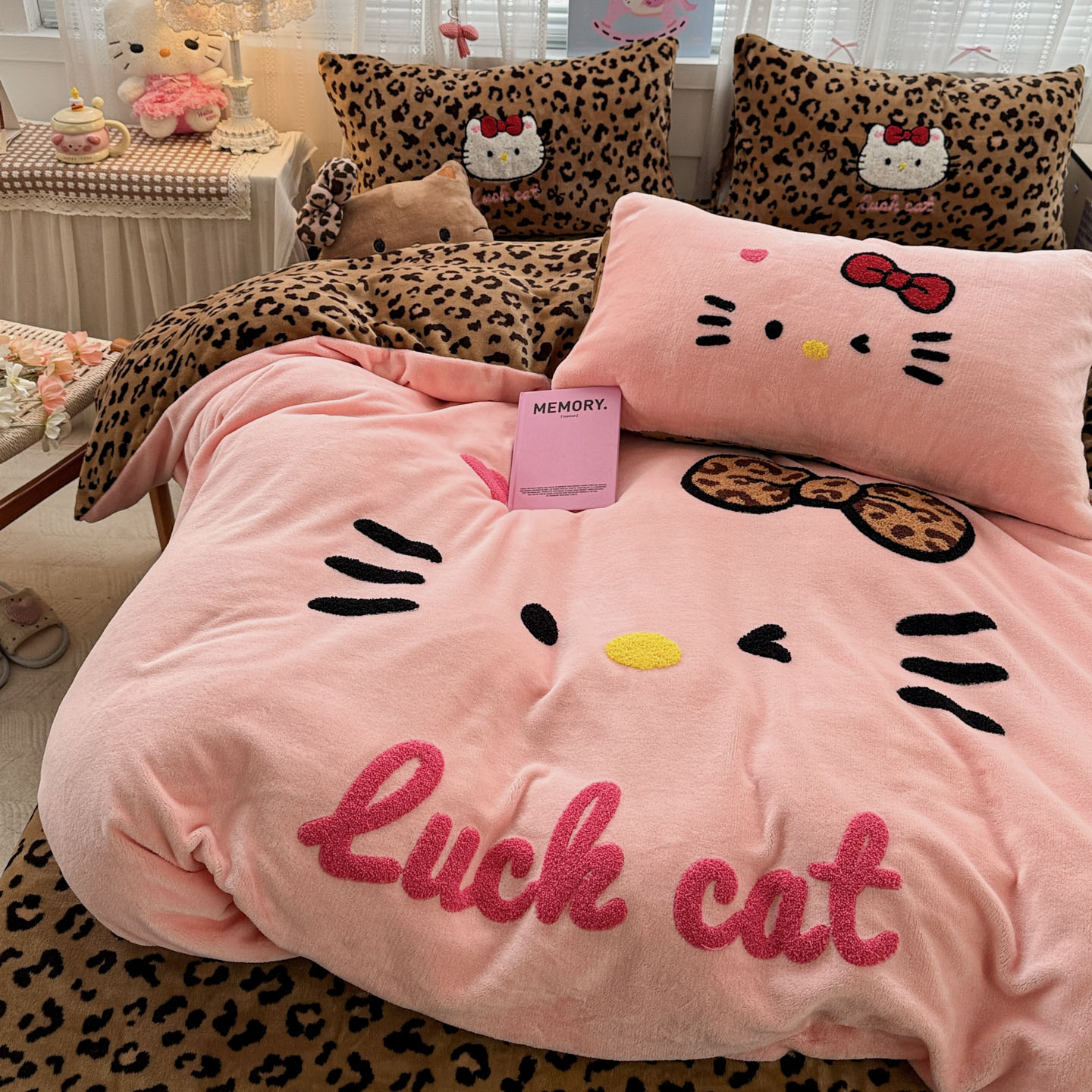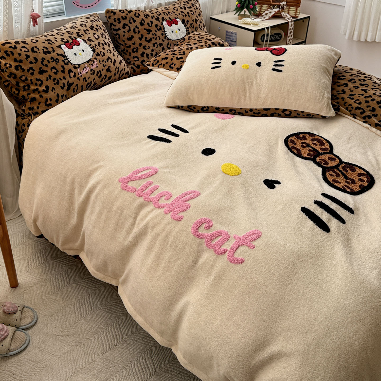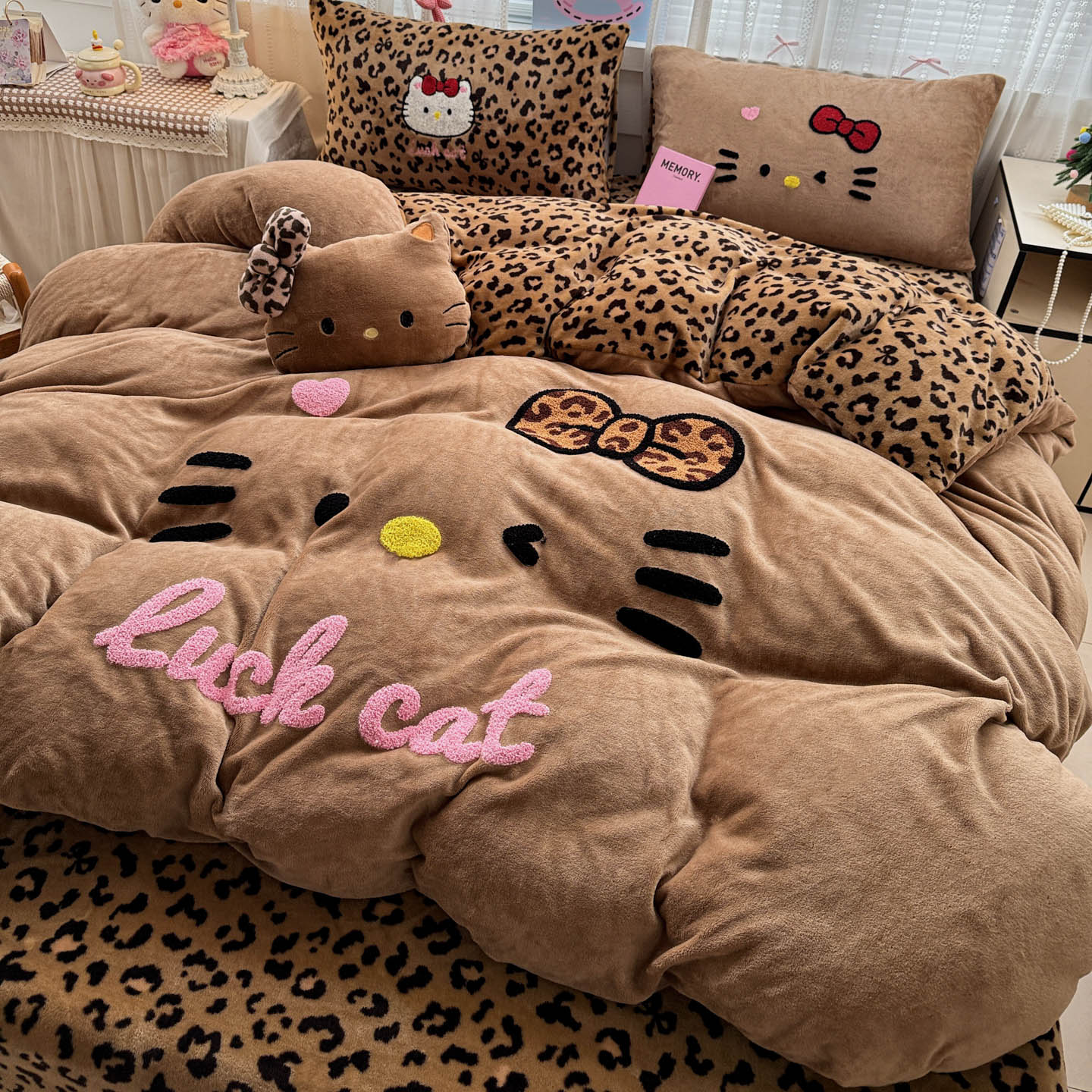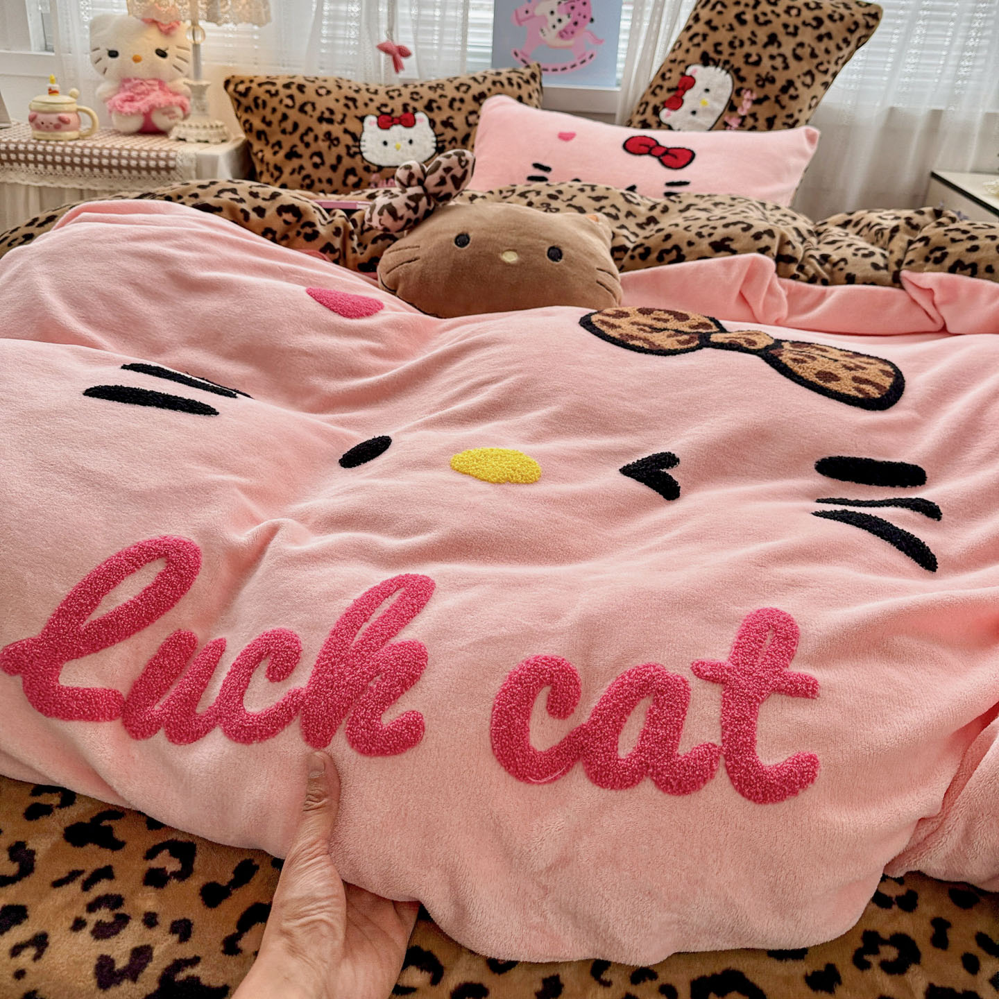 (总)徕米家居 2025新款卡通毛巾绣绣花牛奶绒四件套-豹纹猫咪系列