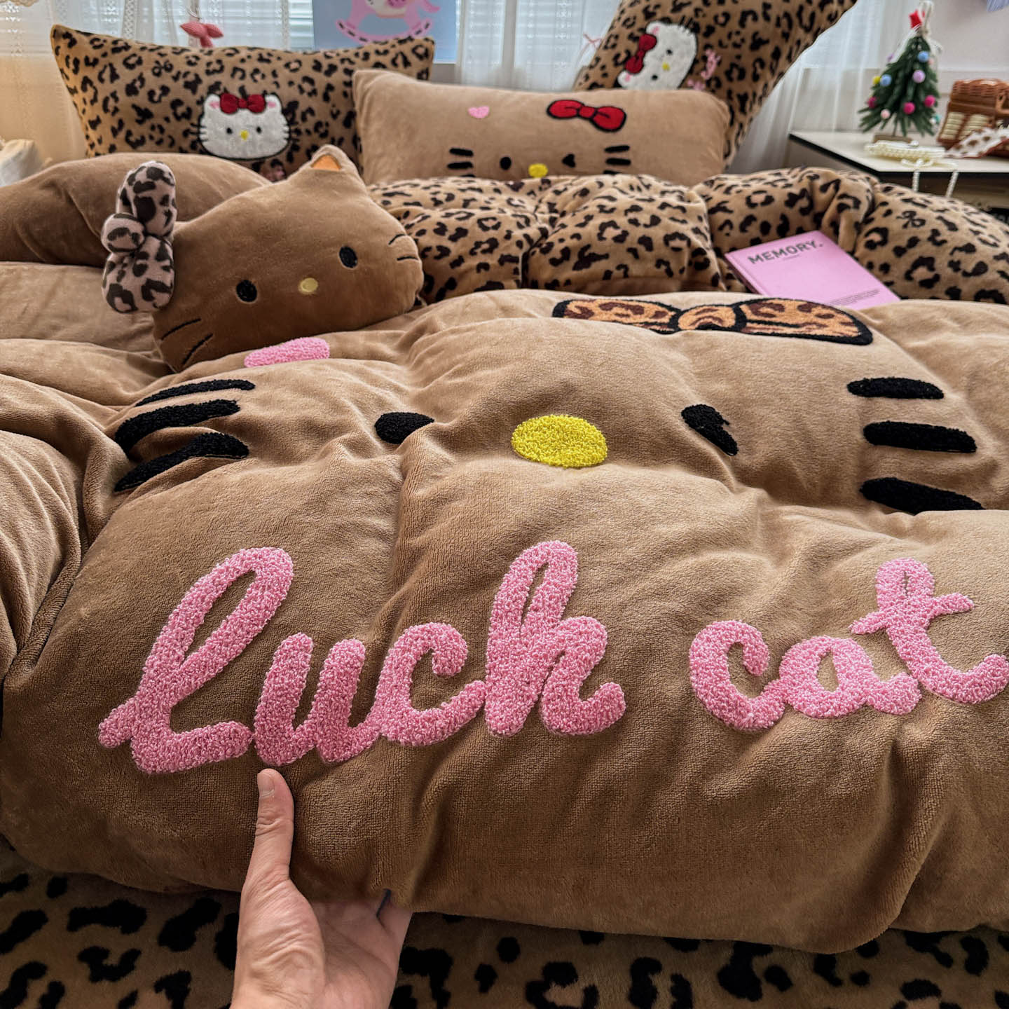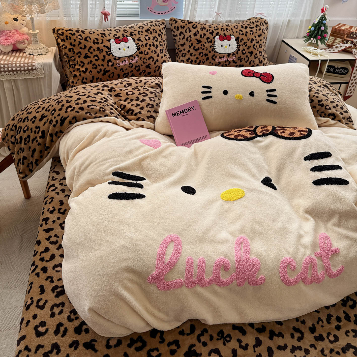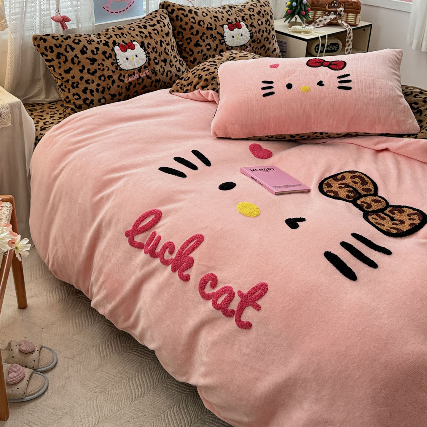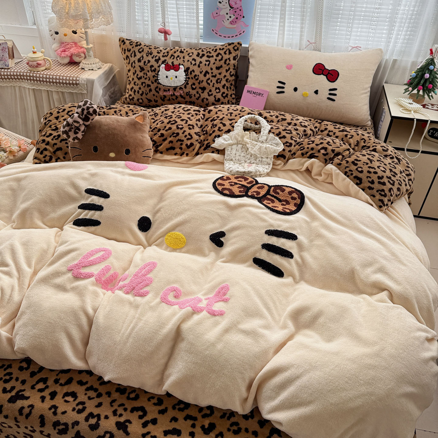 (总)徕米家居 2025新款卡通毛巾绣绣花牛奶绒四件套-豹纹猫咪系列