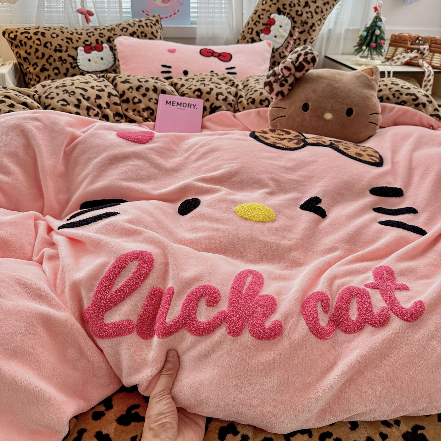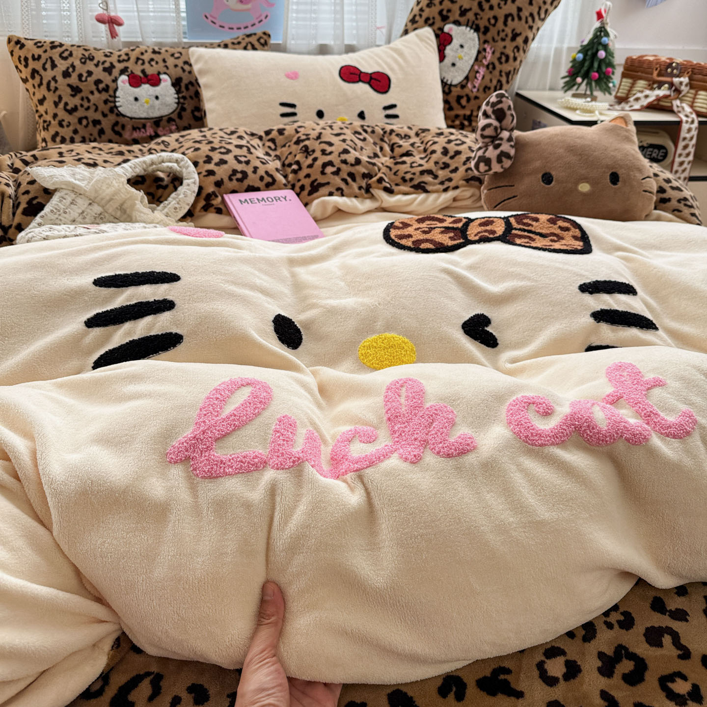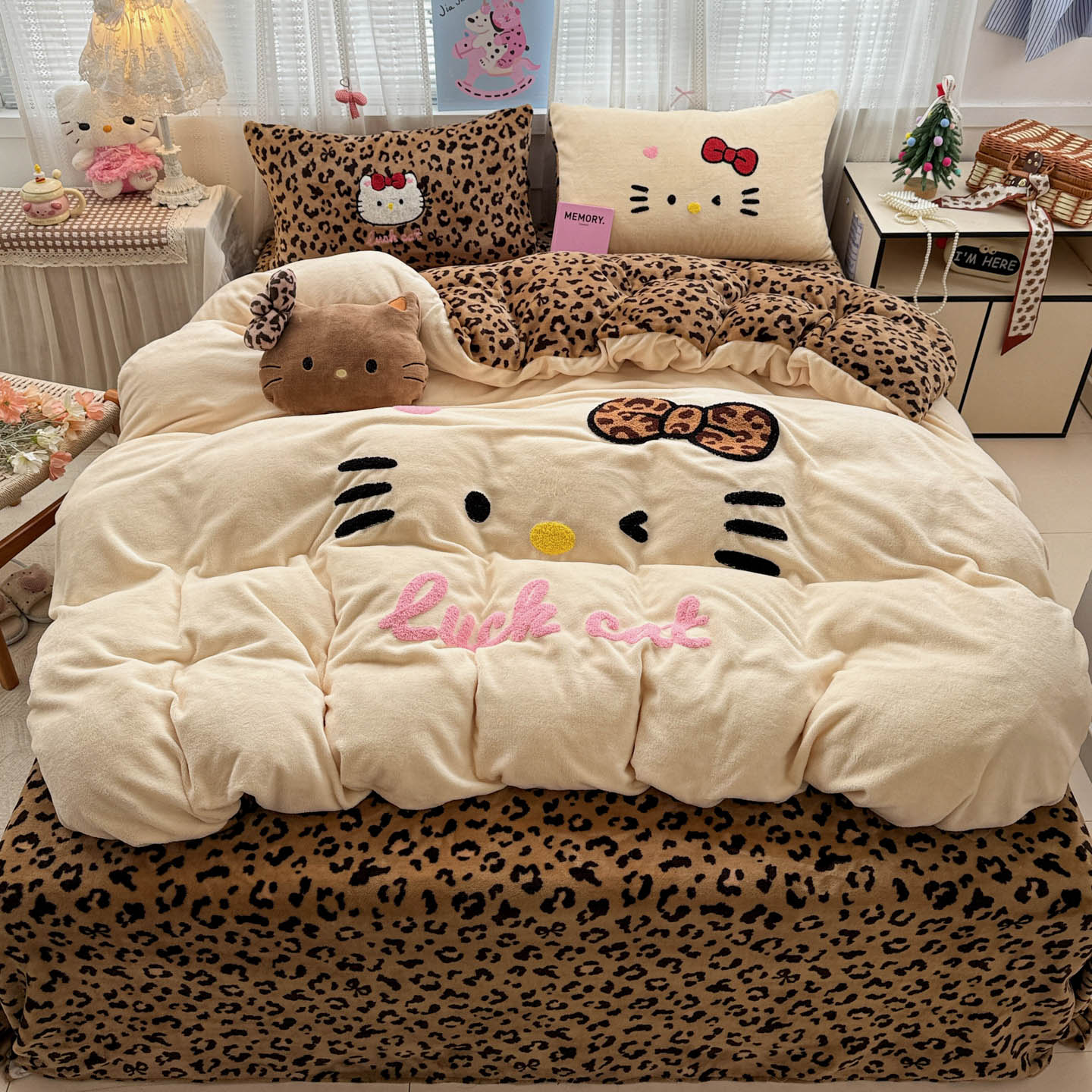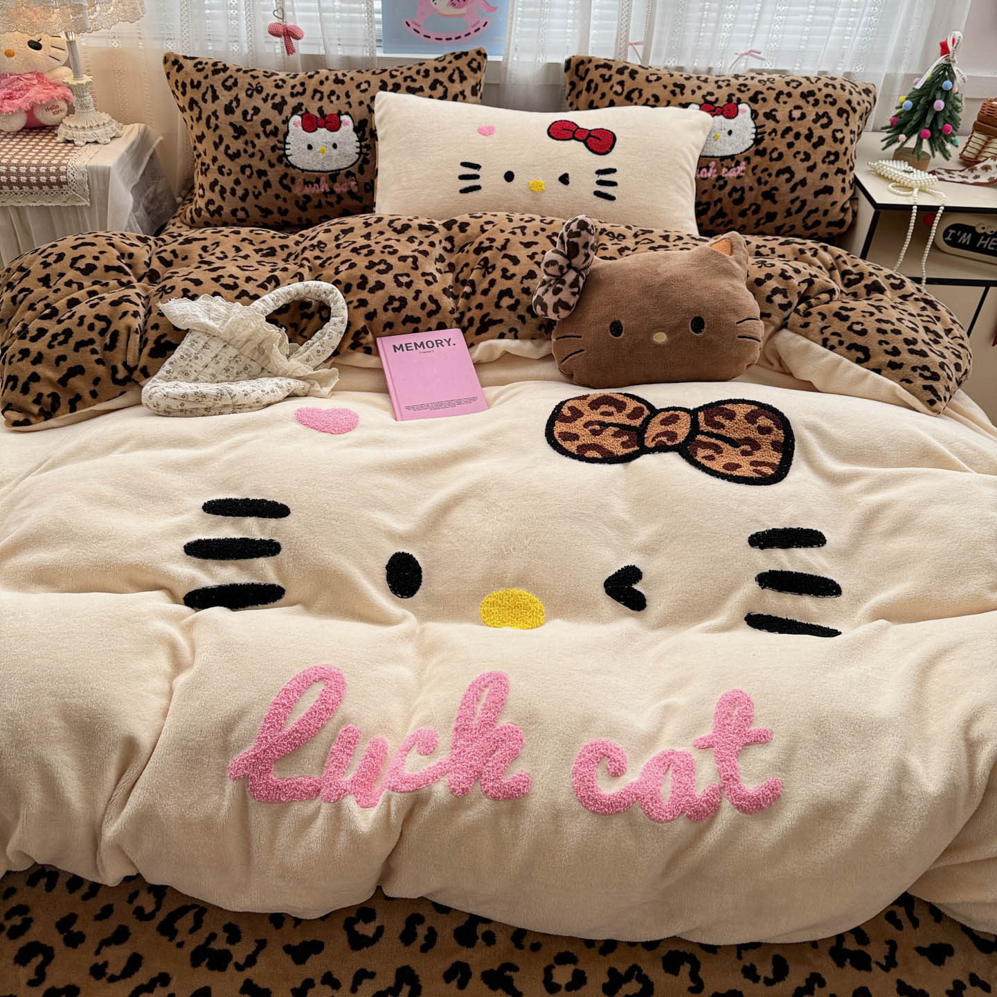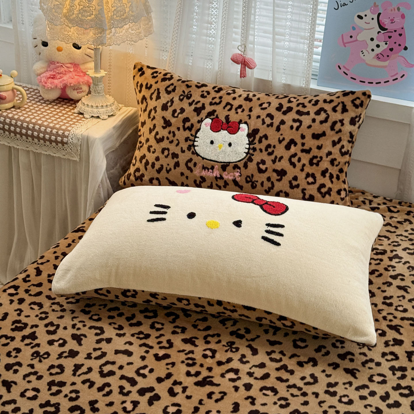 (总)徕米家居 2025新款卡通毛巾绣绣花牛奶绒四件套-豹纹猫咪系列