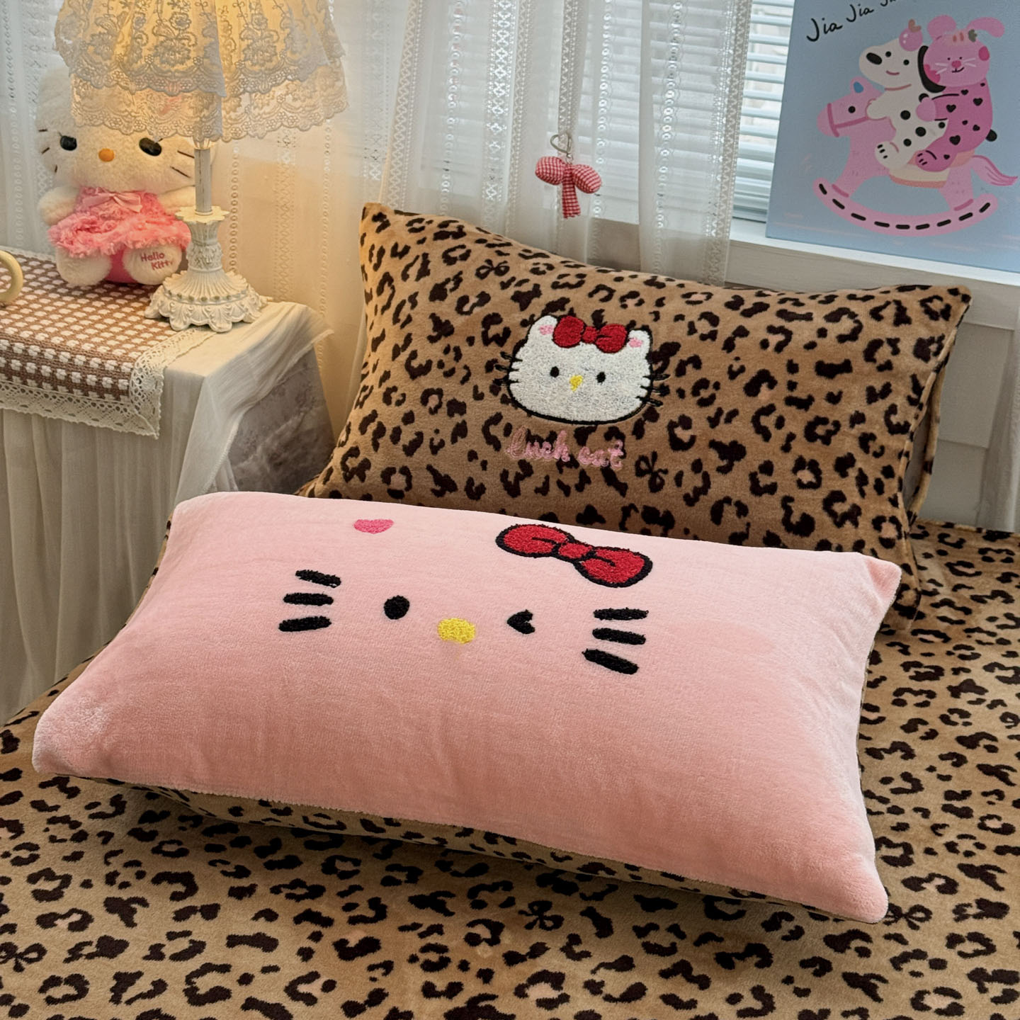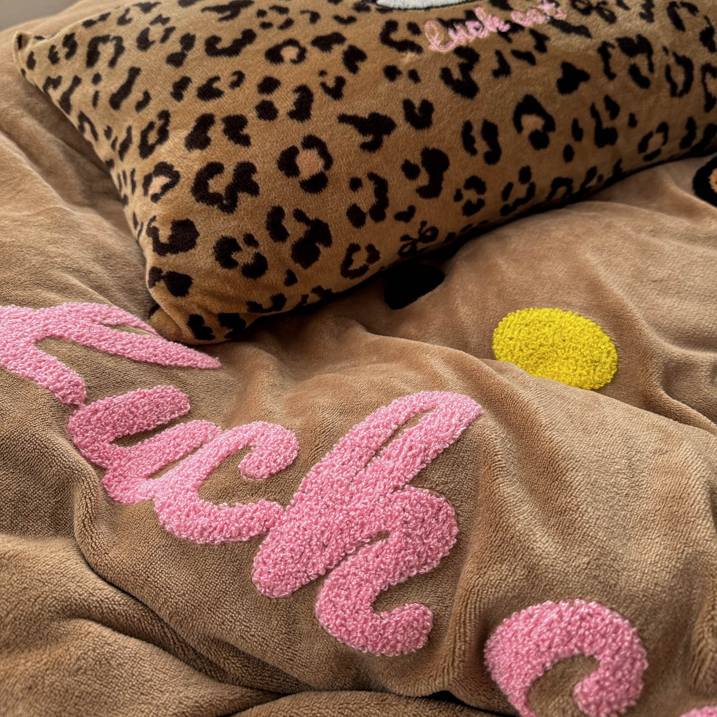 商品名称:(总)徕米家居 2025新款卡通毛巾绣绣花牛奶绒四件套-豹纹猫咪系列