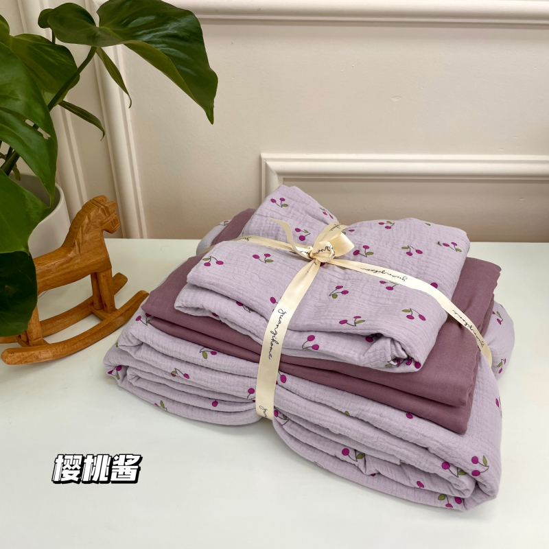源启生活 2025新款全棉A类双层皱皱纱四件套 紫郁