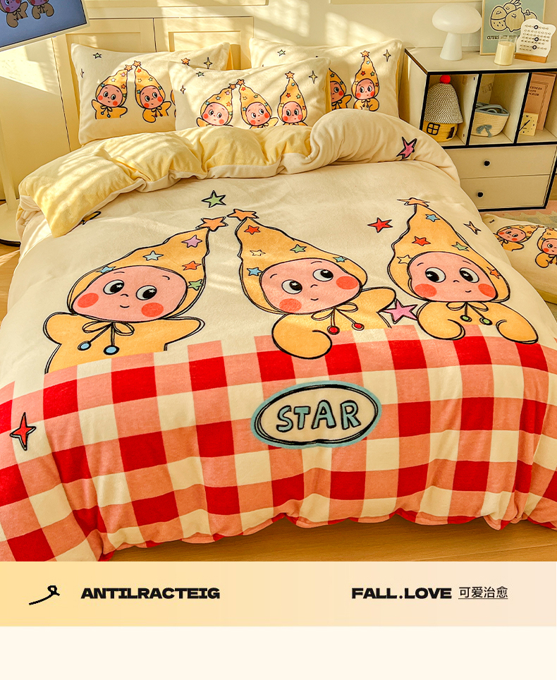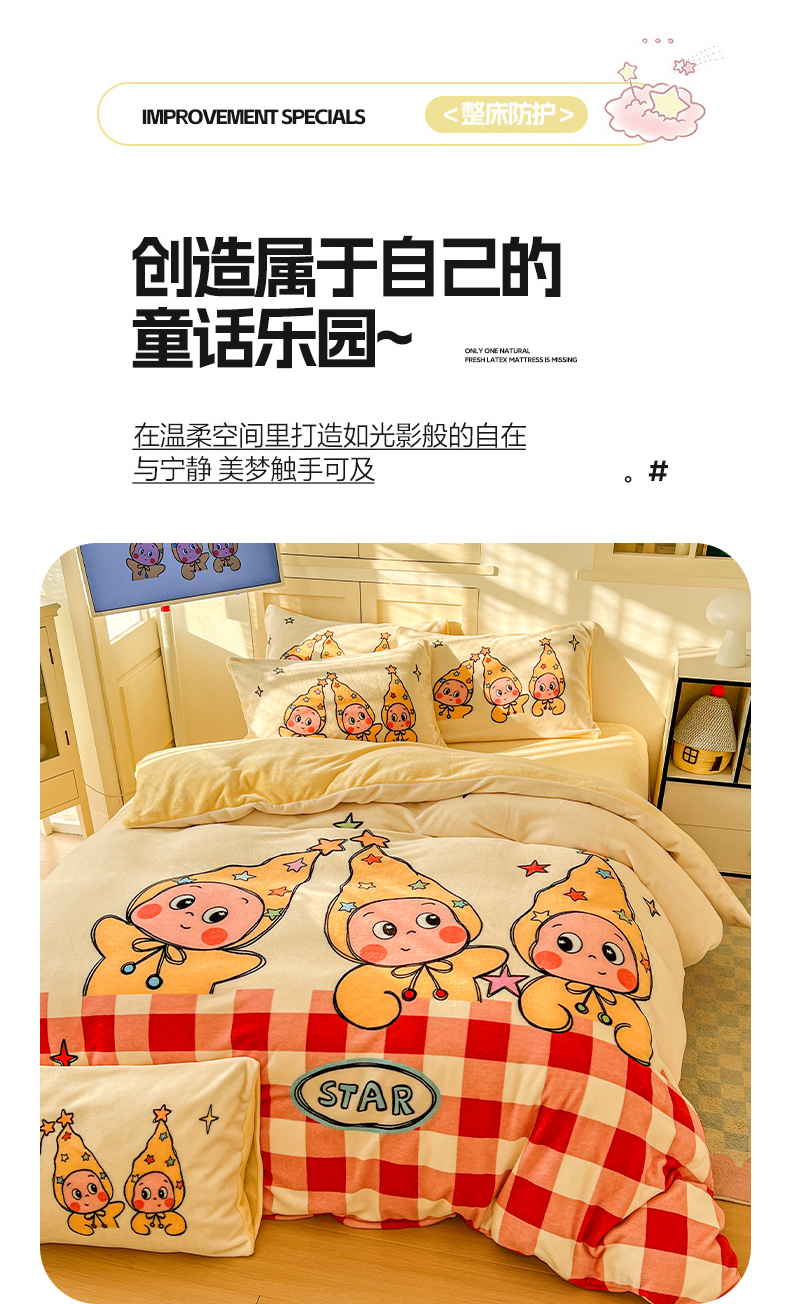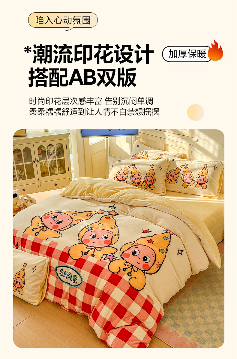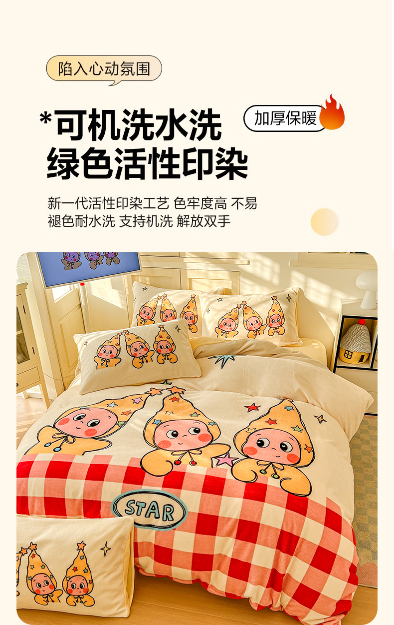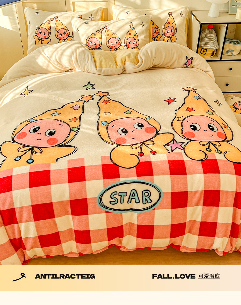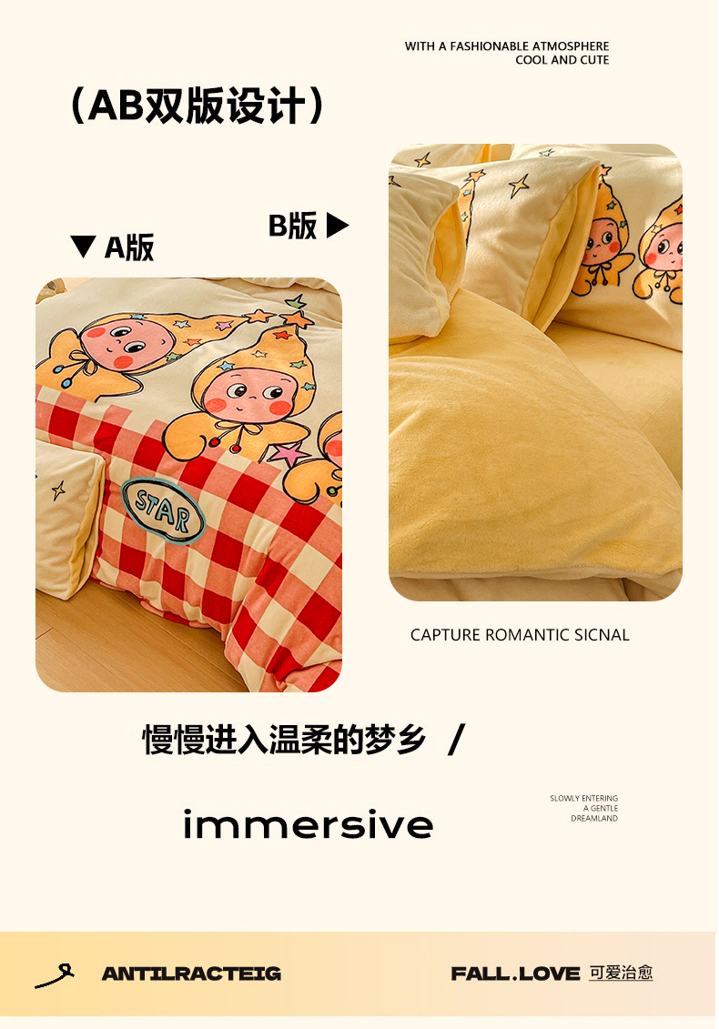 当前位置: 91家纺网 > 商品网购 > 床品套件 > 四件套 > 牛奶绒四件套 > 浩诚 2025新款高克重牛奶绒大版卡通四件套系列 恋恋星河