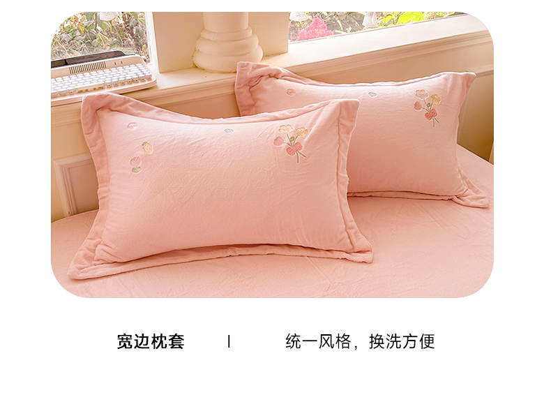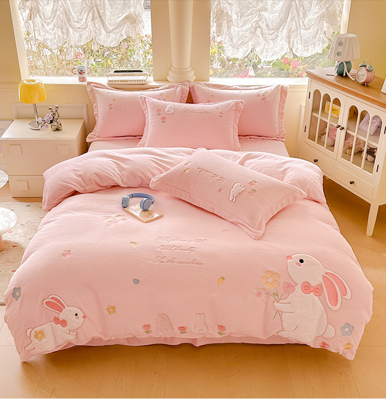 金绣美居 2025新款牛奶绒毛绒贴布绣花保暖四件套-森系小兔 森系小兔-粉色