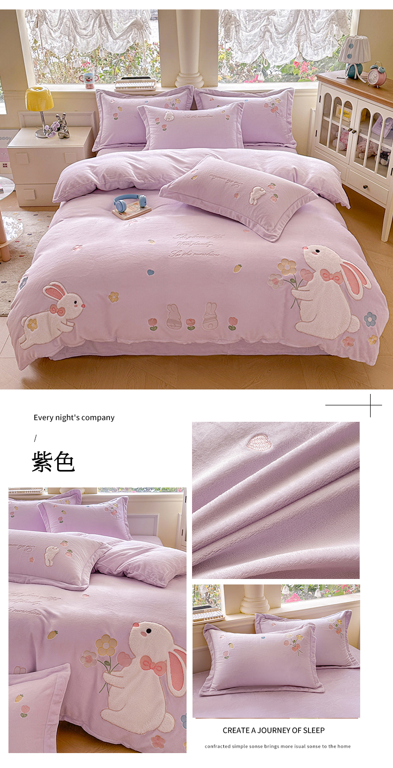 (总)金绣美居 2025新款牛奶绒毛绒贴布绣花保暖四件套-森系小兔,森系小兔-粉色,森系小兔-蓝色,森系小兔-米色,森系小兔-杏黄,森系小兔-紫色