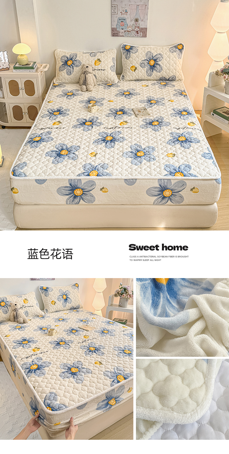 小叮当家纺仓储工厂店 2025新款A类200g高克重牛奶绒印花夹棉床笠单品床笠床笠单件(提供买家秀) 高级灰