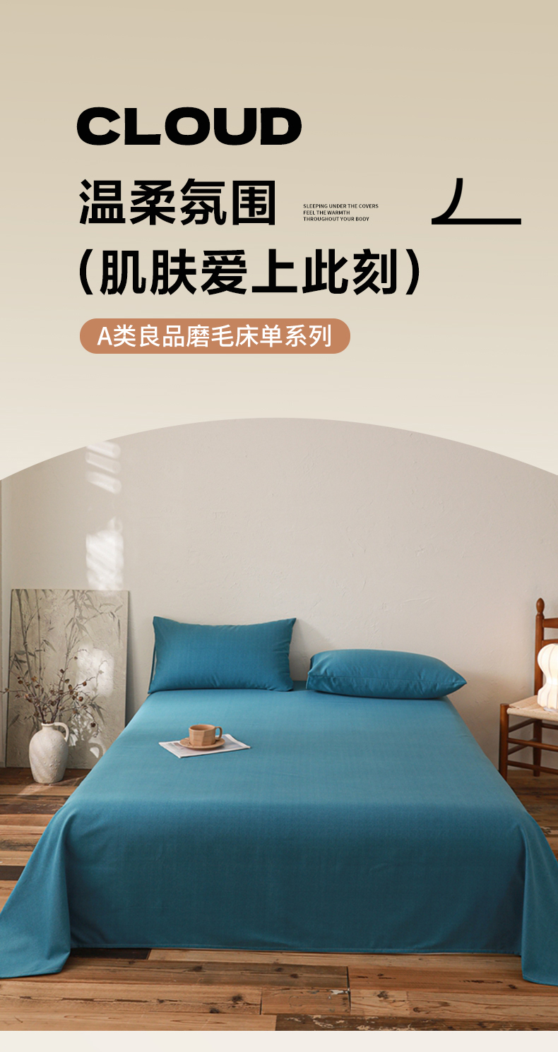小叮当家纺仓储工厂店 (买家秀 爆款花型 不断货)2025新款良品磨毛单床单床单单件 肌理蓝