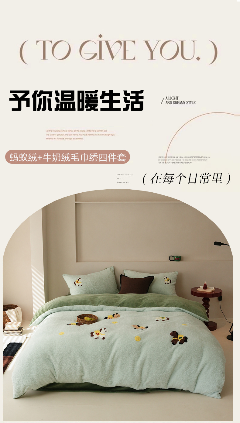 当前位置: 91家纺网 > 商品网购 > 床品套件 > 四件套 > 牛奶绒四件套 > 禾时 2025新款蚂蚁绒牛奶绒毛巾绣四件套 马上有钱