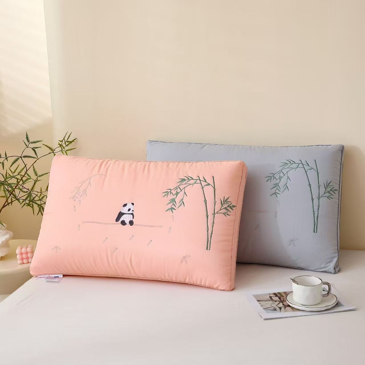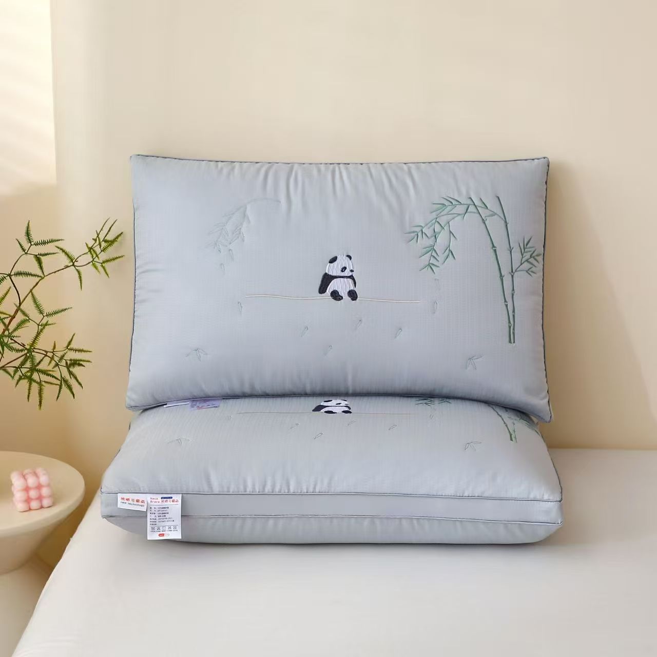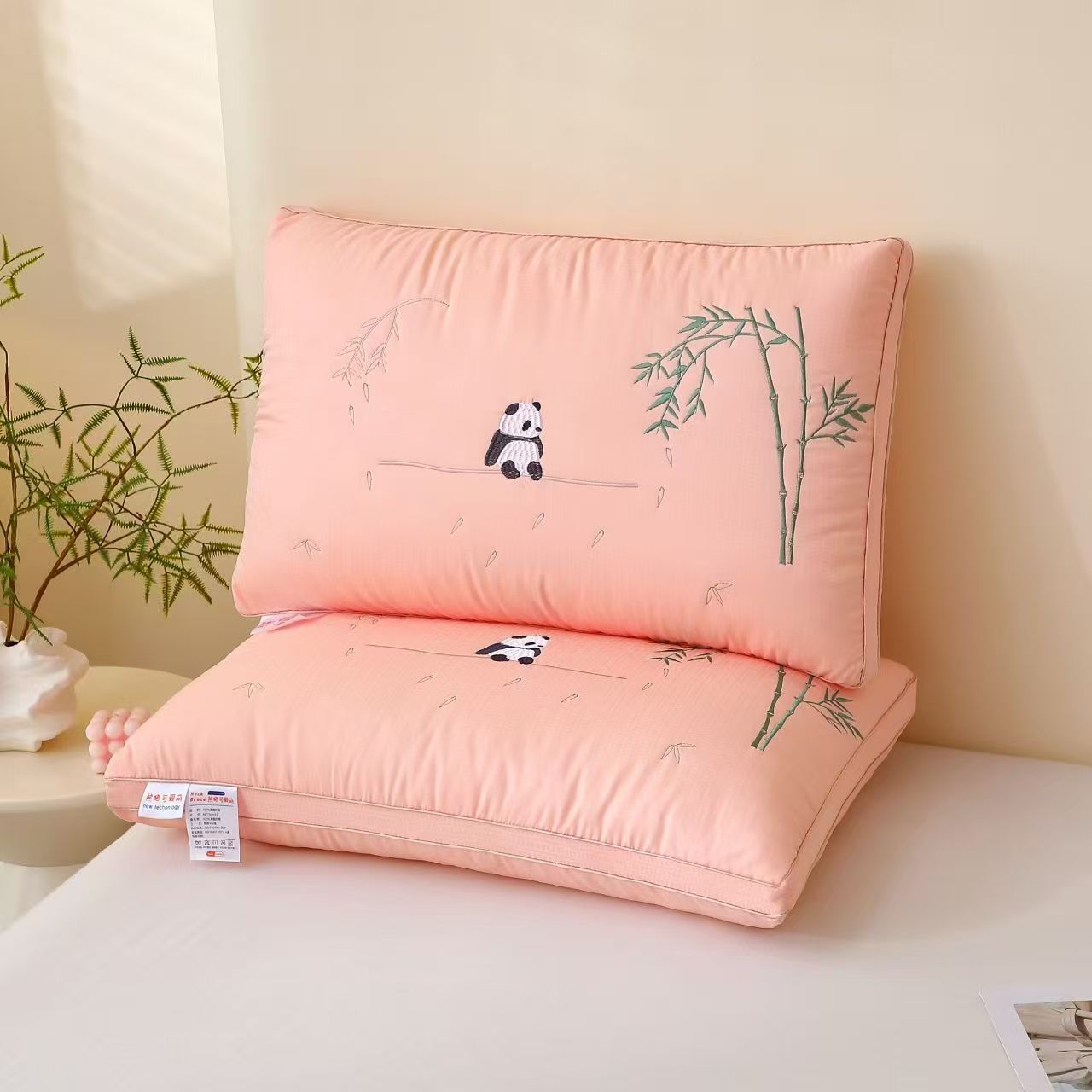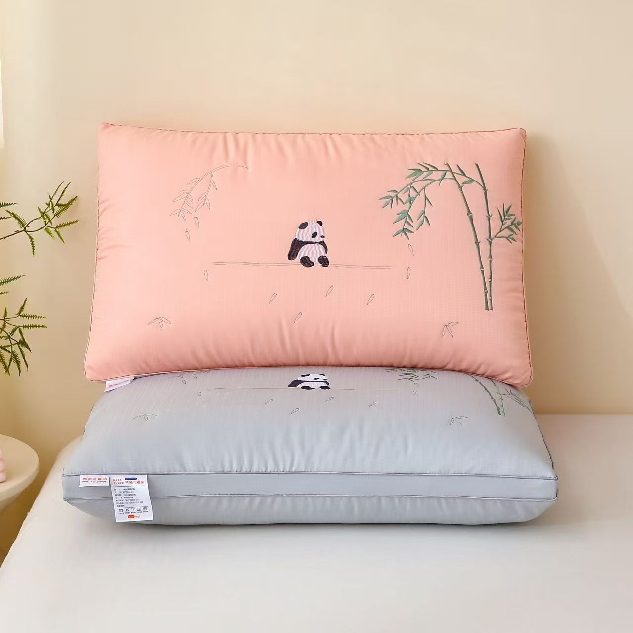 (总)剑桥枕业 2025新款熊猫清爽安睡枕芯定型护颈羽丝绒枕头中高枕芯,白色,灰色,粉色
