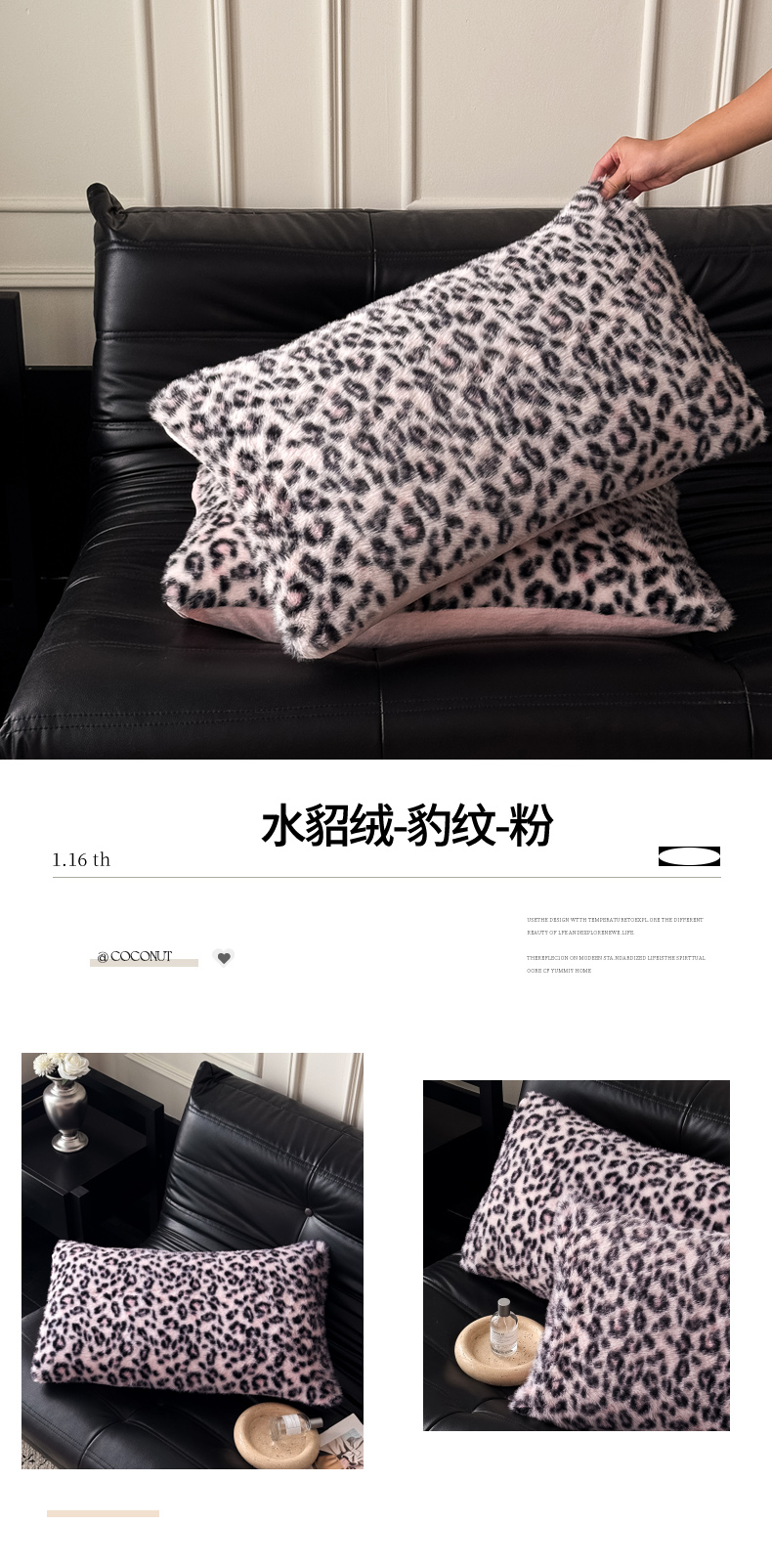 商品名称:九花鹿 2025新款水貂绒皮草绒保暖单人双人单品枕套单件枕套 豹纹-粉