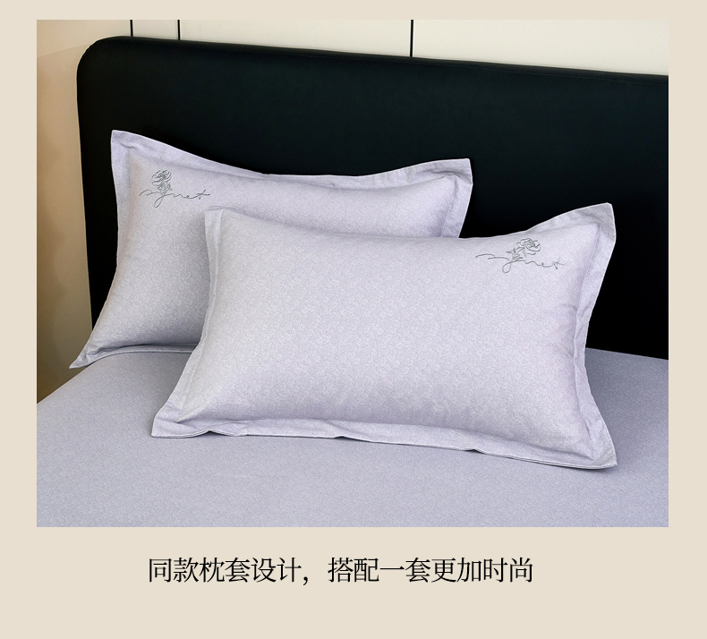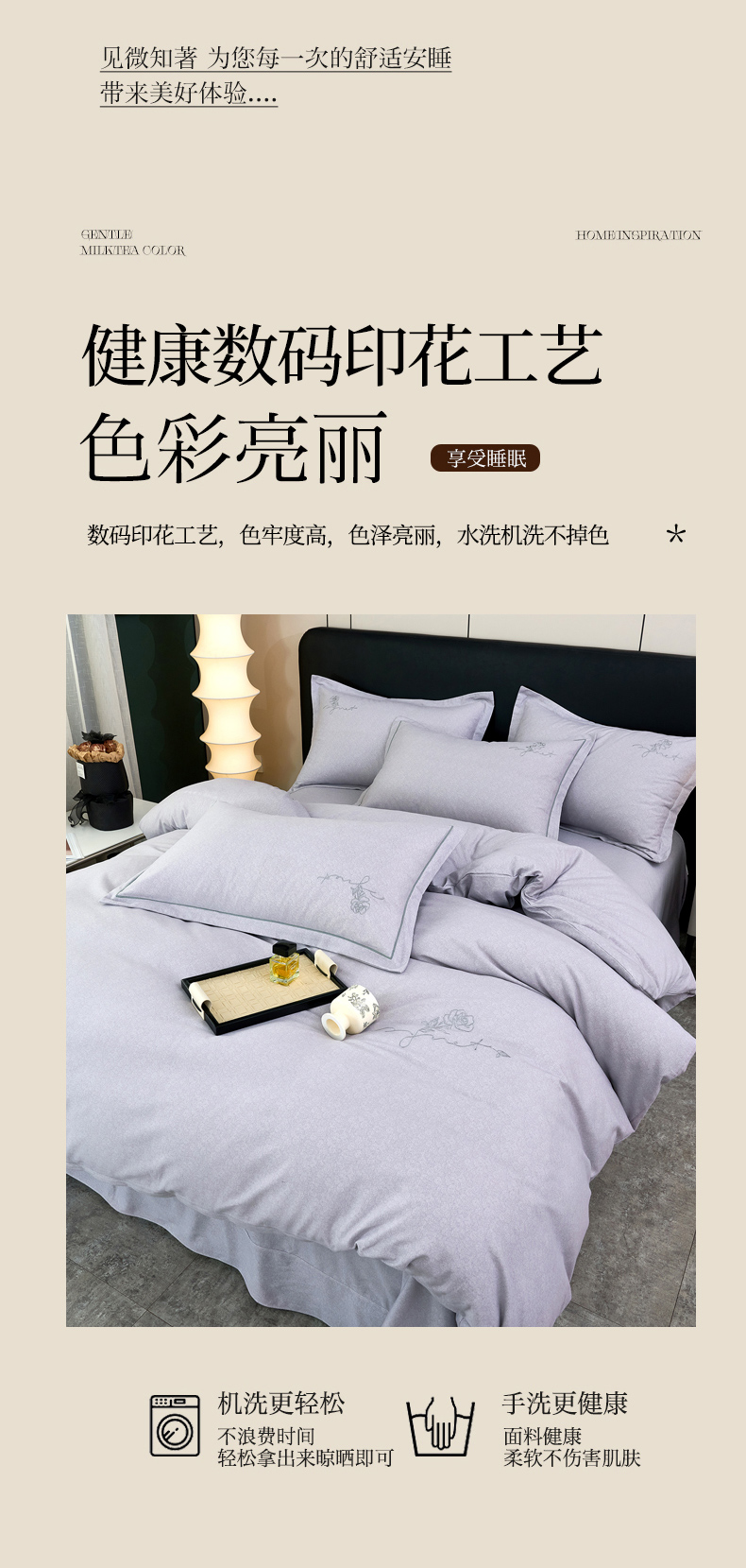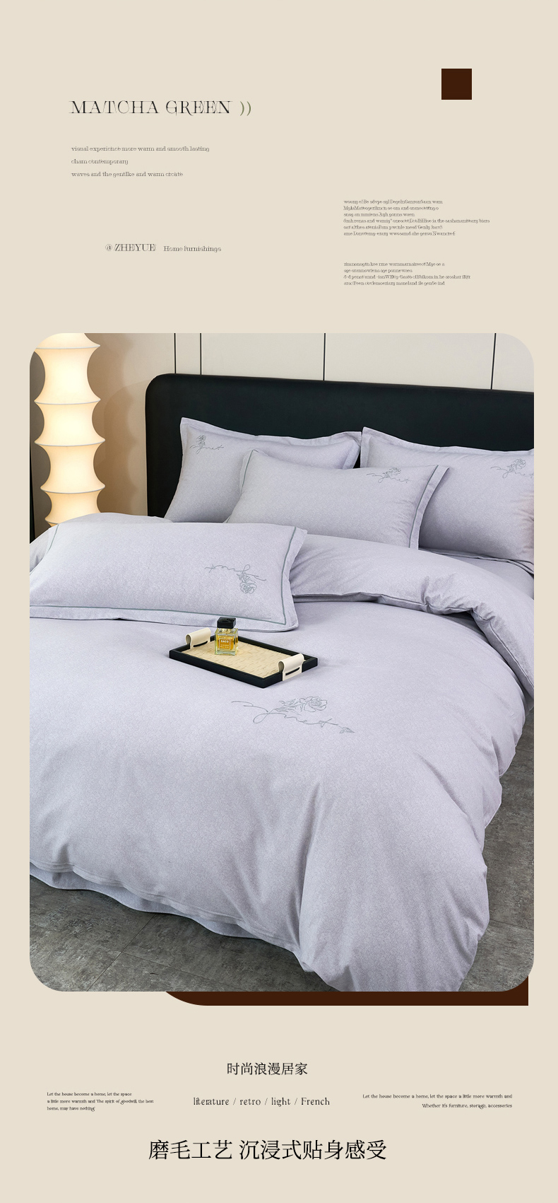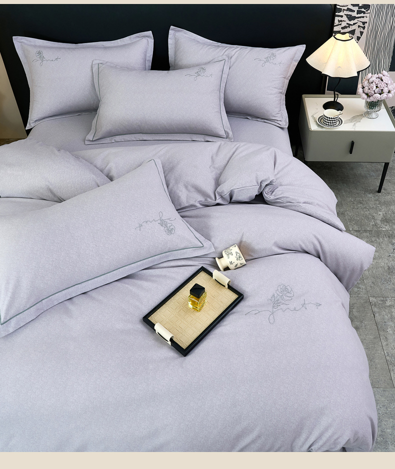 三沁家居 2025新款全棉磨毛刺绣四件套-玫瑰物语 玫瑰物语-灰紫