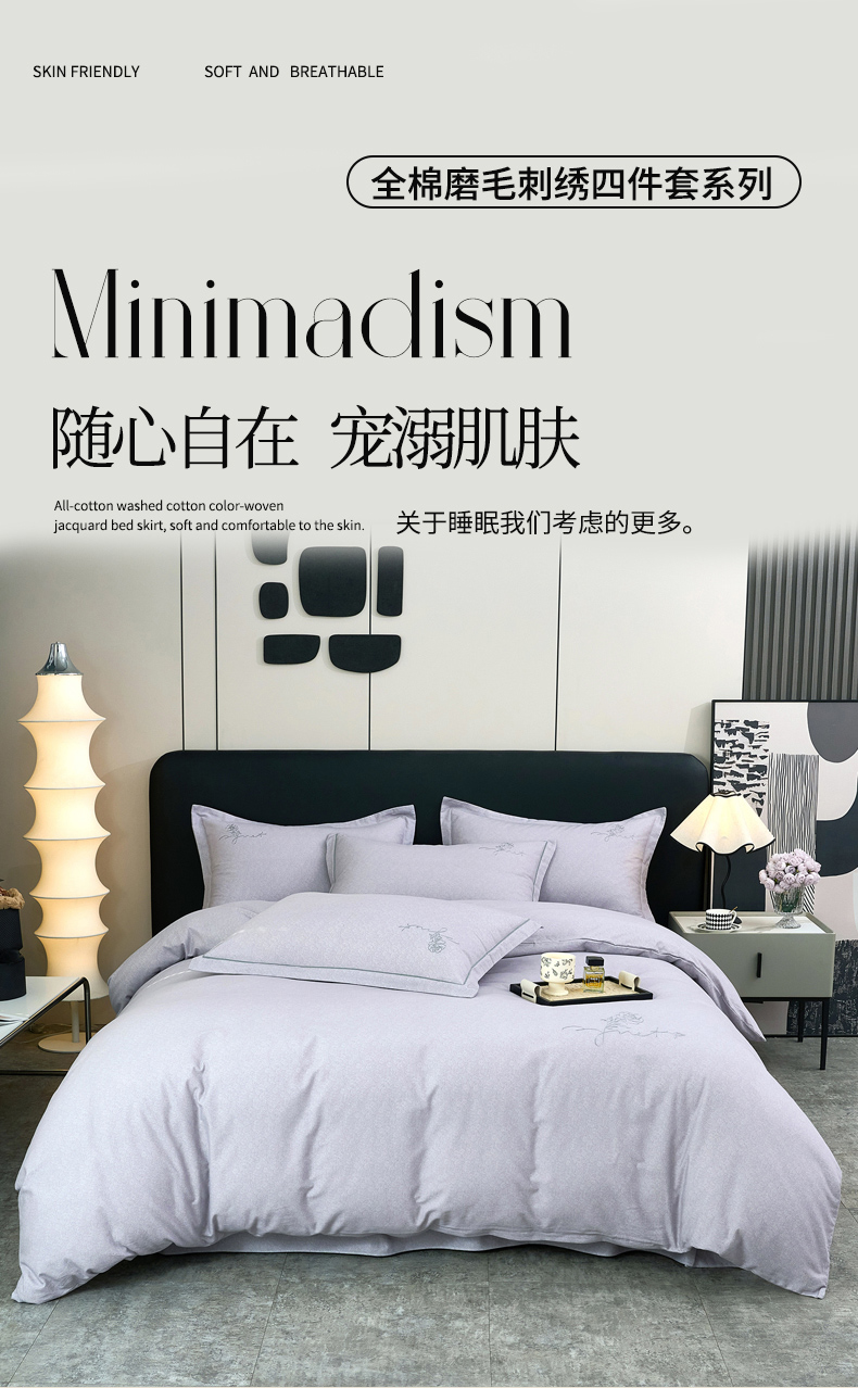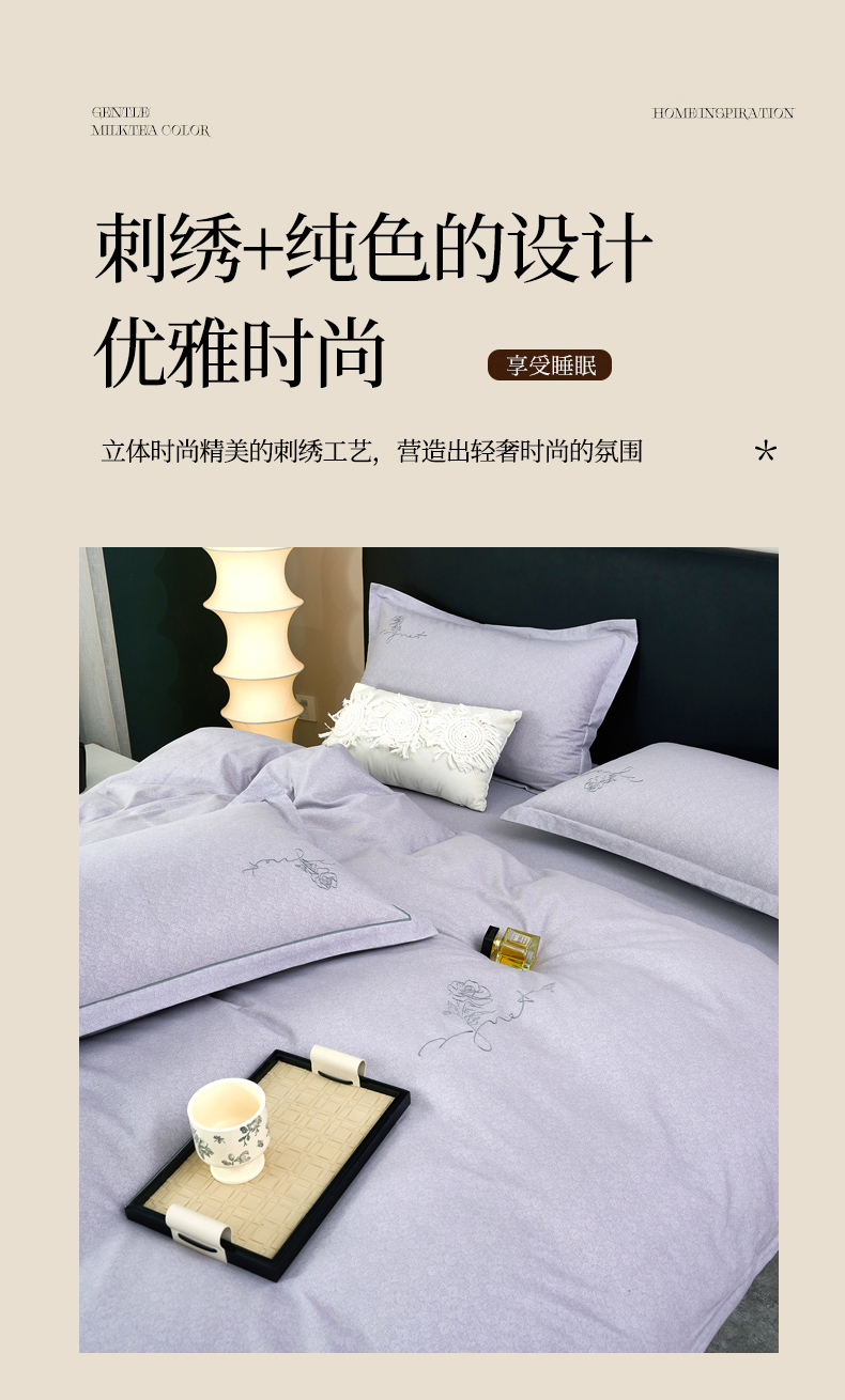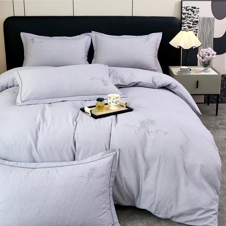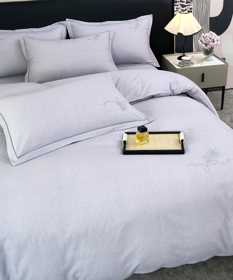 三沁家居 2025新款全棉磨毛刺绣四件套-玫瑰物语 玫瑰物语-灰紫