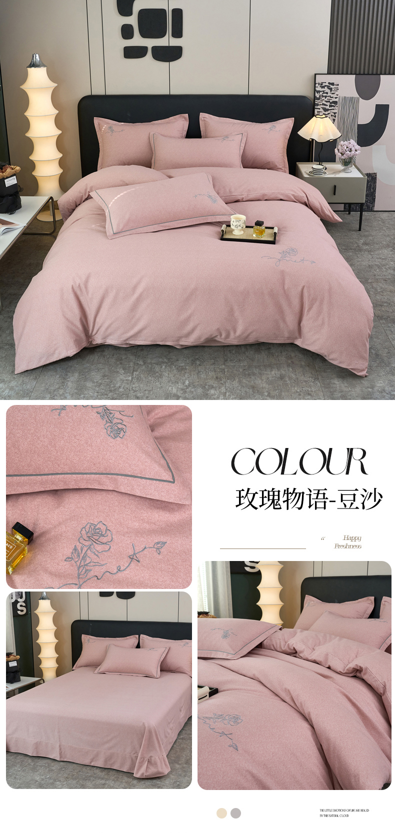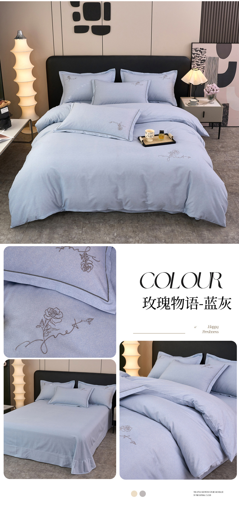 (总)三沁家居 2025新款全棉磨毛刺绣四件套-玫瑰物语,玫瑰物语-豆沙,玫瑰物语-灰紫,玫瑰物语-蓝灰