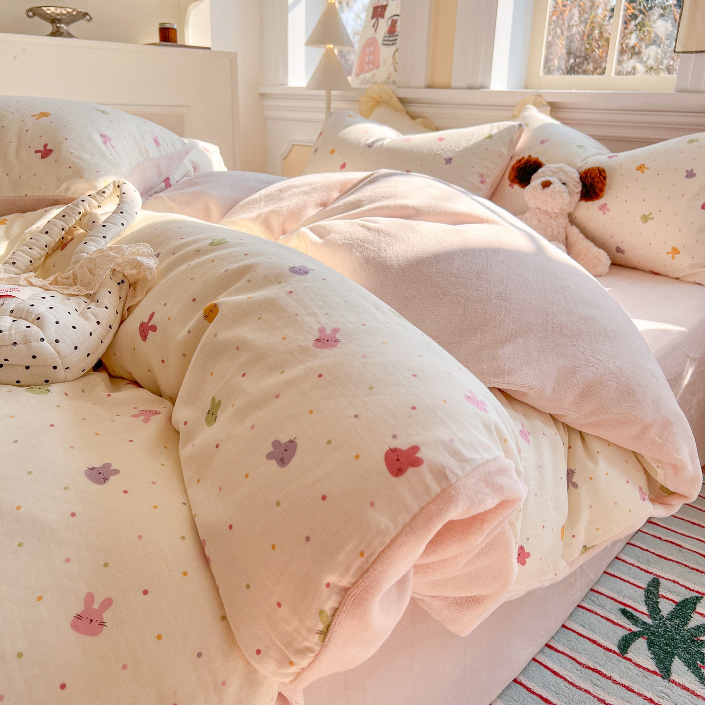 当前位置: 91家纺网 > 商品网购 > 床品套件 > 四件套 > 牛奶绒四件套 > 金丝鸟家纺 2025新款全棉双层纱加牛奶绒四件套 拉条狗