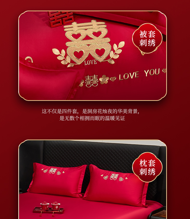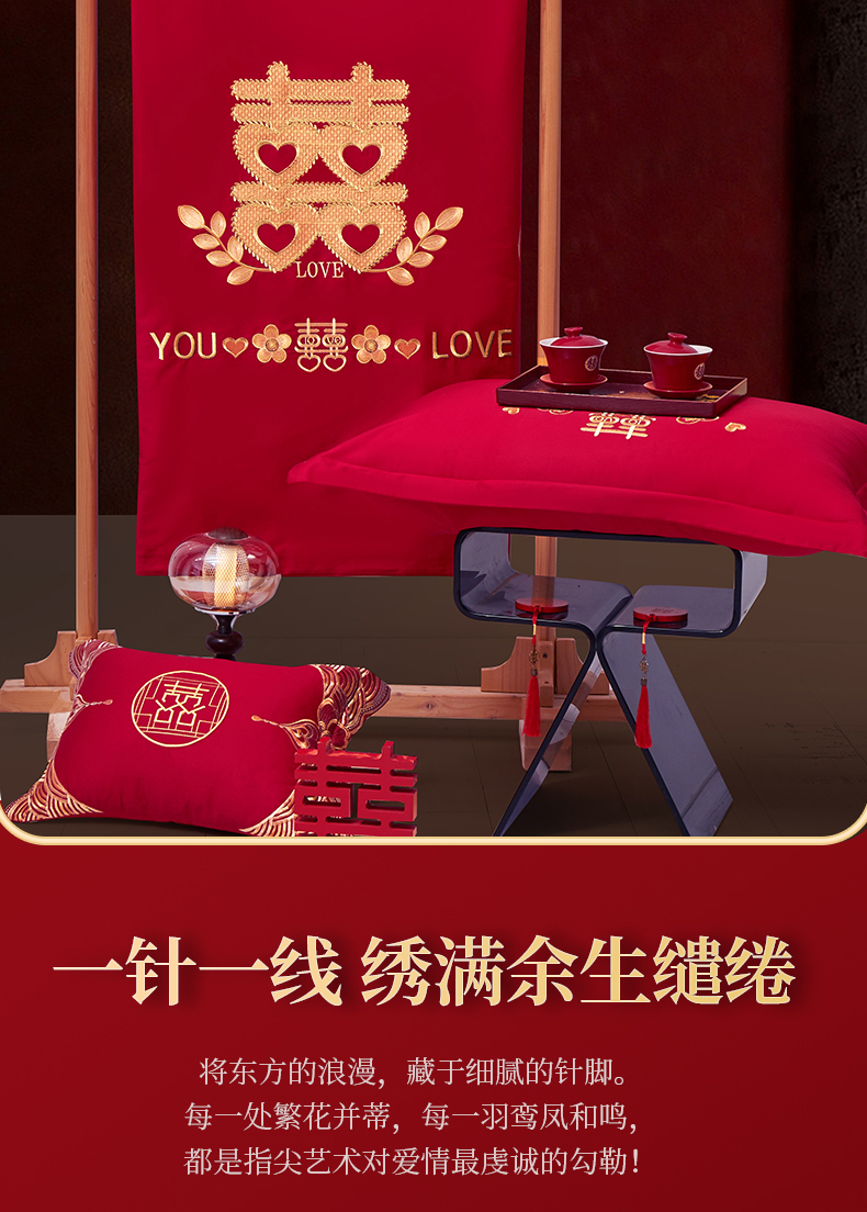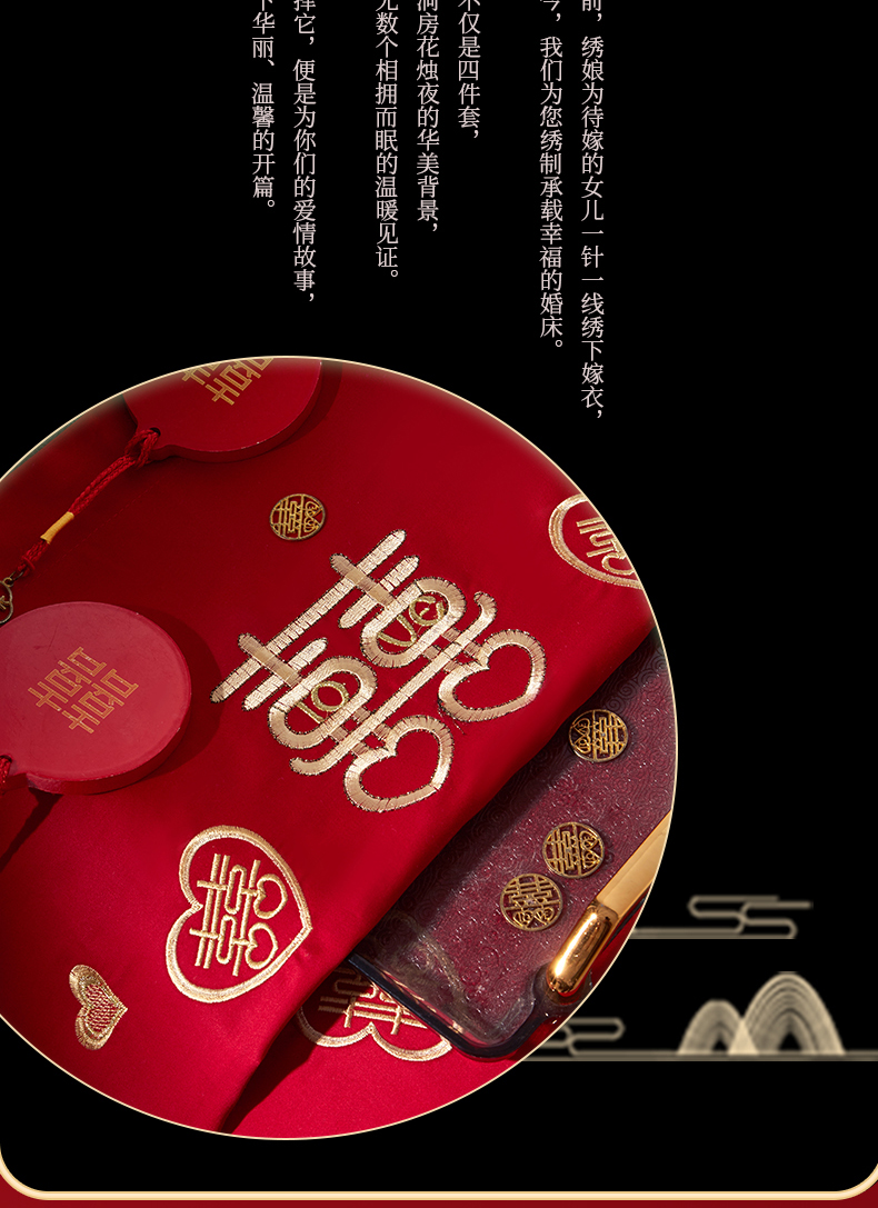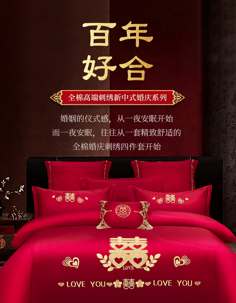 (总)浩情国际婚庆供货中心 2026新款100%全棉纯棉新中式刺绣大红结婚婚庆四件套多件套,HQ-百年好合,HQ-情投意合,HQ-幸福美满,HQ-心囍(金),HQ-囍结良缘,HQ-大囍事