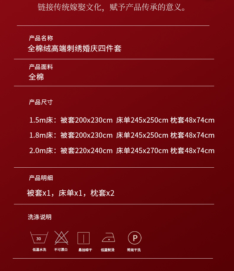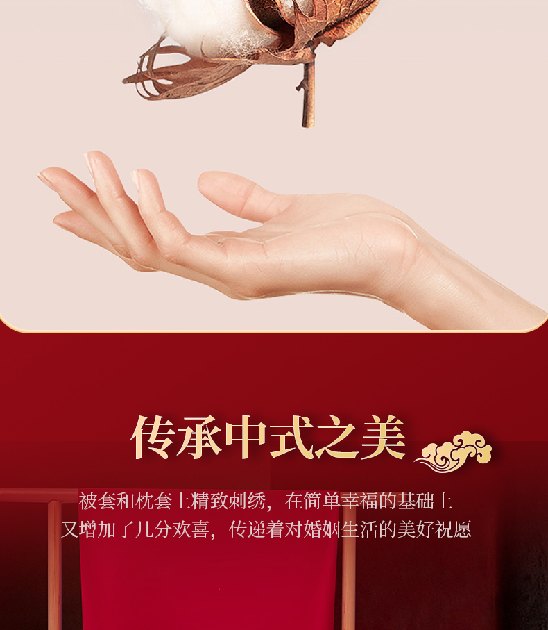 商品名称:浩情国际婚庆供货中心 2026新款100%全棉纯棉新中式刺绣大红结婚婚庆四件套多件套 HQ-百年好合