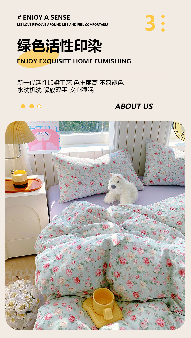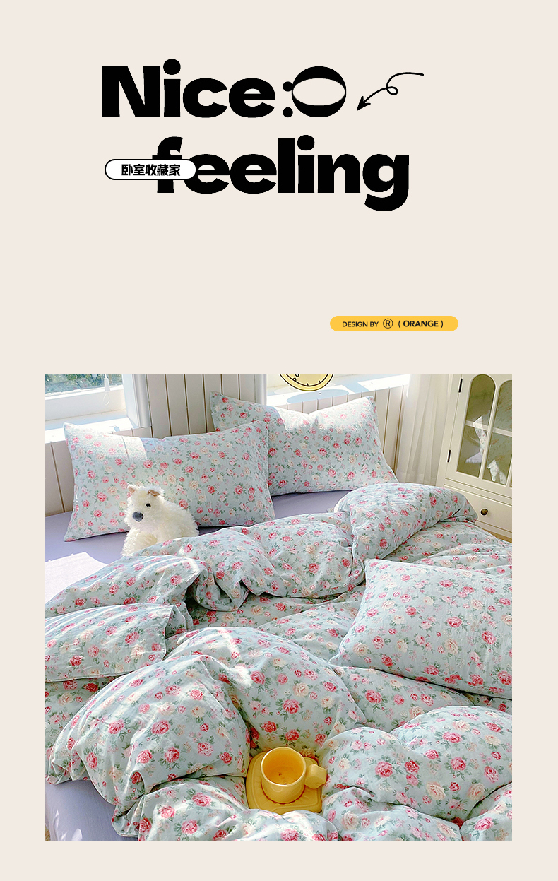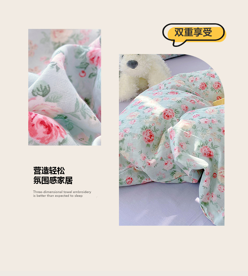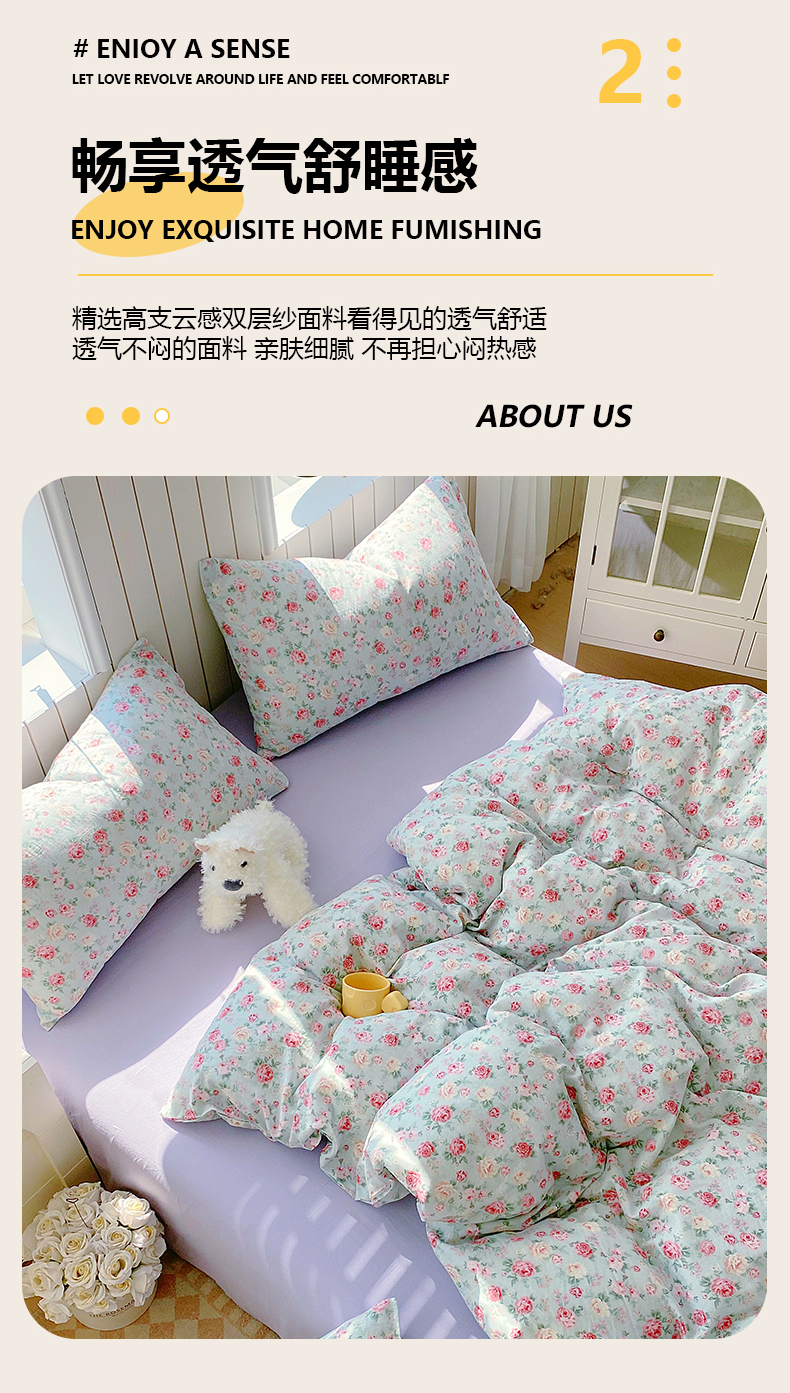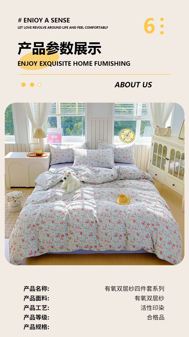 (总)春皖家纺 2026新款A类全棉有氧双层纱印花四件套单品系列-四件套