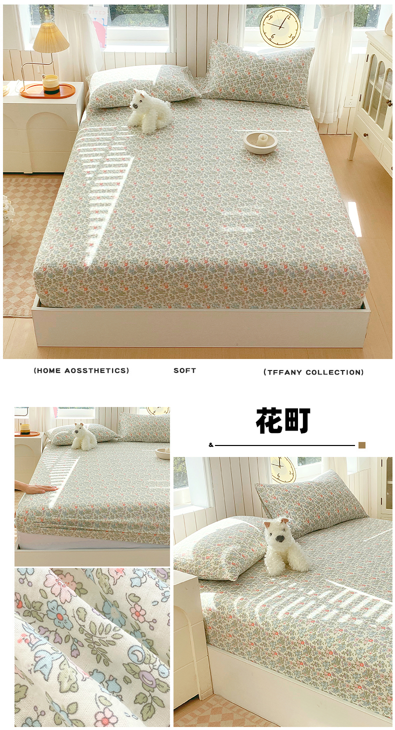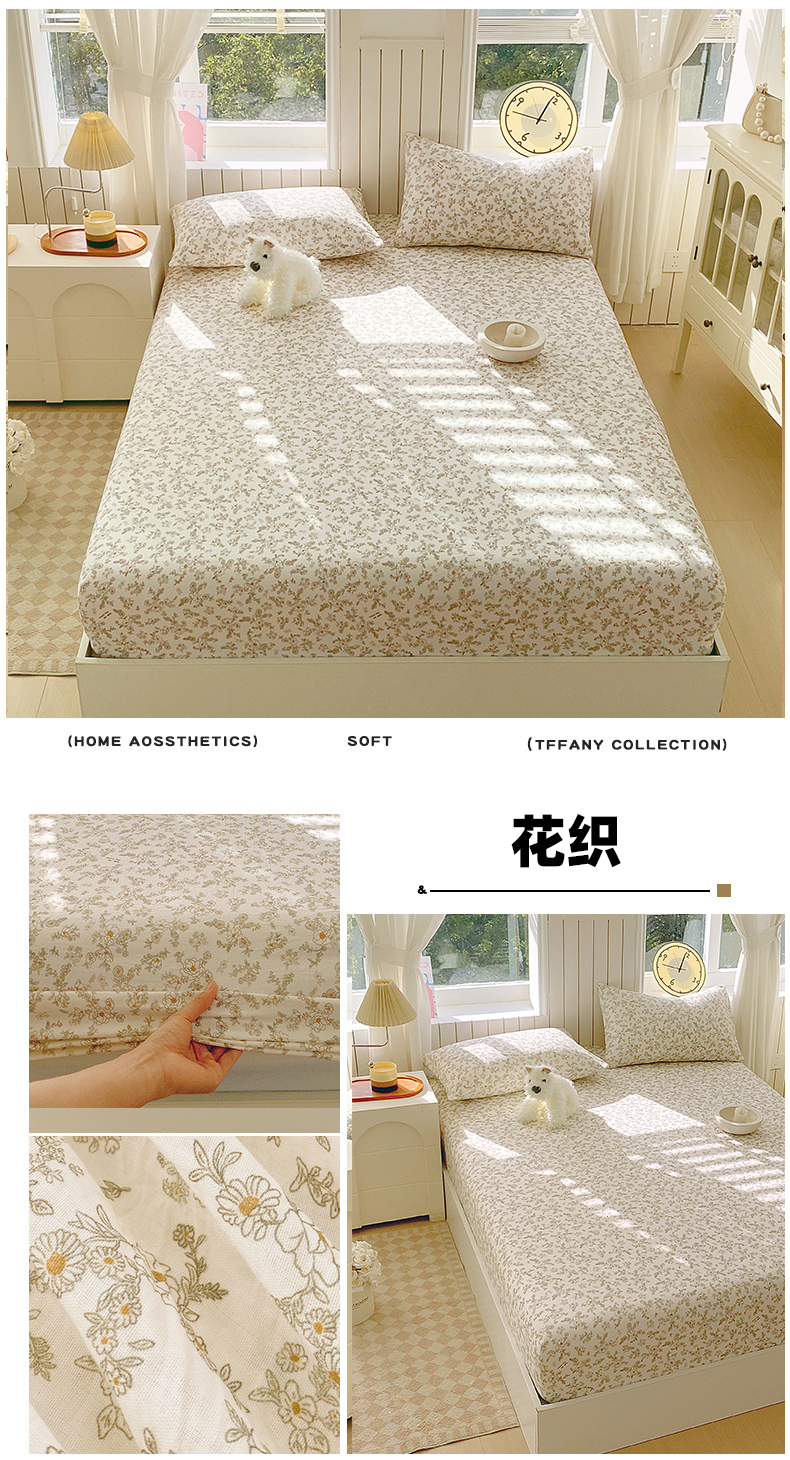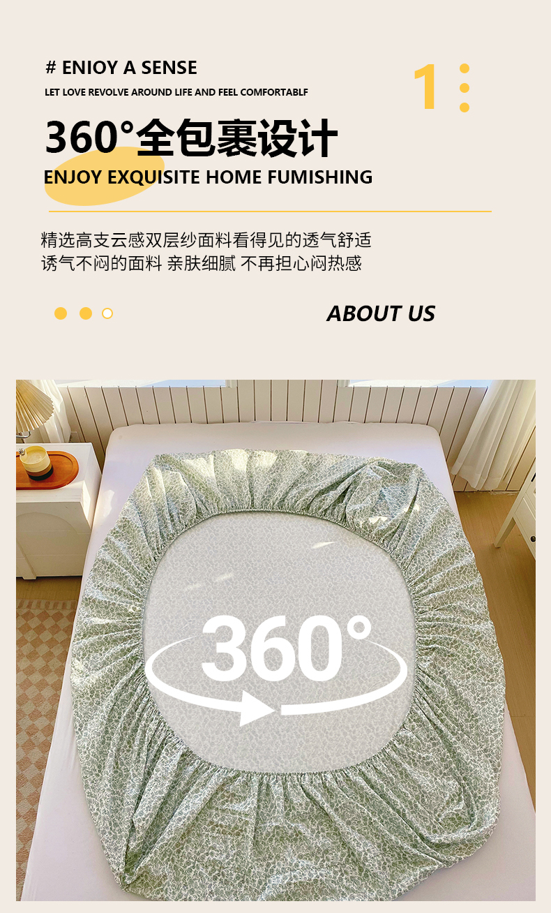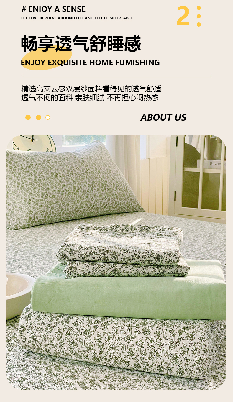 春皖家纺 2026新款A类全棉有氧双层纱印花四件套单品系列-单床笠 暮春