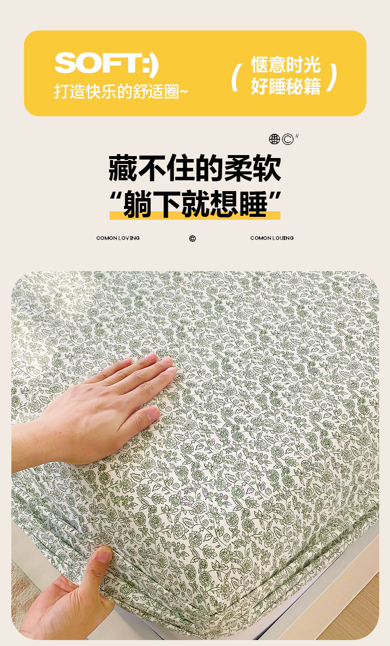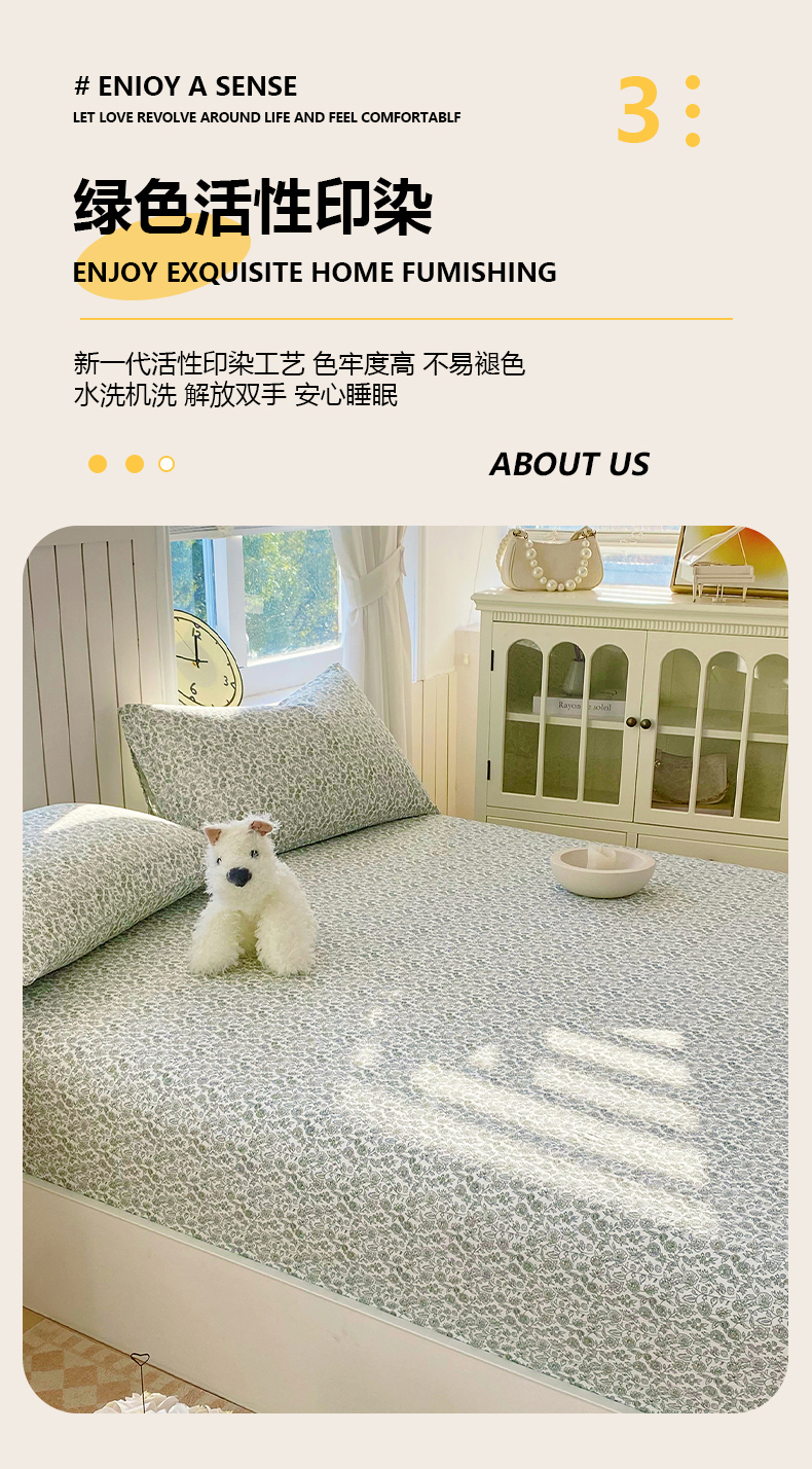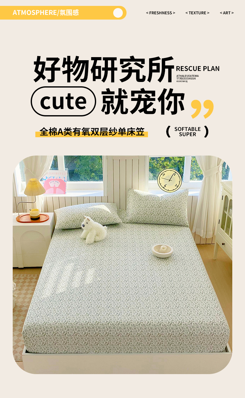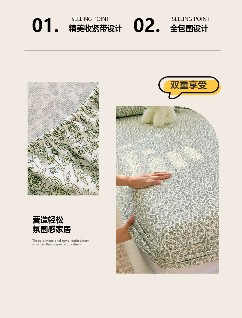 春皖家纺 2026新款A类全棉有氧双层纱印花四件套单品系列-单床笠 暮春