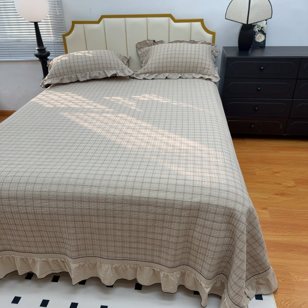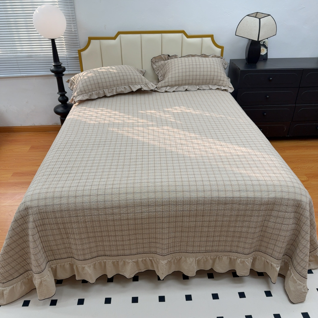 暖居 2026年新款全棉色织水洗棉高温砂洗床盖三件套四件套艾丽莎