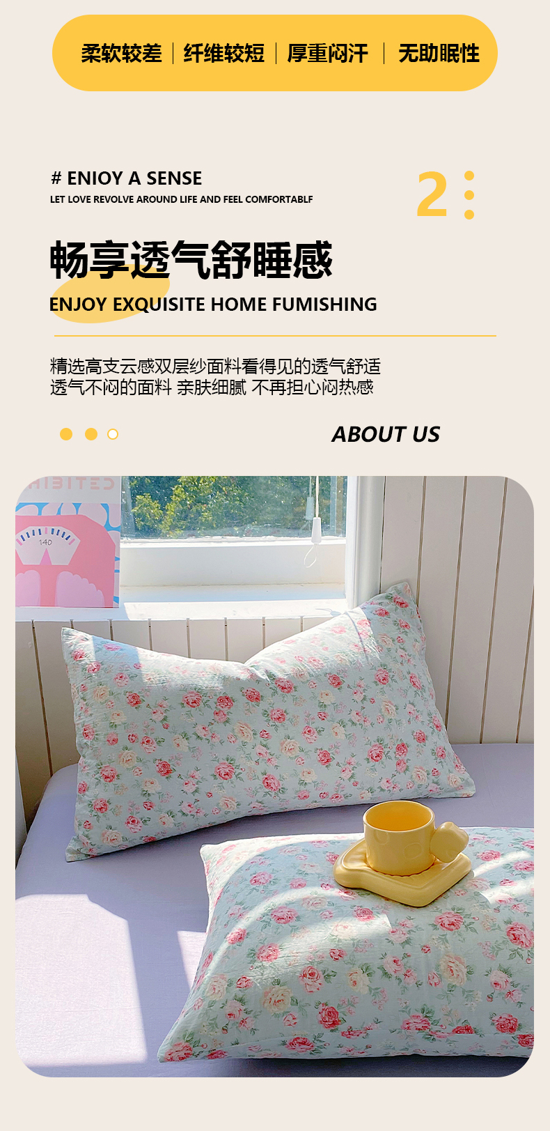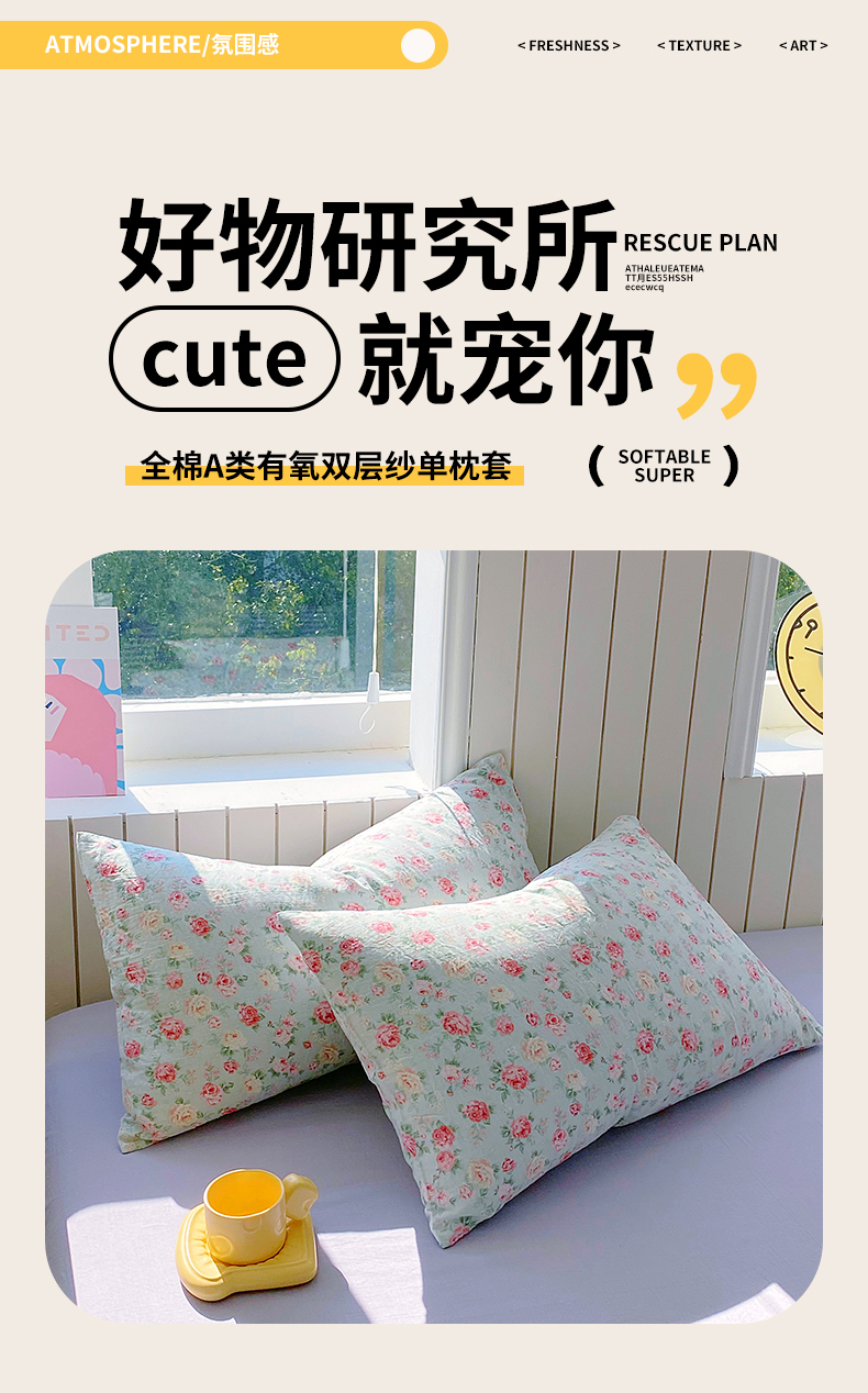 (总)春皖家纺 2026新款A类全棉有氧双层纱印花四件套单品系列-单枕套,桂语兰庭,暮春,雾染玫瑰,晴丝一缕,青茵,旧梦朝花,花织,花町,雾色里德,雾棕