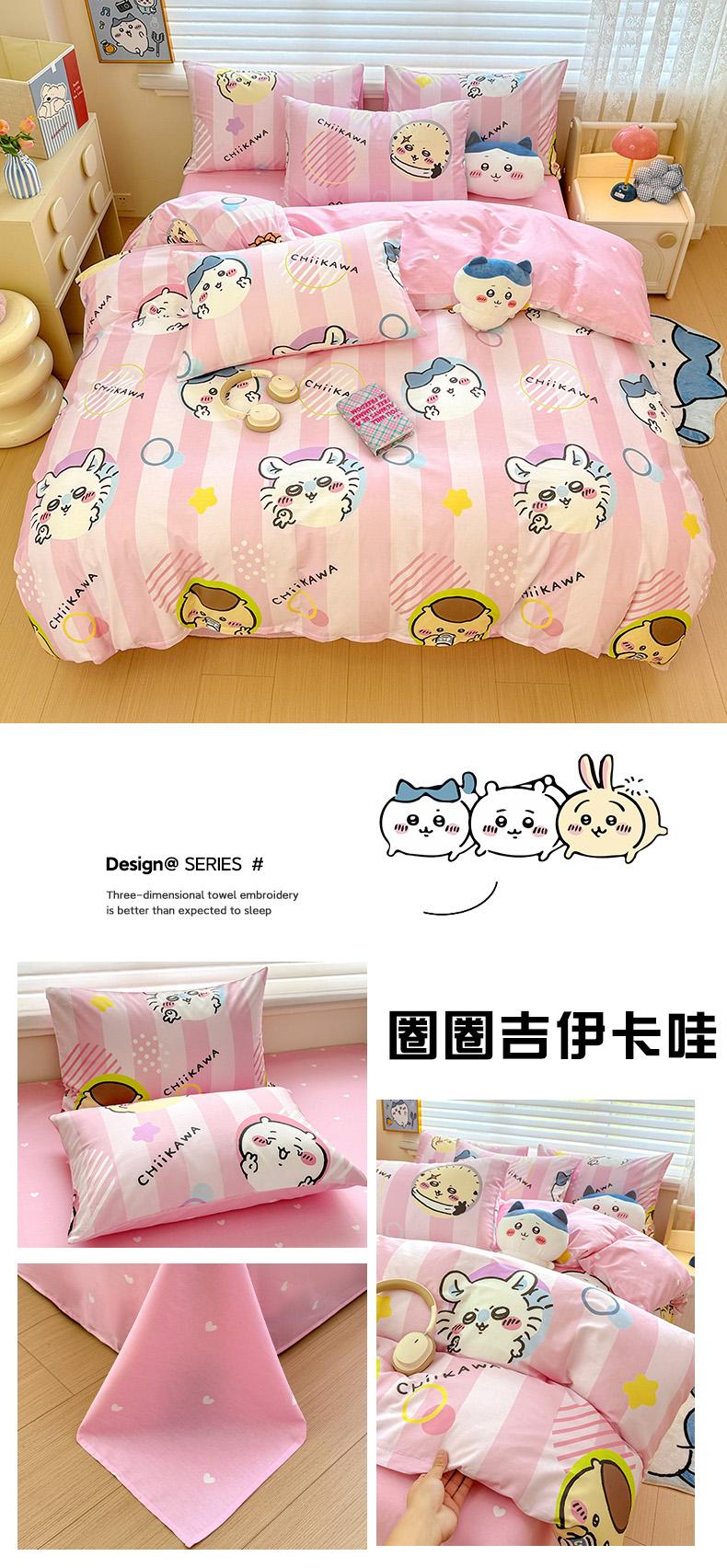 商品名称:朵希曼2026新款吉伊卡哇全棉印花四件套系列 圈圈吉伊卡哇