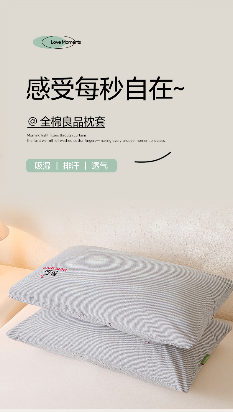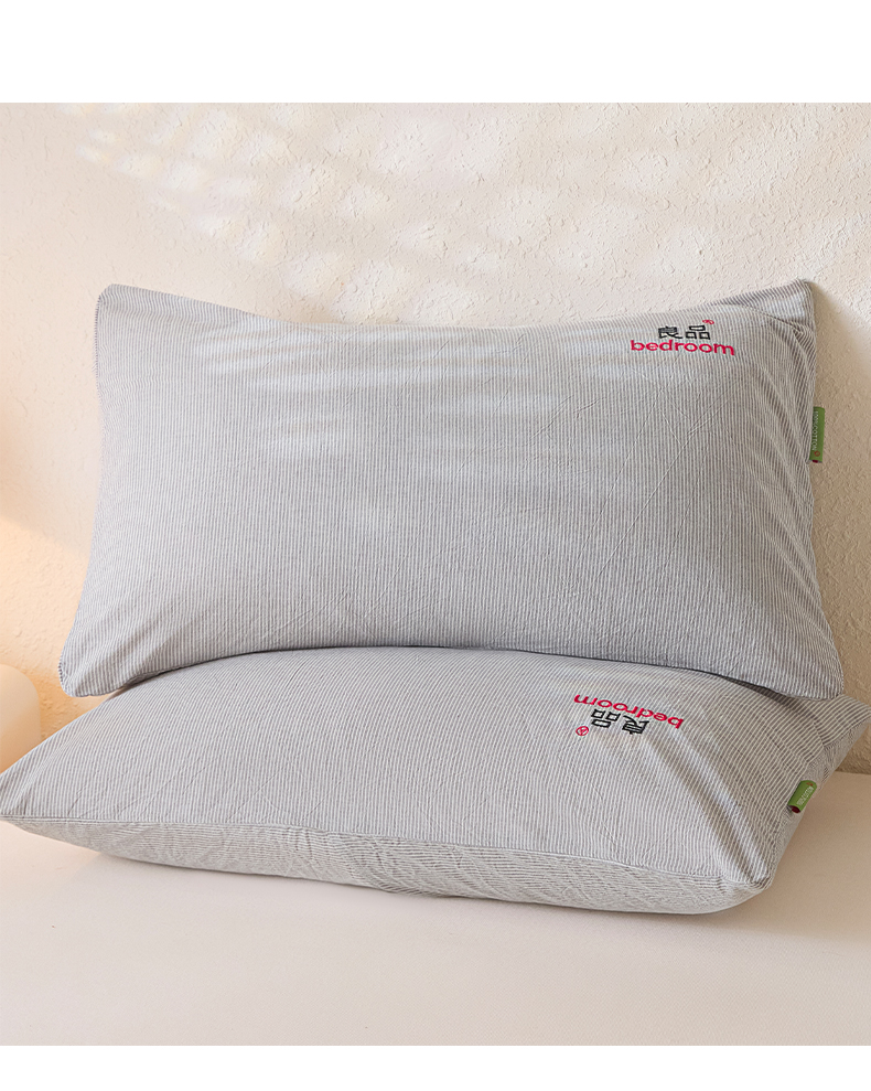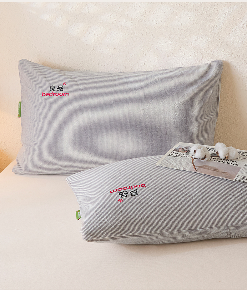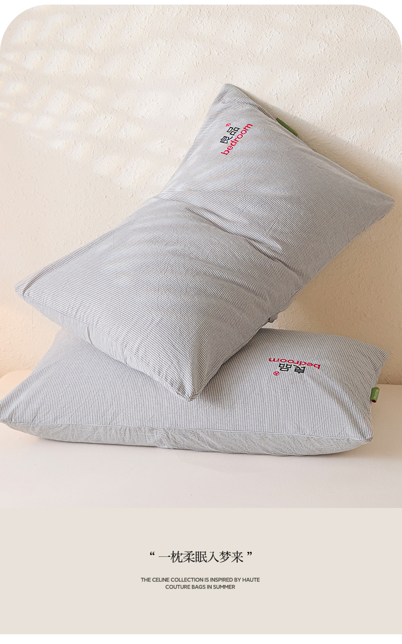 芬晴家纺 2026新款条纹纯色良品刺绣枕套 条纹-灰
