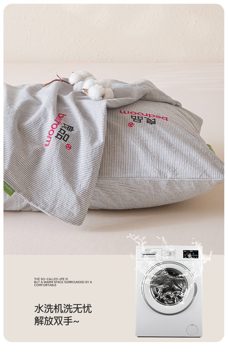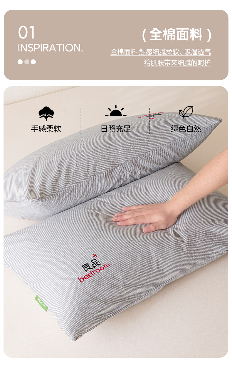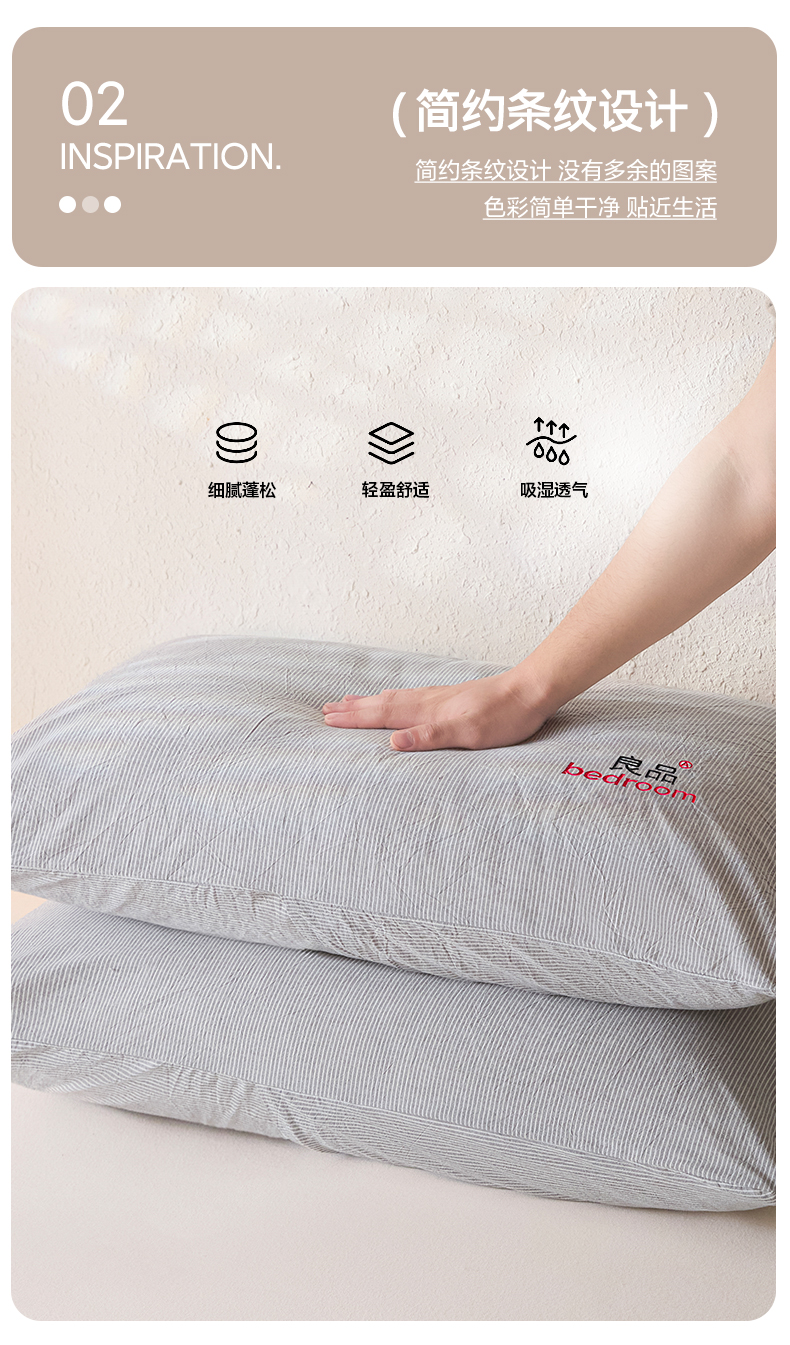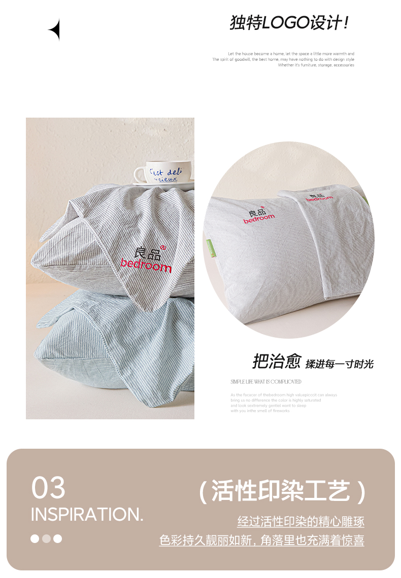 芬晴家纺 2026新款条纹纯色良品刺绣枕套 条纹-灰