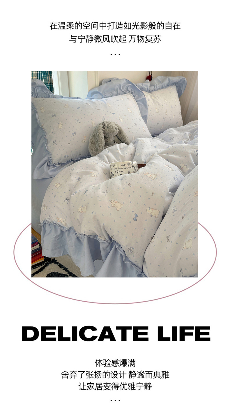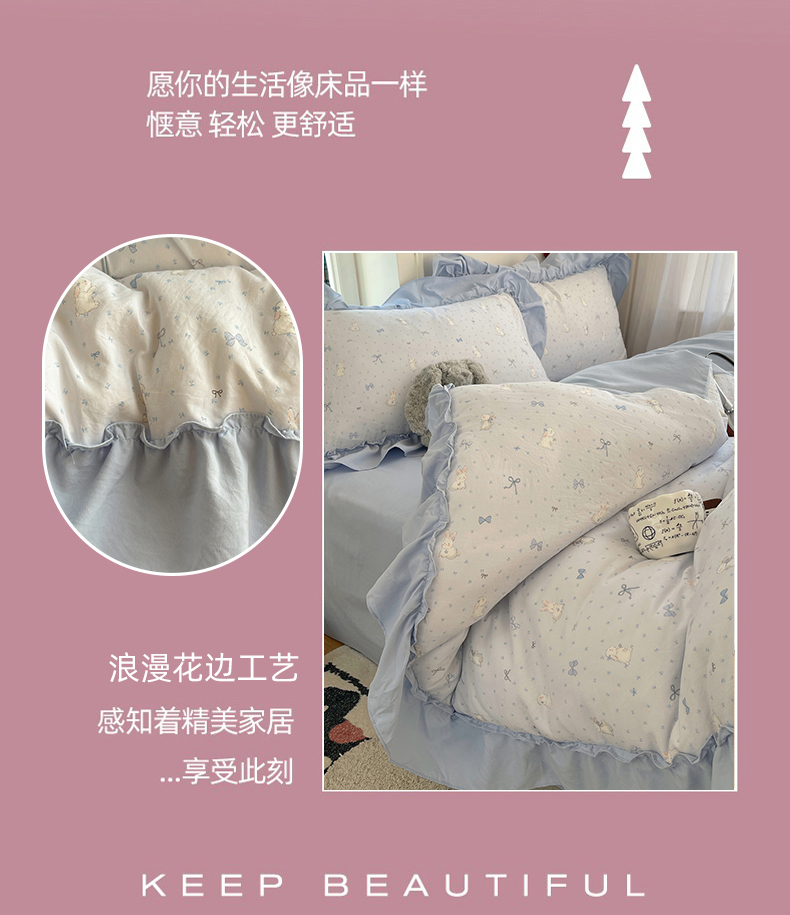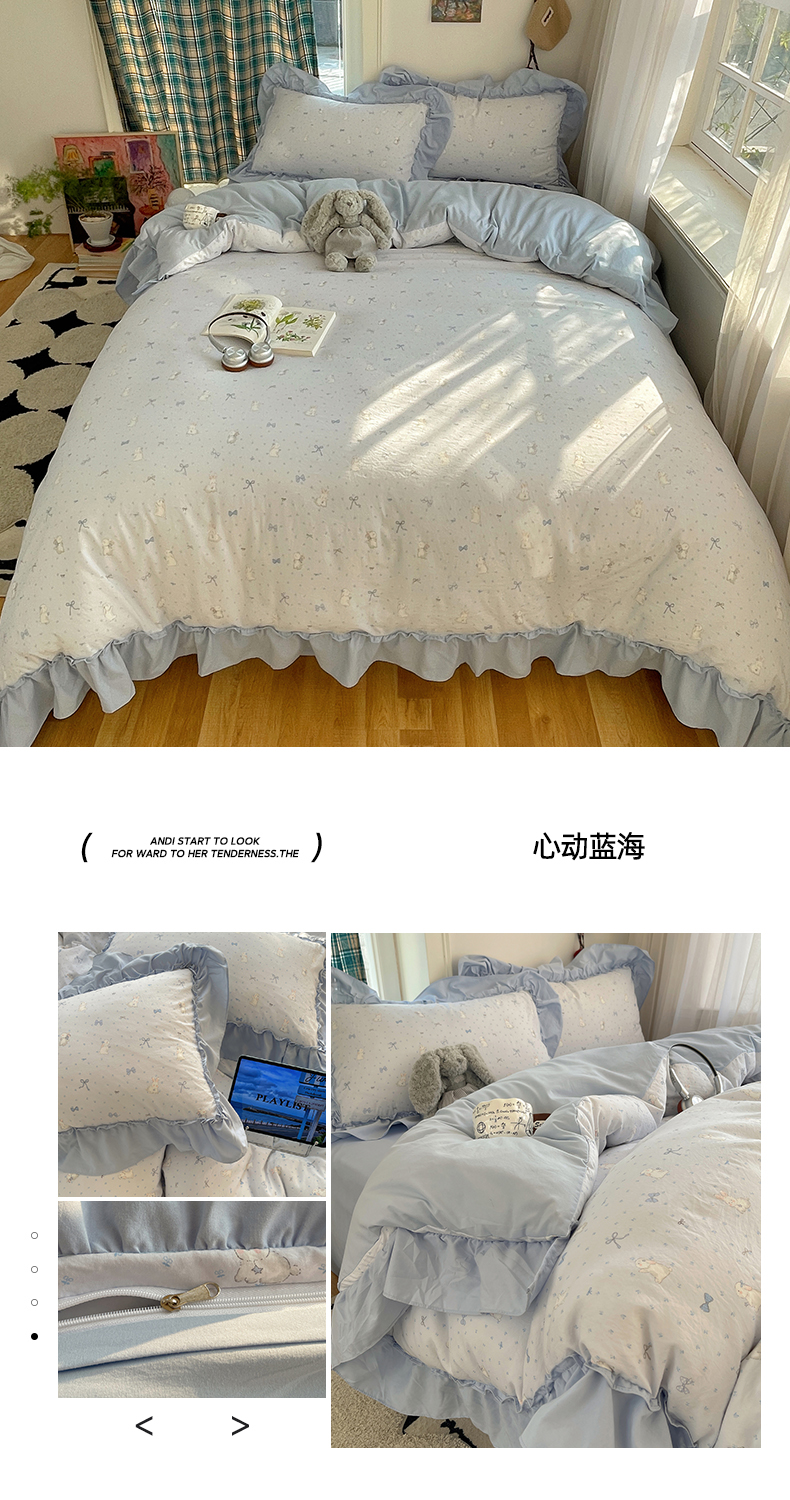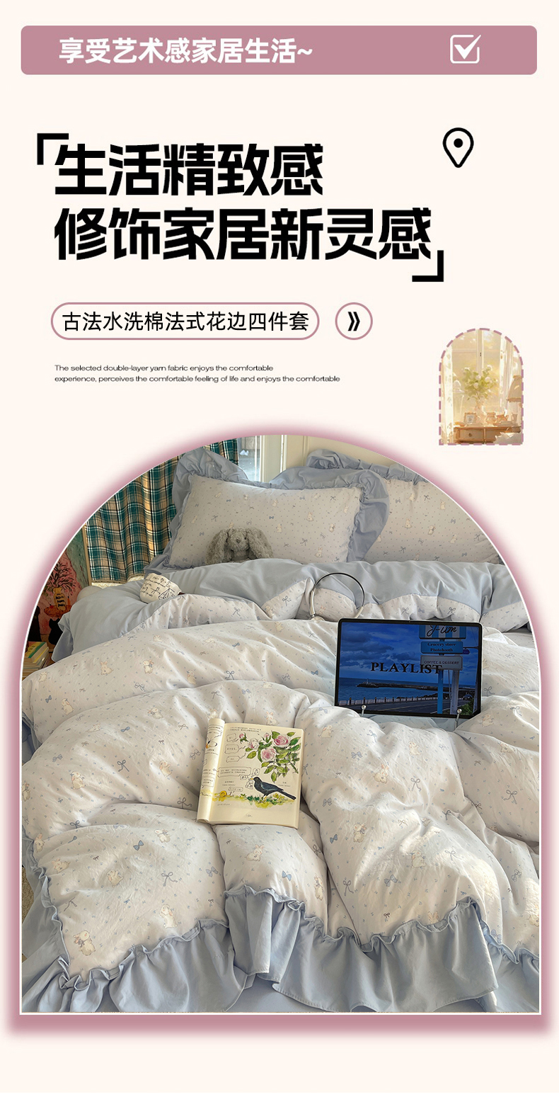 当前位置: 91家纺网 > 商品网购 > 床品套件 > 四件套 > 水洗棉四件套 > 凯洛奇 2026新款A类仿棉四件套古法水洗棉法式工艺花边套件(提供买家秀) 心动蓝海