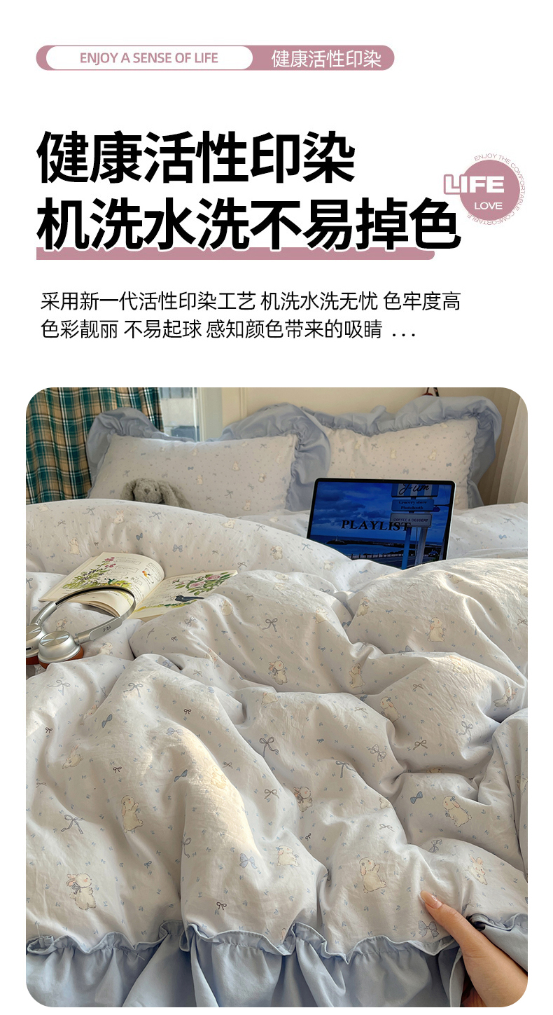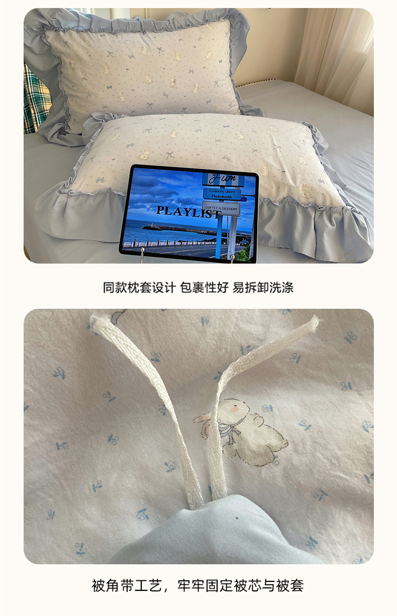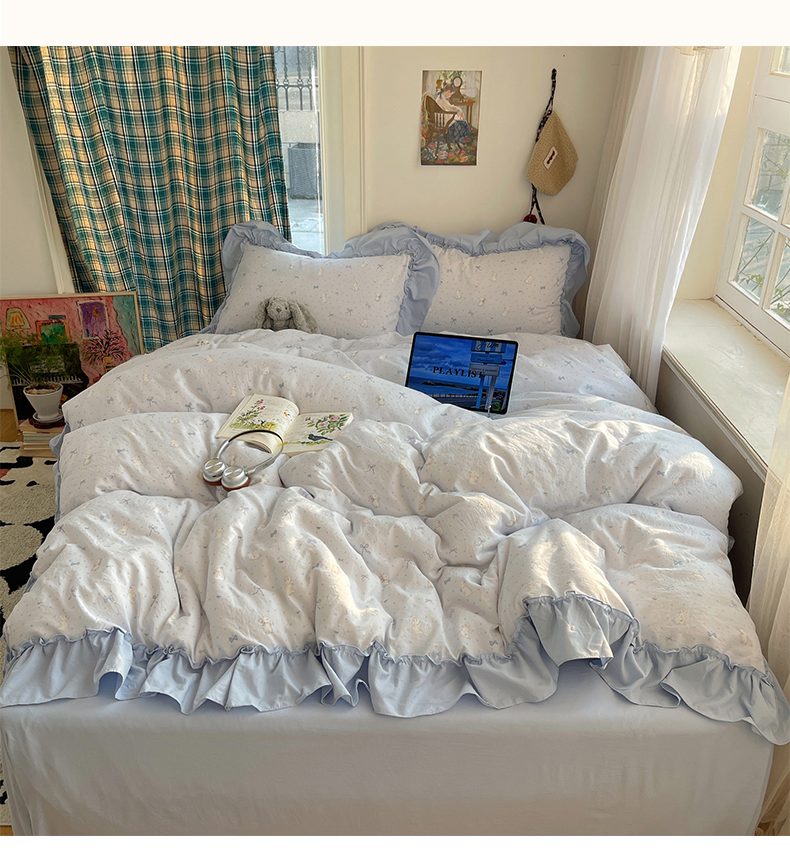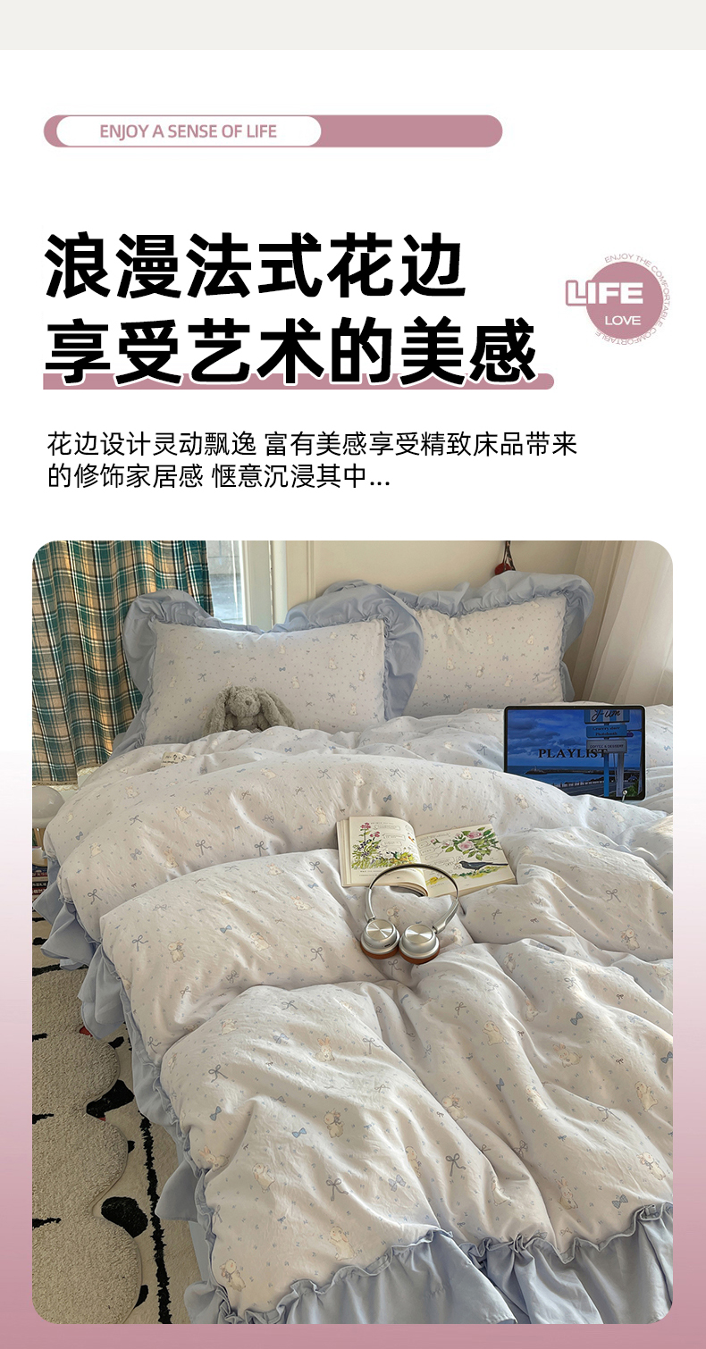 当前位置: 91家纺网 > 商品网购 > 床品套件 > 四件套 > 水洗棉四件套 > 凯洛奇 2026新款A类仿棉四件套古法水洗棉法式工艺花边套件(提供买家秀) 心动蓝海