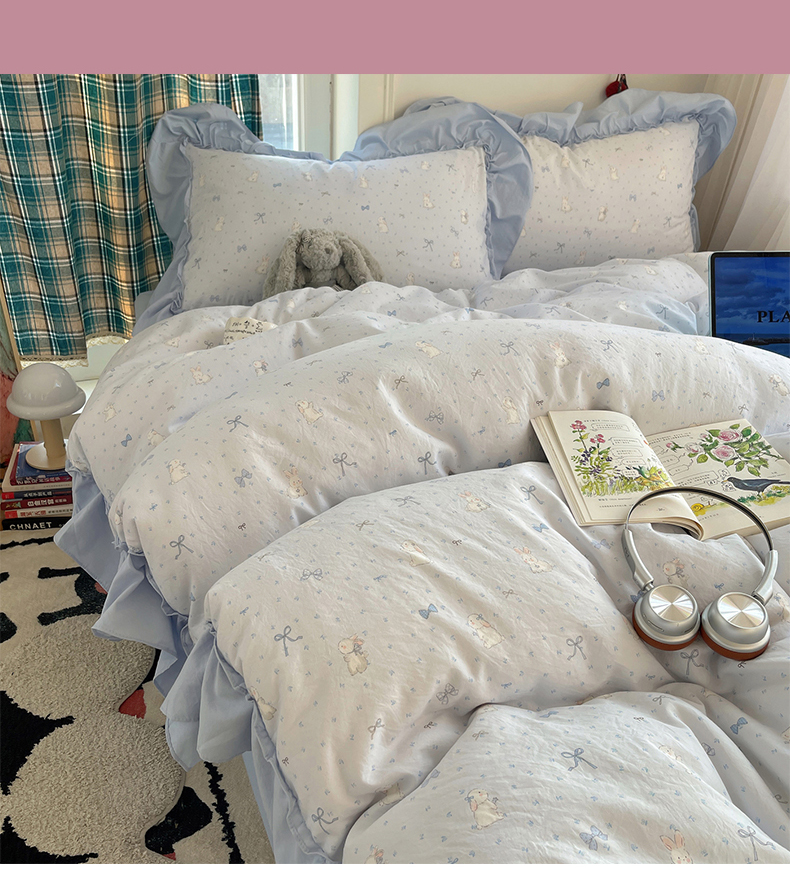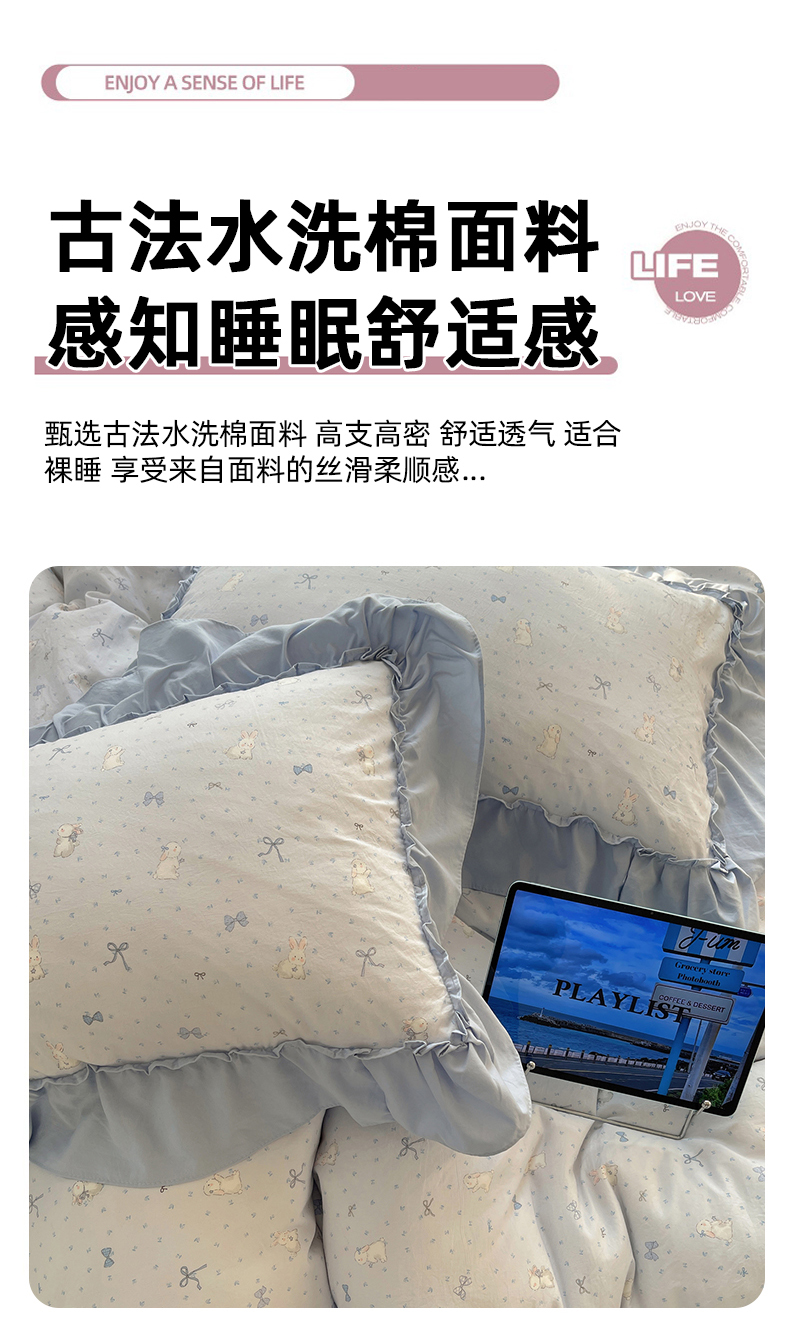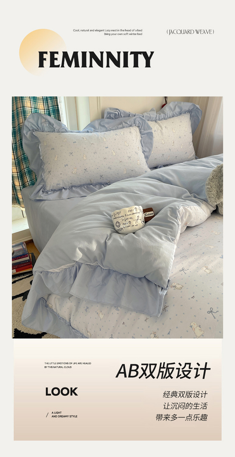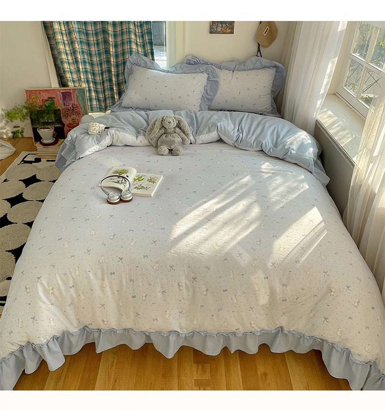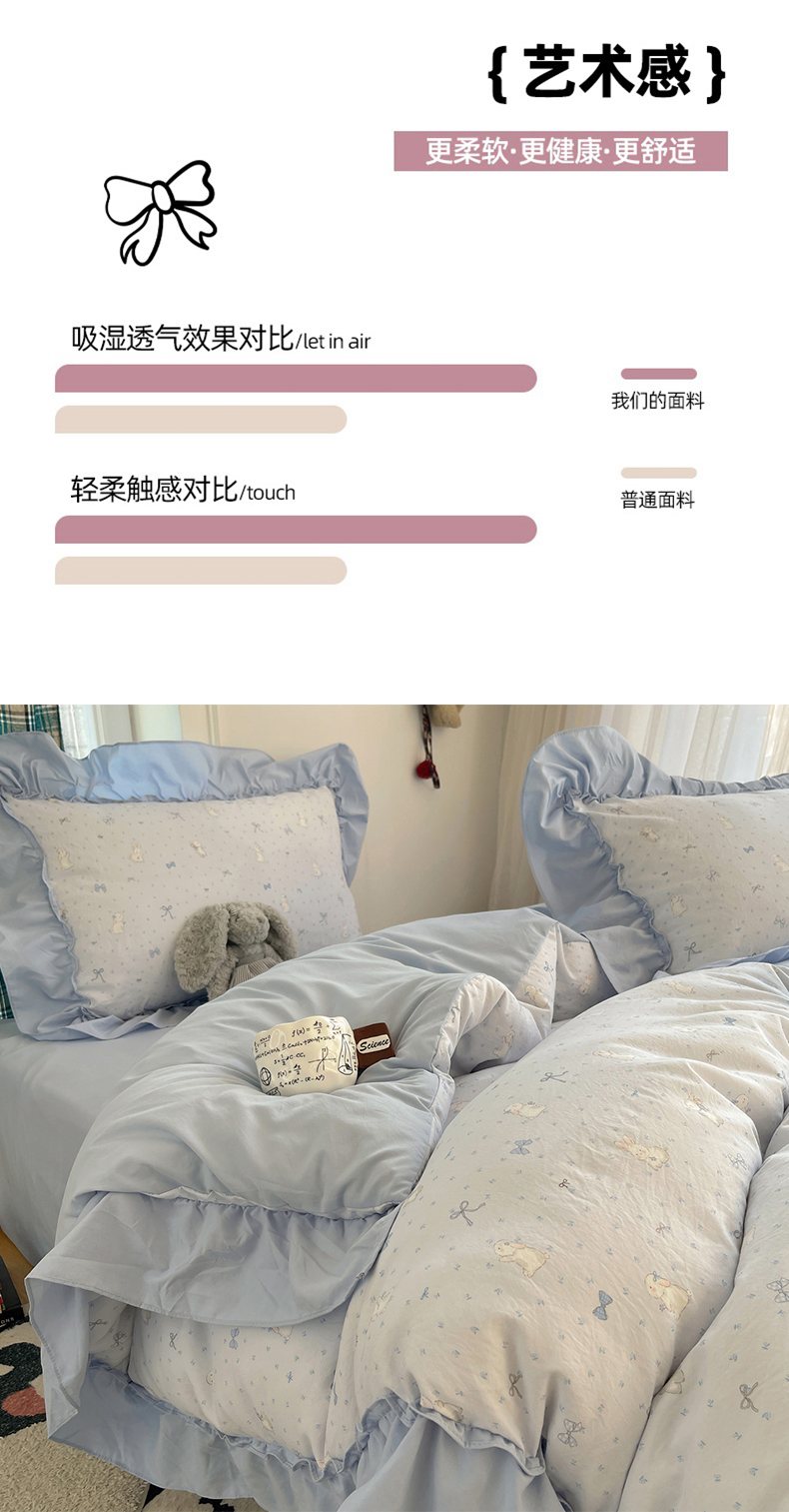 当前位置: 91家纺网 > 商品网购 > 床品套件 > 四件套 > 水洗棉四件套 > 凯洛奇 2026新款A类仿棉四件套古法水洗棉法式工艺花边套件(提供买家秀) 心动蓝海