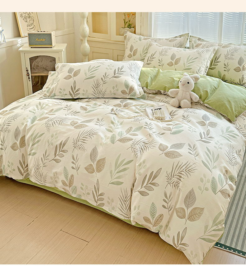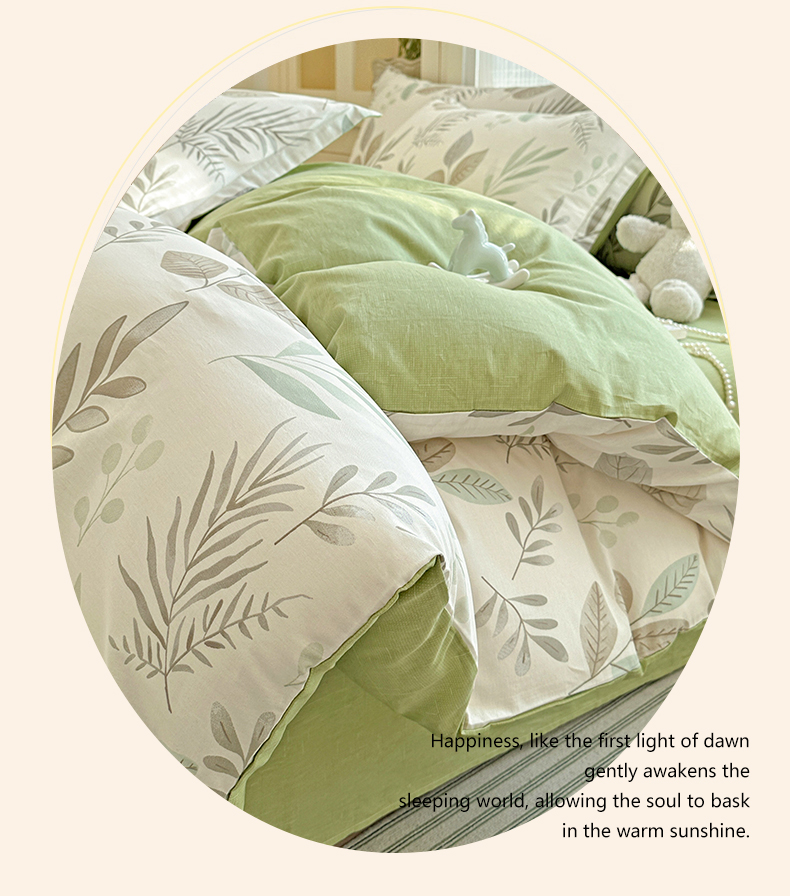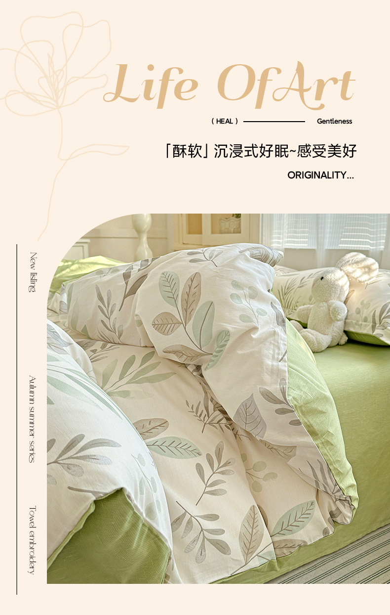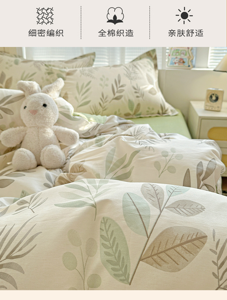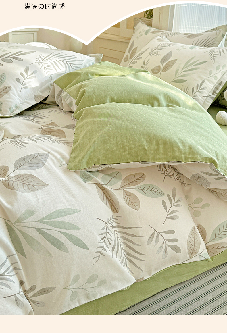 当前位置: 91家纺网 > 商品网购 > 床品套件 > 四件套 > 全棉普通四件套 > 春雨家居 2026新款全棉纯棉花ins减龄可爱小清新四件套 叶语轻喃-绿