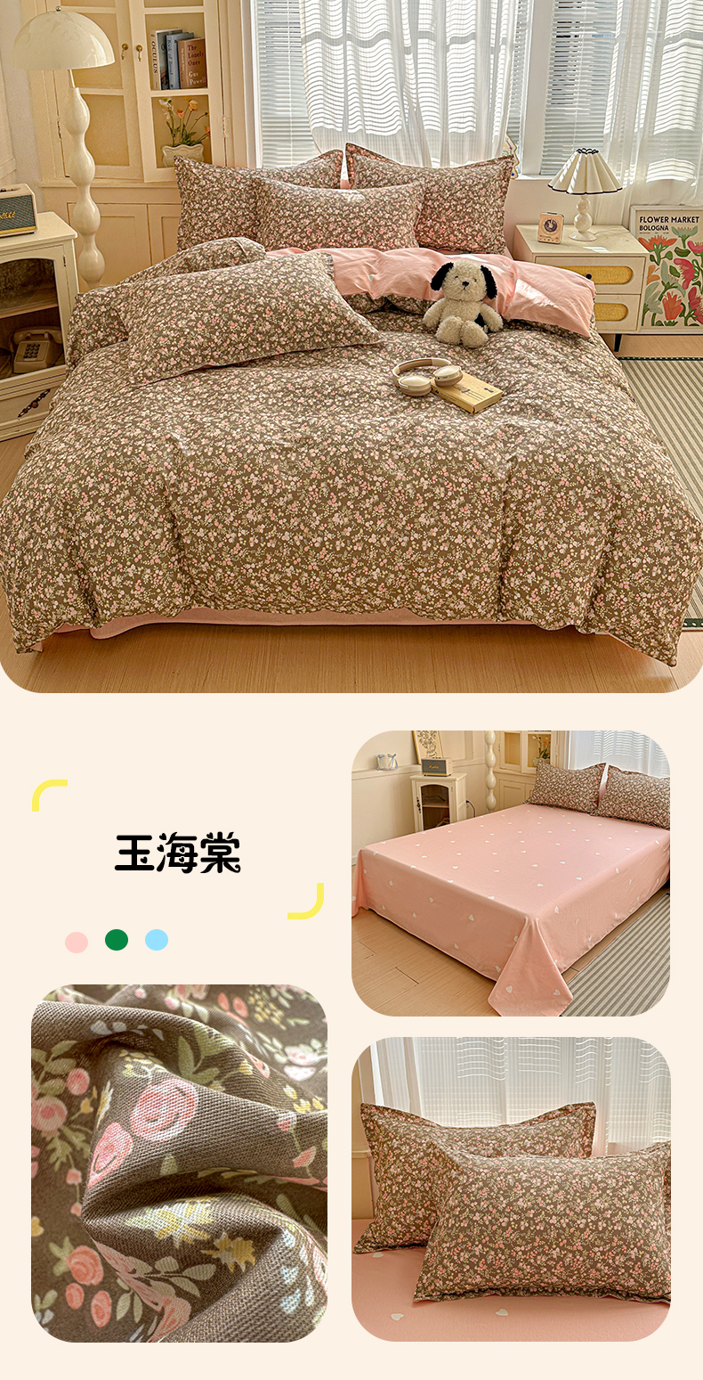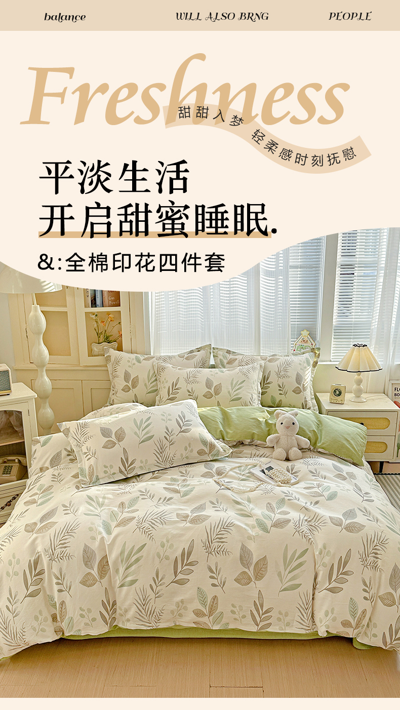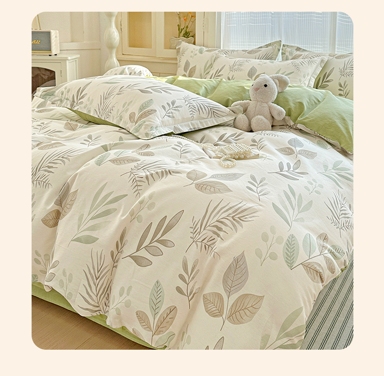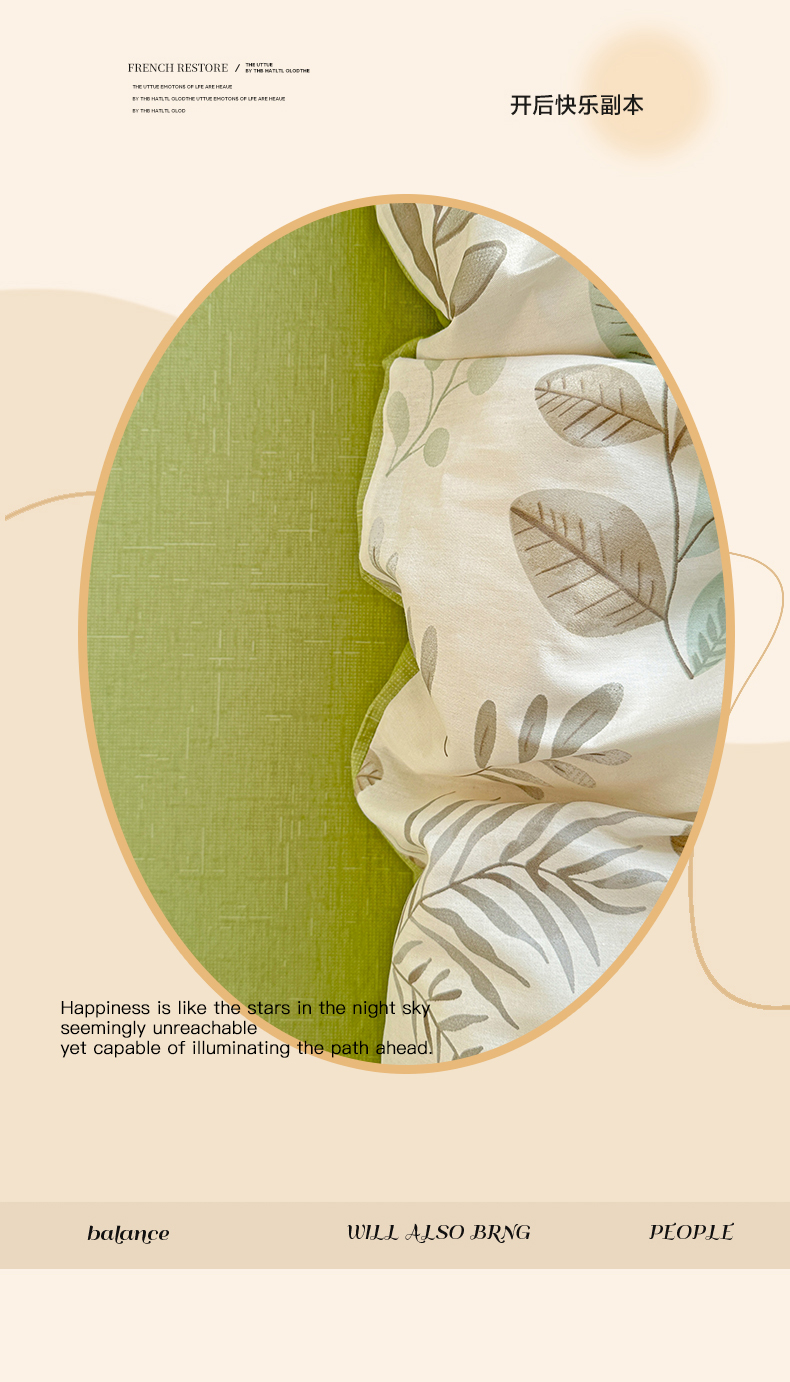 当前位置: 91家纺网 > 商品网购 > 床品套件 > 四件套 > 全棉普通四件套 > 春雨家居 2026新款全棉纯棉花ins减龄可爱小清新四件套 叶语轻喃-绿