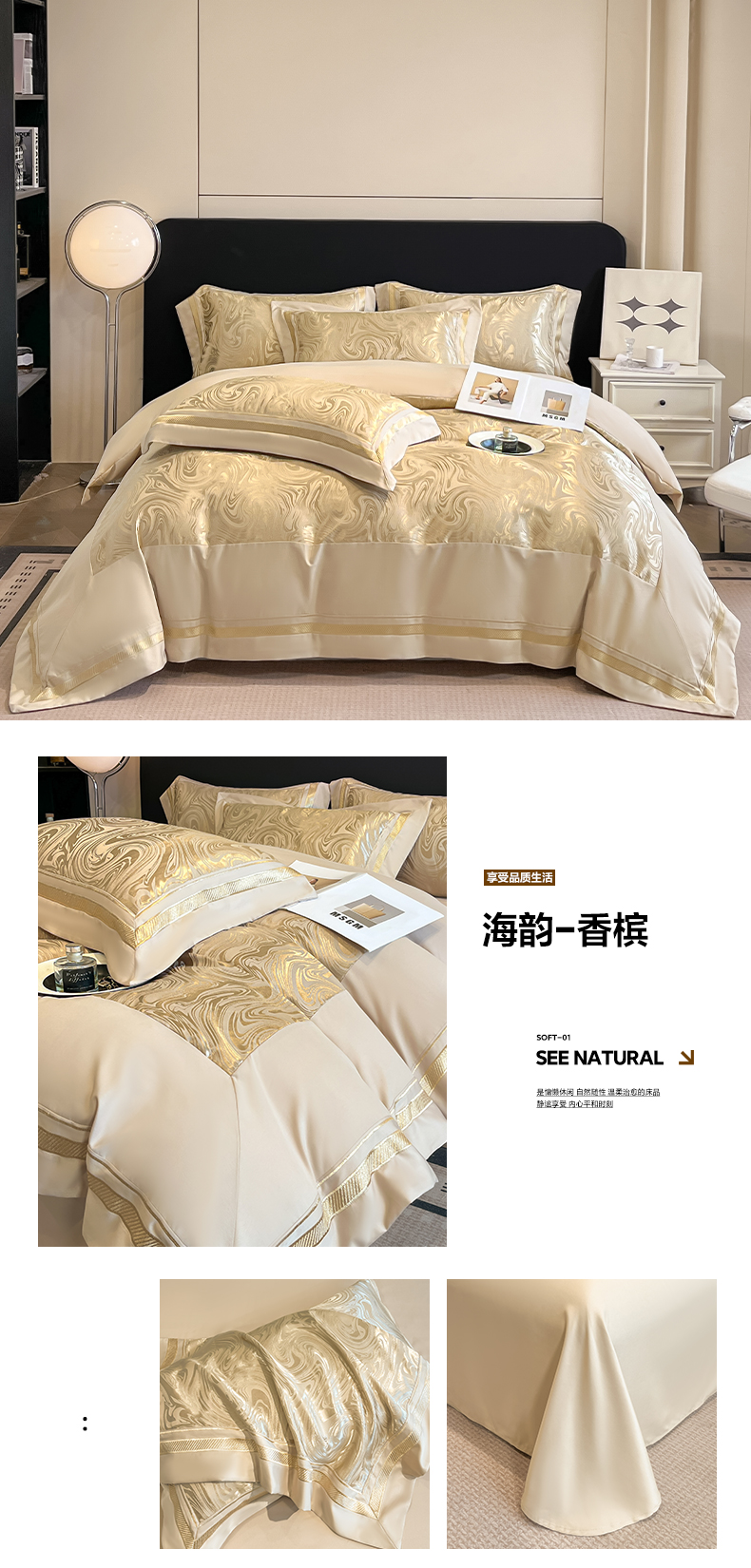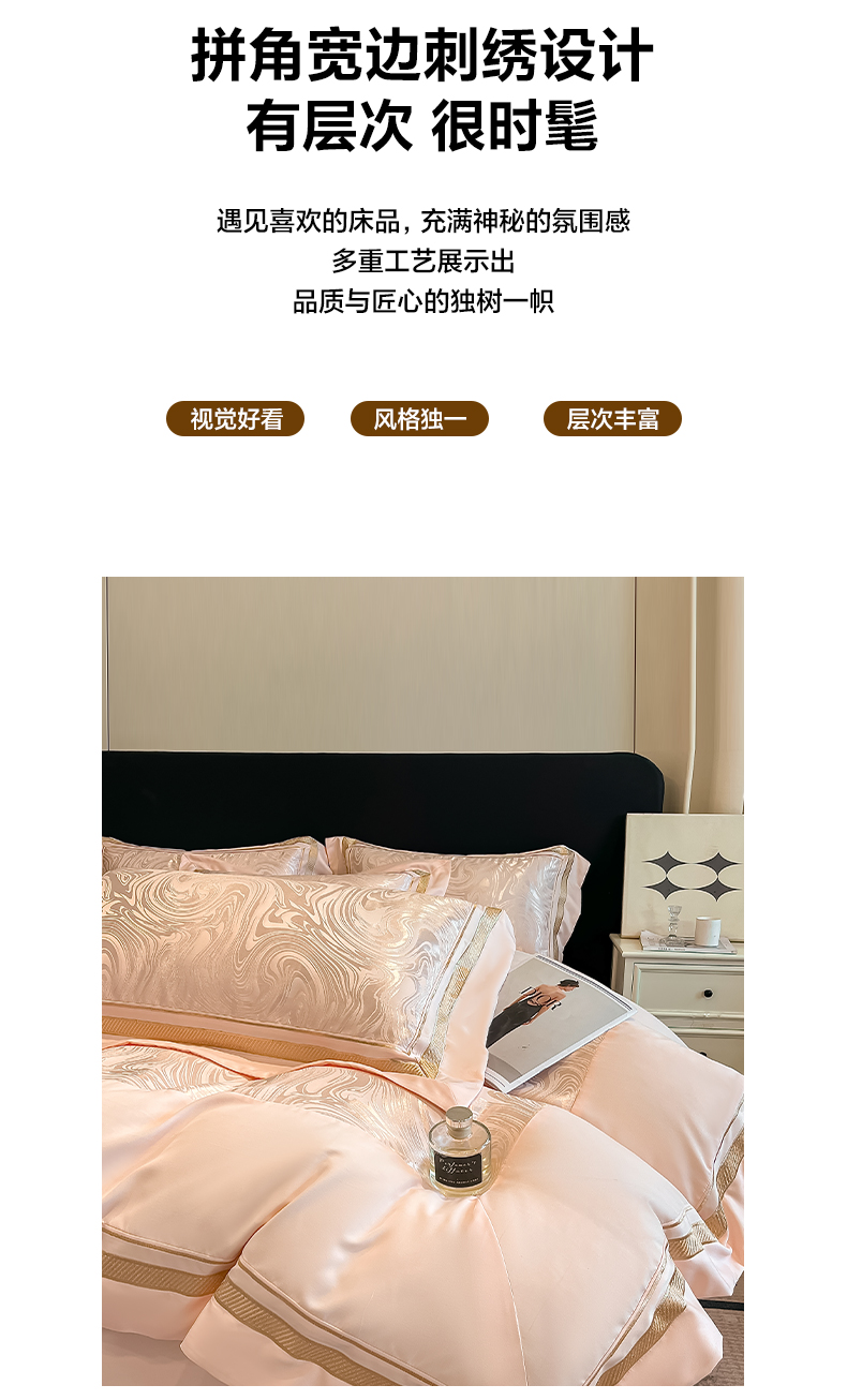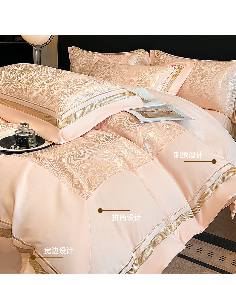当前位置: 91家纺网 > 商品网购 > 床品套件 > 四件套 > 化纤普通四件套 > (总)博纳家纺 2026新款高端色织提花拼角绣花宽边亲肤棉四件套海韵系列