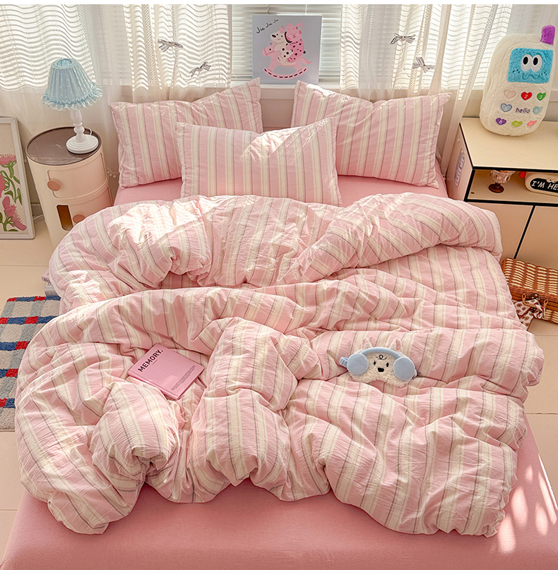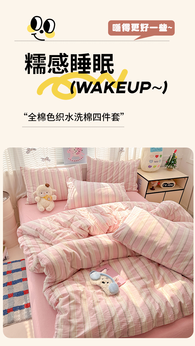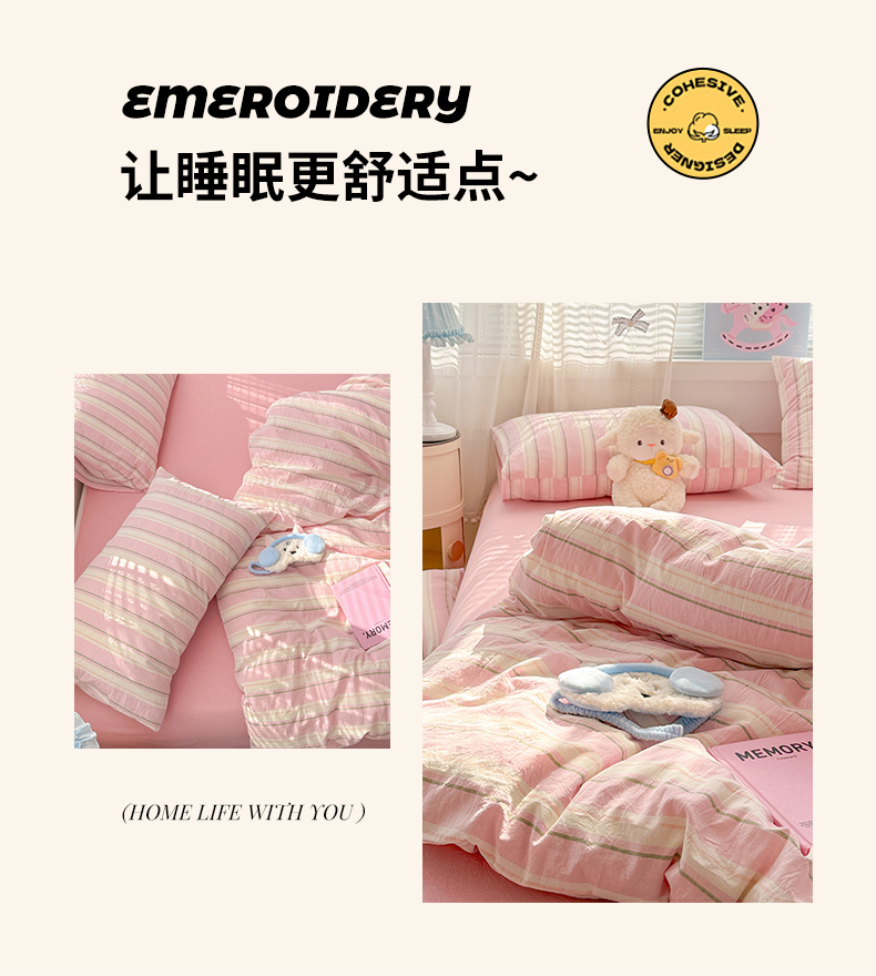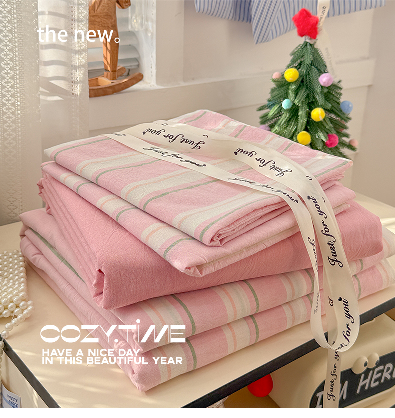 当前位置: 91家纺网 > 商品网购 > 床品套件 > 四件套 > 色织四件套 > 柠萌家居 2026新款纯棉全棉A类色织水洗棉四件套(可定制尺寸) 倾城-粉