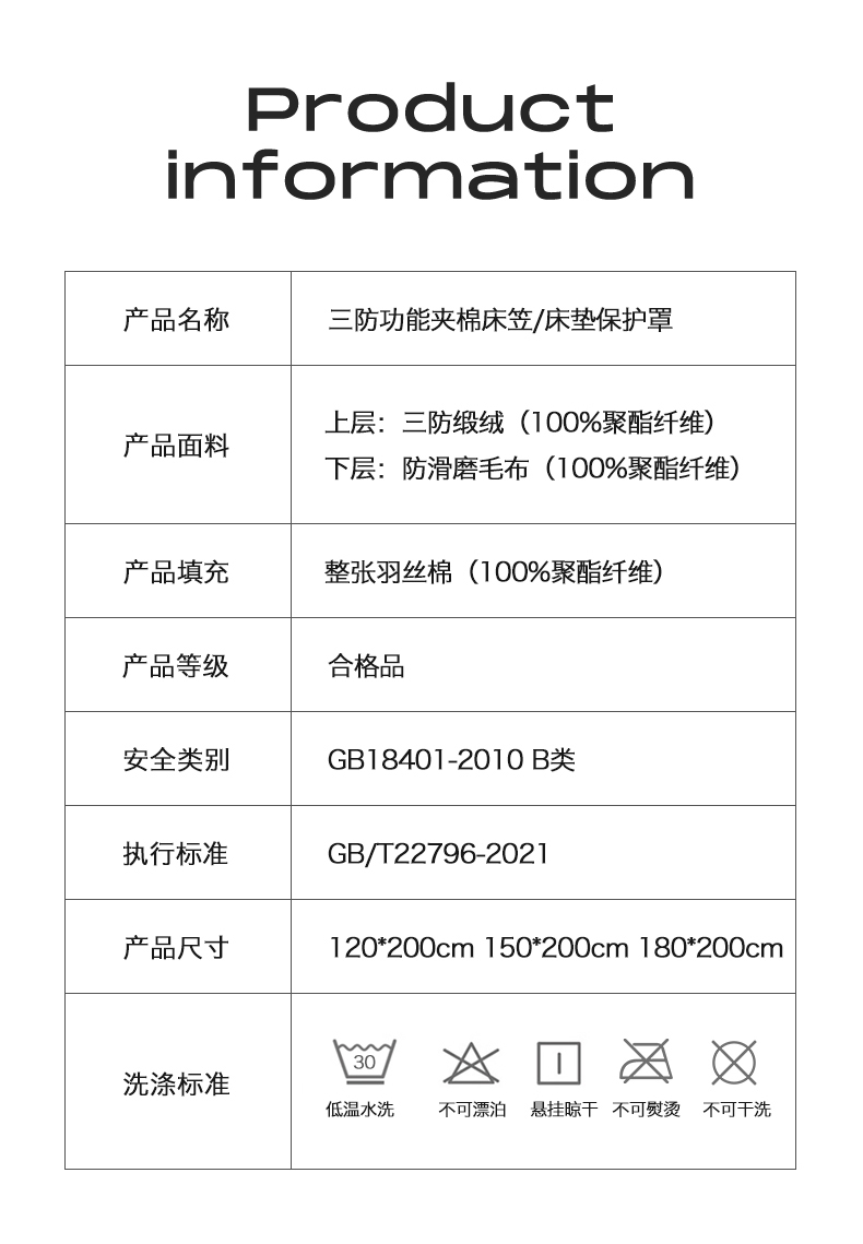 商品名称:三味舒屋 2026新款三防功能夹棉床笠床垫保护罩(严格控价:券后135/155/165) 纯净白