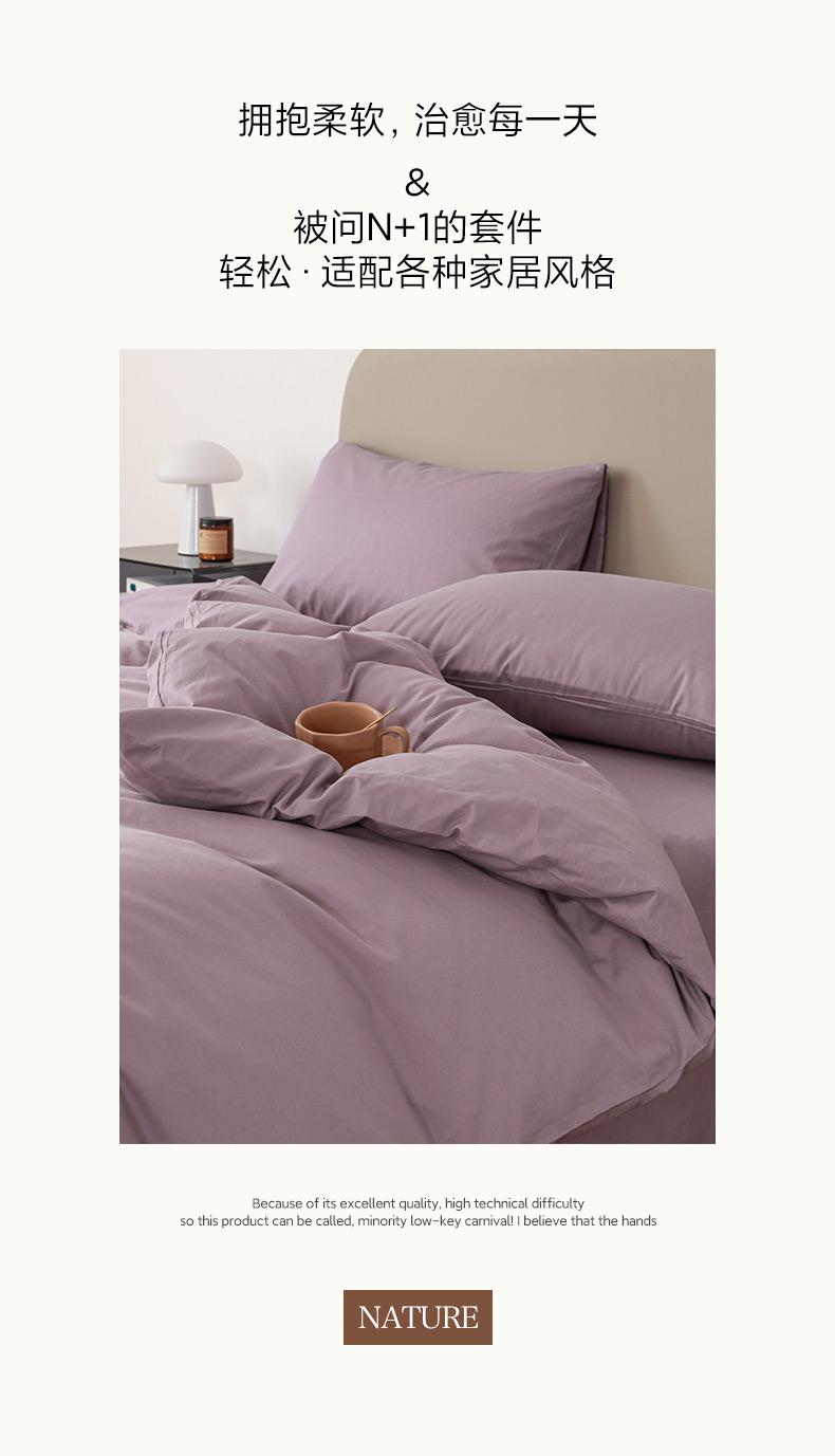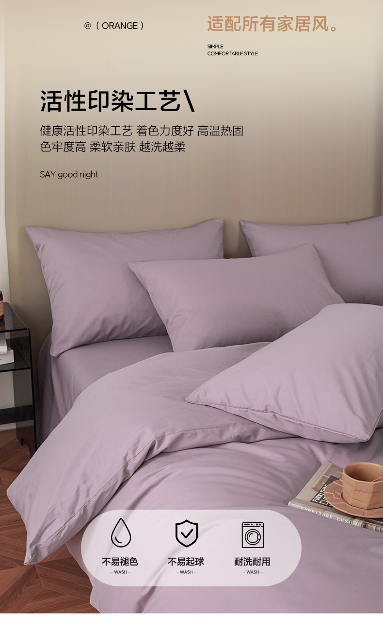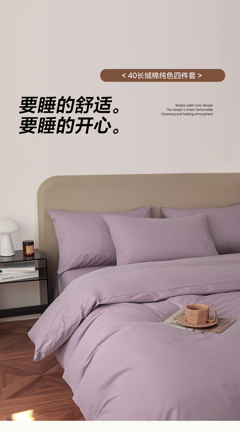 当前位置: 91家纺网 > 商品网购 > 床品套件 > 四件套 > 全棉普通四件套 > 盛馨家纺 2026新款40长绒棉ins美拉德色系纯色双拼全棉单品四件套单人纯色三件套 茄花紫