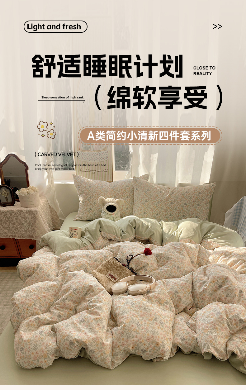 当前位置: 91家纺网 > 商品网购 > 床品套件 > 四件套 > 水洗棉四件套 > 沐芷 2026 【提供买家秀】古法水洗仿棉A类四件套床上用品三件套被套被罩床笠款---第一波 花屿庄园