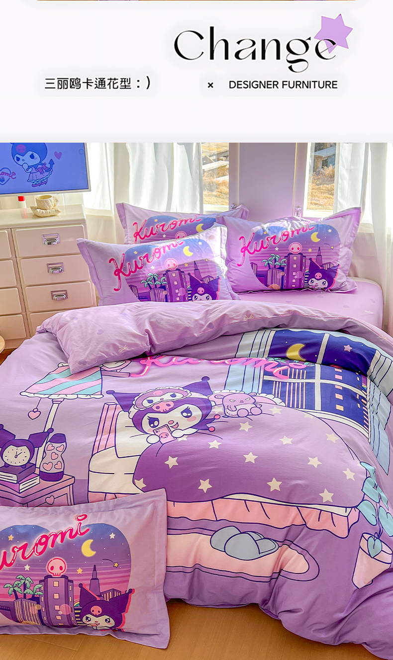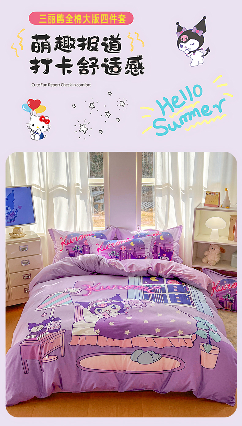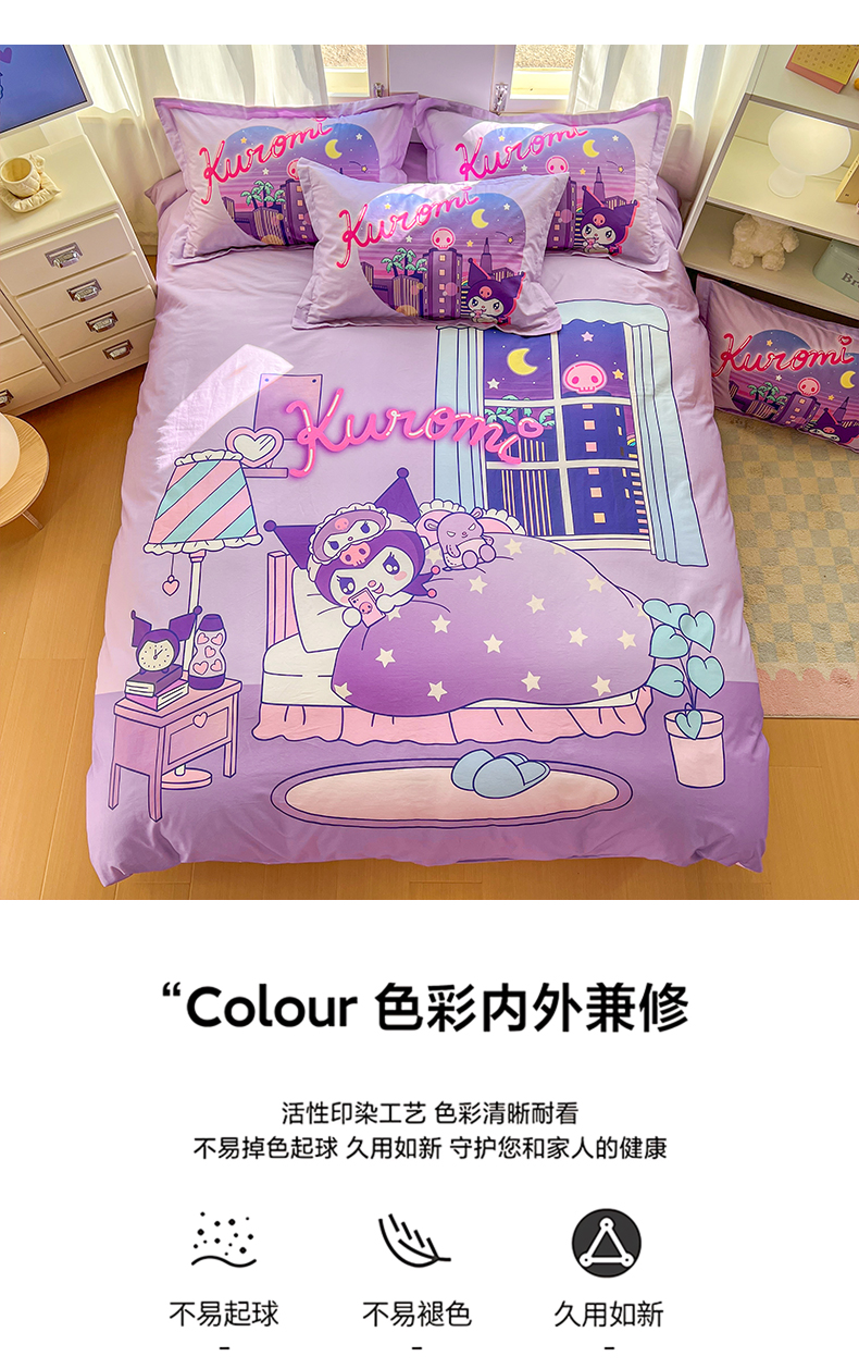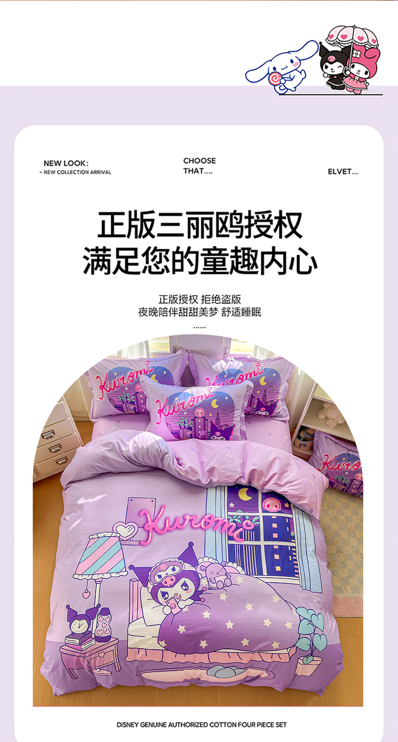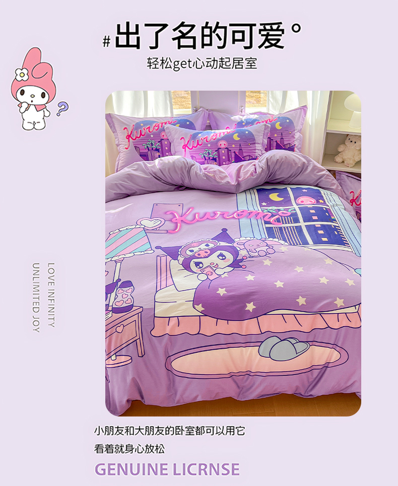 当前位置: 91家纺网 > 商品网购 > 床品套件 > 四件套 > 全棉普通四件套 > 浩诚 2026新款专版三丽鸥hellokitty库洛米正版授权大版全棉纯棉四件套 晚安库洛米