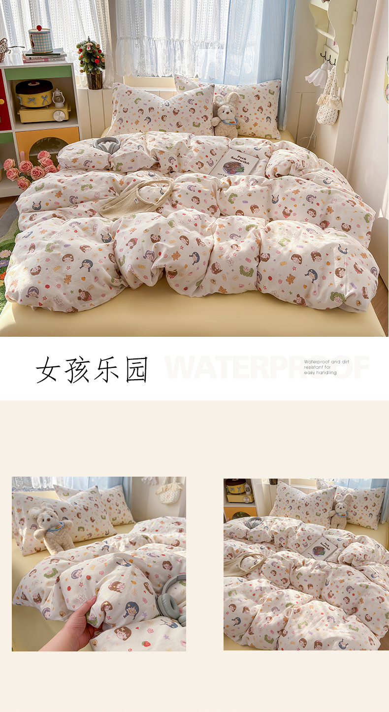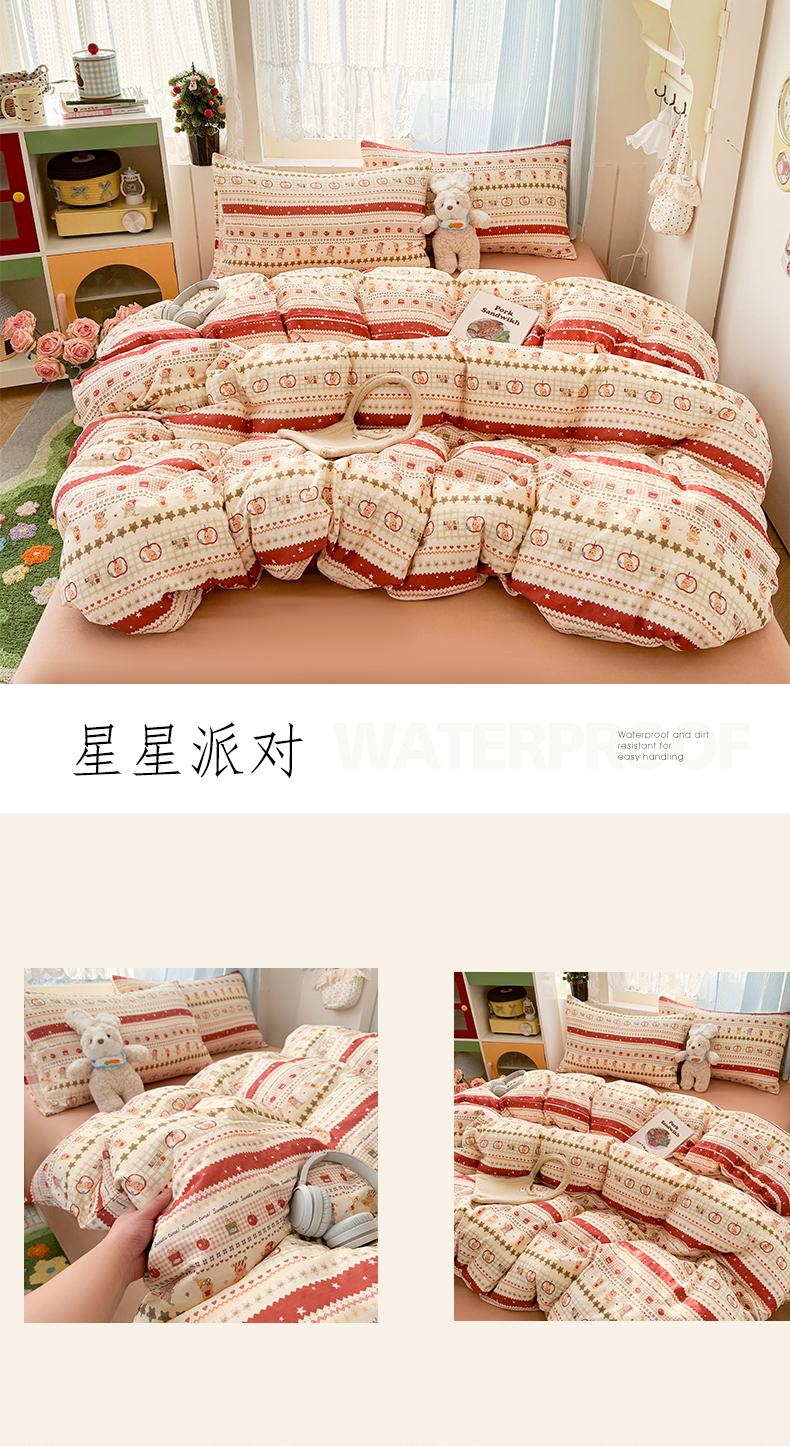 (总)爱思佳 2026新款双层纱印+毛巾绣系列四件套,背带兔,可爱女孩,旅行鸭,萝卜兔,绅士狗,西瓜女孩,向阳花,幸运熊,熊猫团子,元气满满,月亮熊,happy兔-肉桂玉