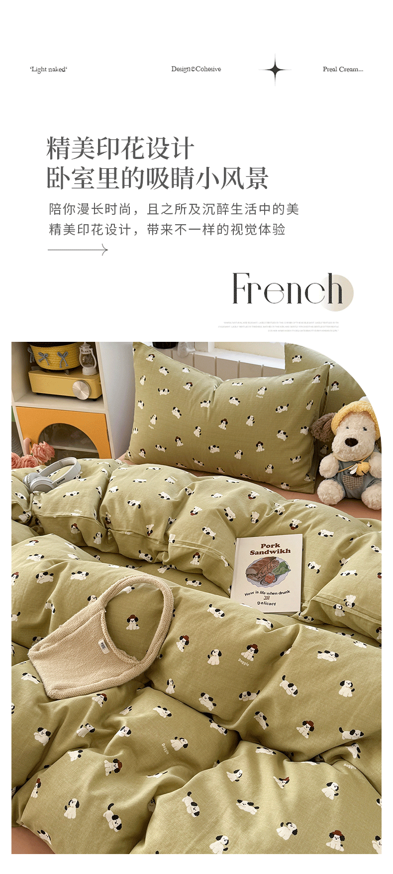 当前位置: 91家纺网 > 商品网购 > 床品套件 > 四件套 > 全棉普通四件套 > 爱思佳 2026新款全棉纯棉双层纱基款系列四件套 萌宠