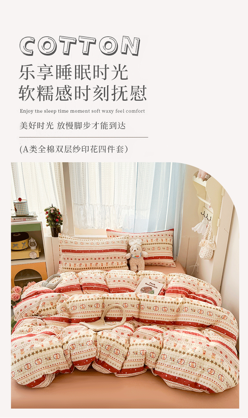 当前位置: 91家纺网 > 商品网购 > 床品套件 > 四件套 > 全棉普通四件套 > 爱思佳 2026新款全棉纯棉双层纱基款系列四件套 星星派对