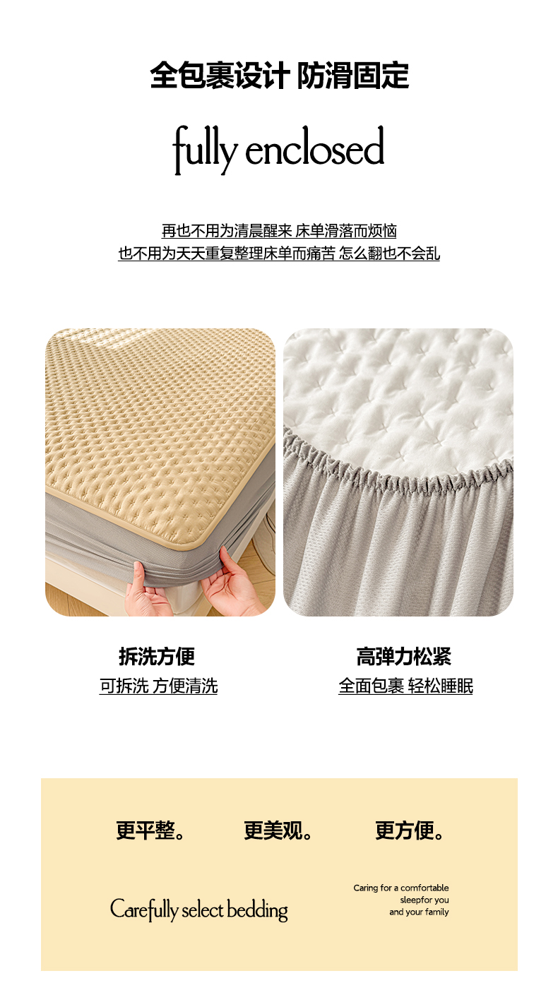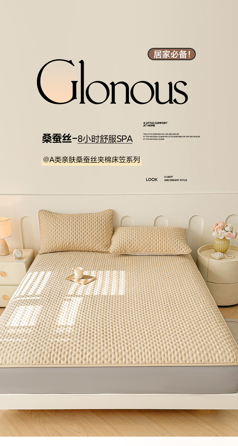 商品名称:予梦家纺 2026新款蚕丝夹棉床笠 布兰德-卡其