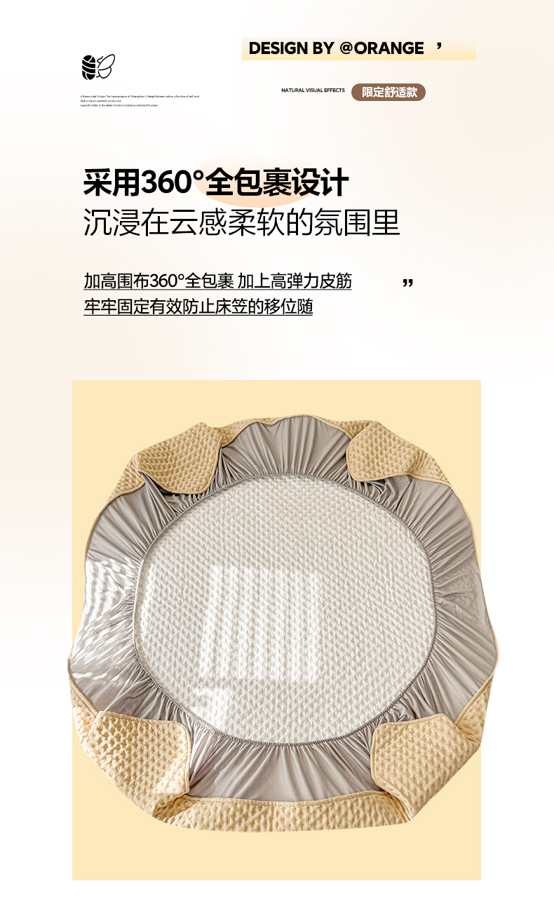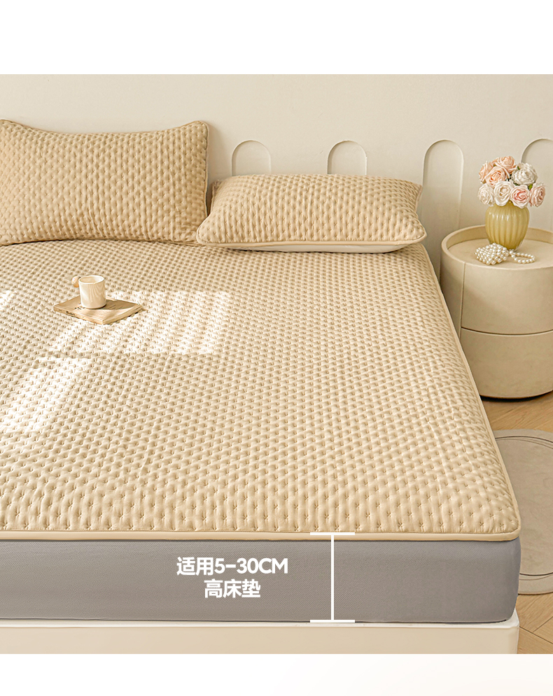 予梦家纺 2026新款蚕丝夹棉床笠 布兰德-卡其
