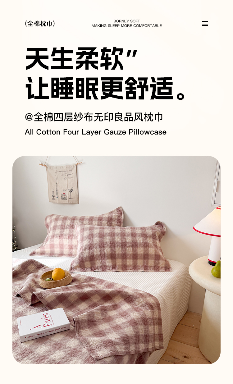 (总)沐瑟家纺 2026新款纯棉四层纱布枕巾-华夫生活