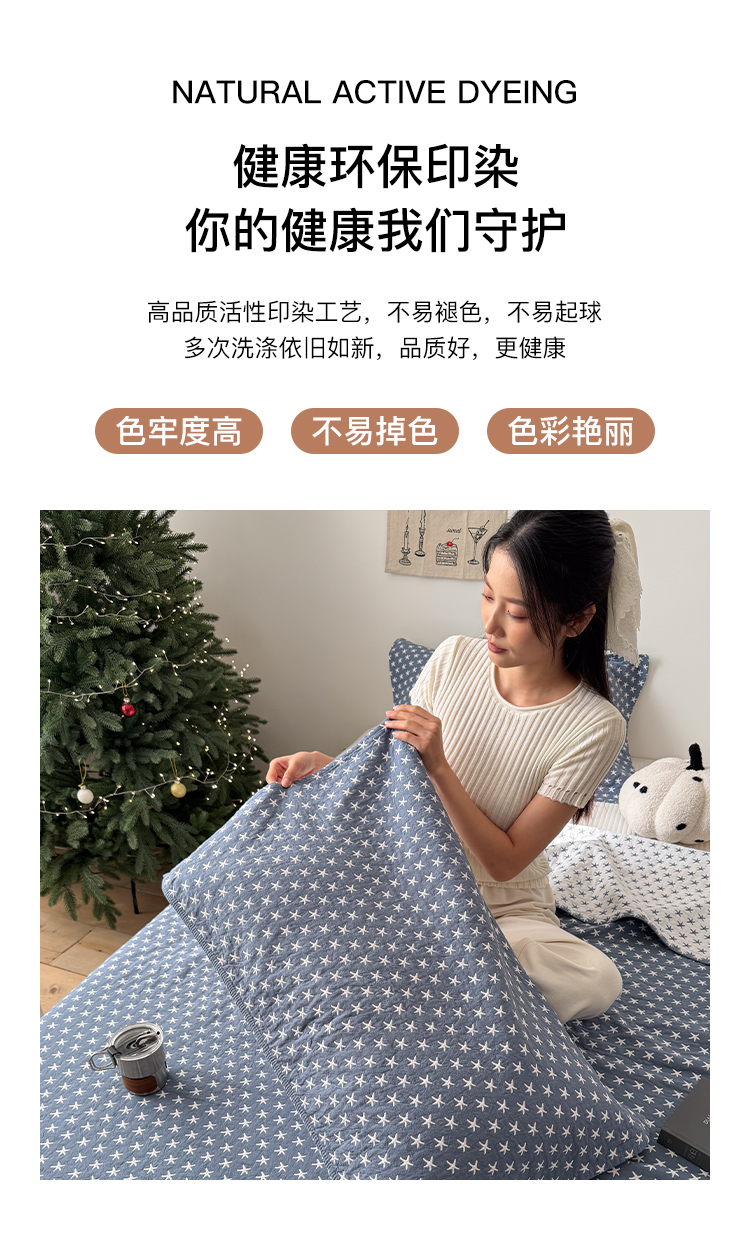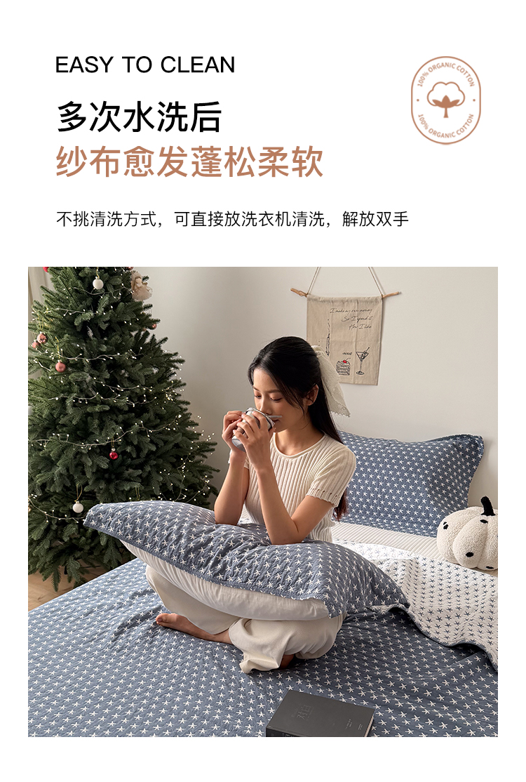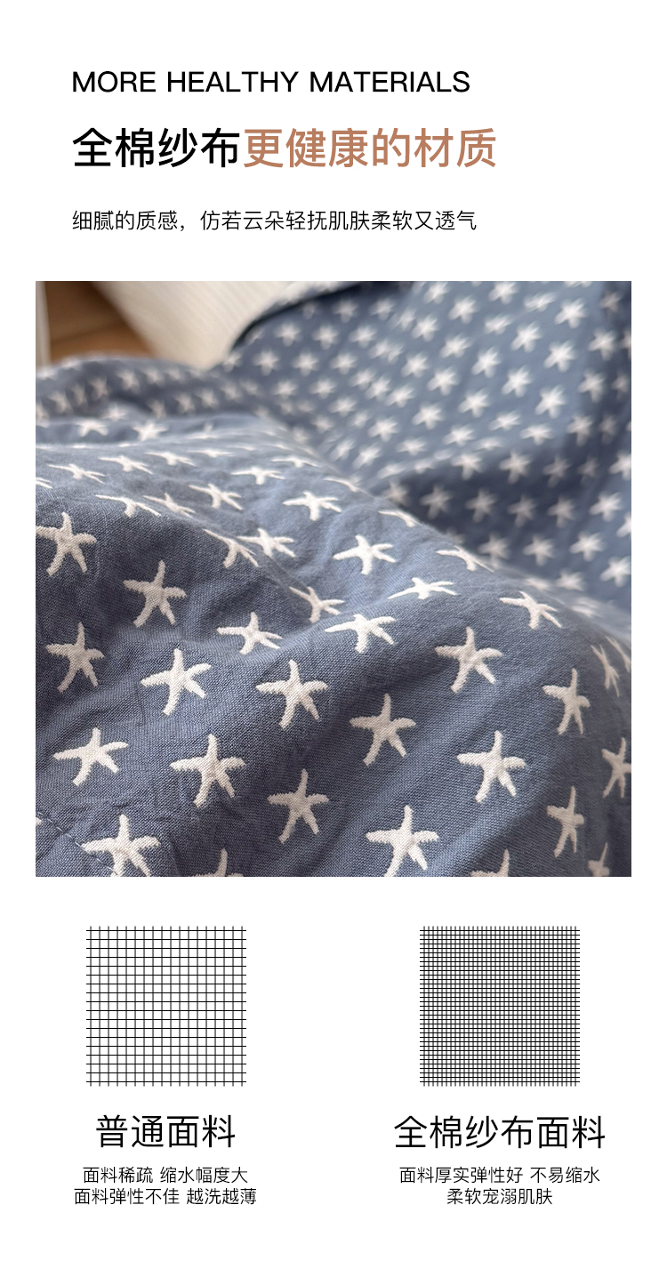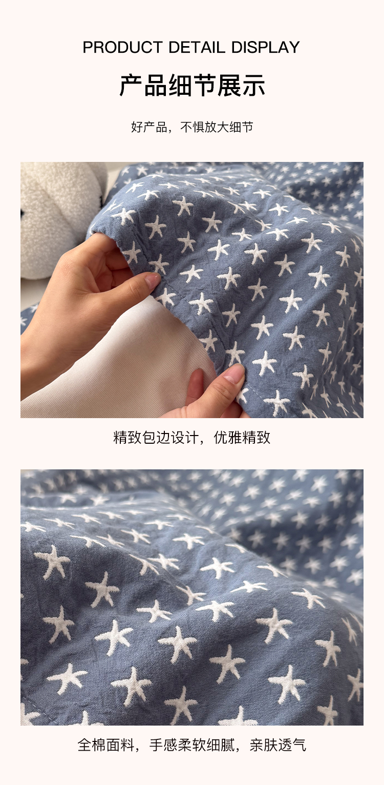 (总)沐瑟家纺 2026新款全棉四层纱布床盖-星星和心情系列,心情-粉色,心情-灰蓝,心情-卡其,星星-黄色,星星-灰色,星星-蓝色,星星-紫色,组合
