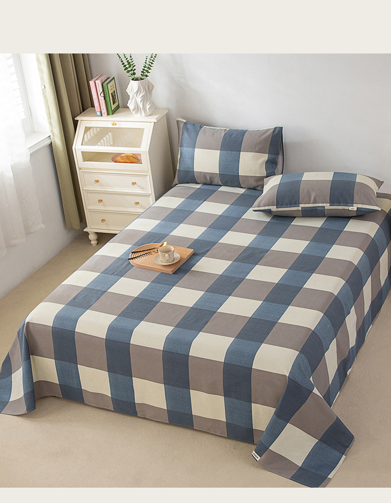 • 91家纺网 家纺一手货源 找家纺 棉乐町家居 2026新款原棉标印花老粗布床单 蓝格
